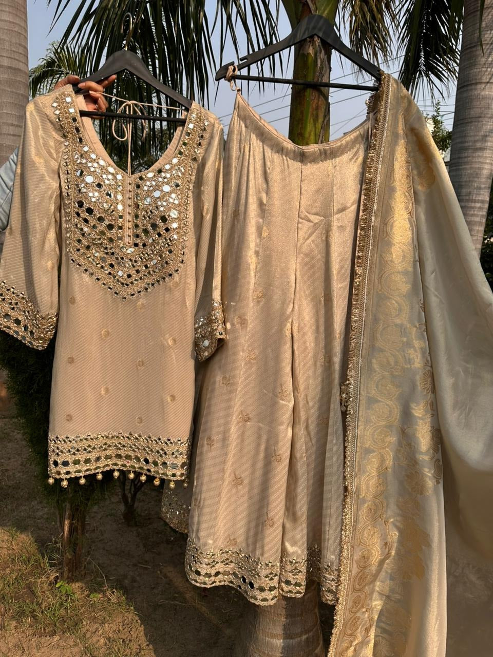 Pure silk lehenga set with rich sheen & elegant embroidery