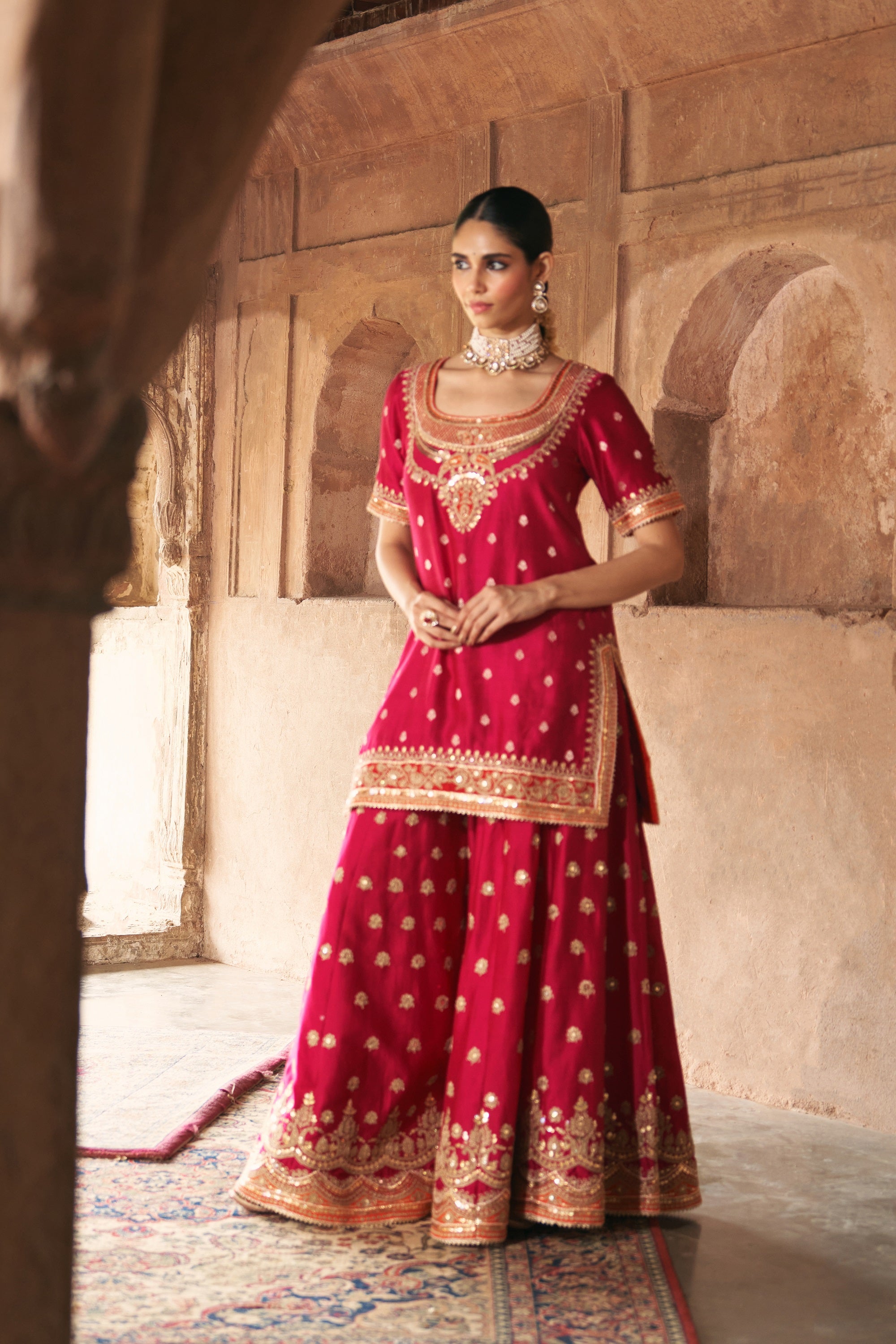 Samreen - daisy ivory short kurta with sharara and dupatta