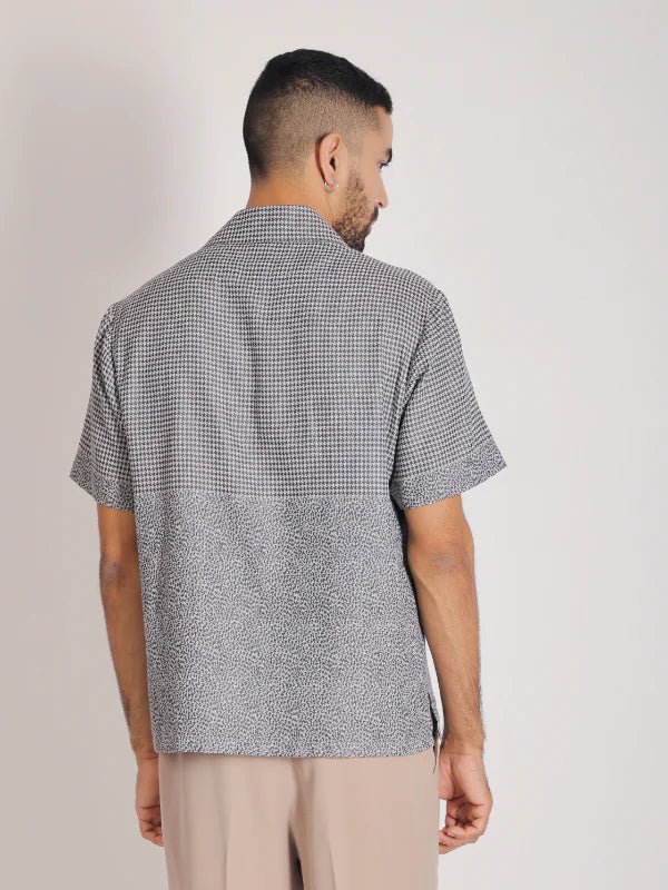 Printed chiffon high-low dress with entence hand-embroidered collar