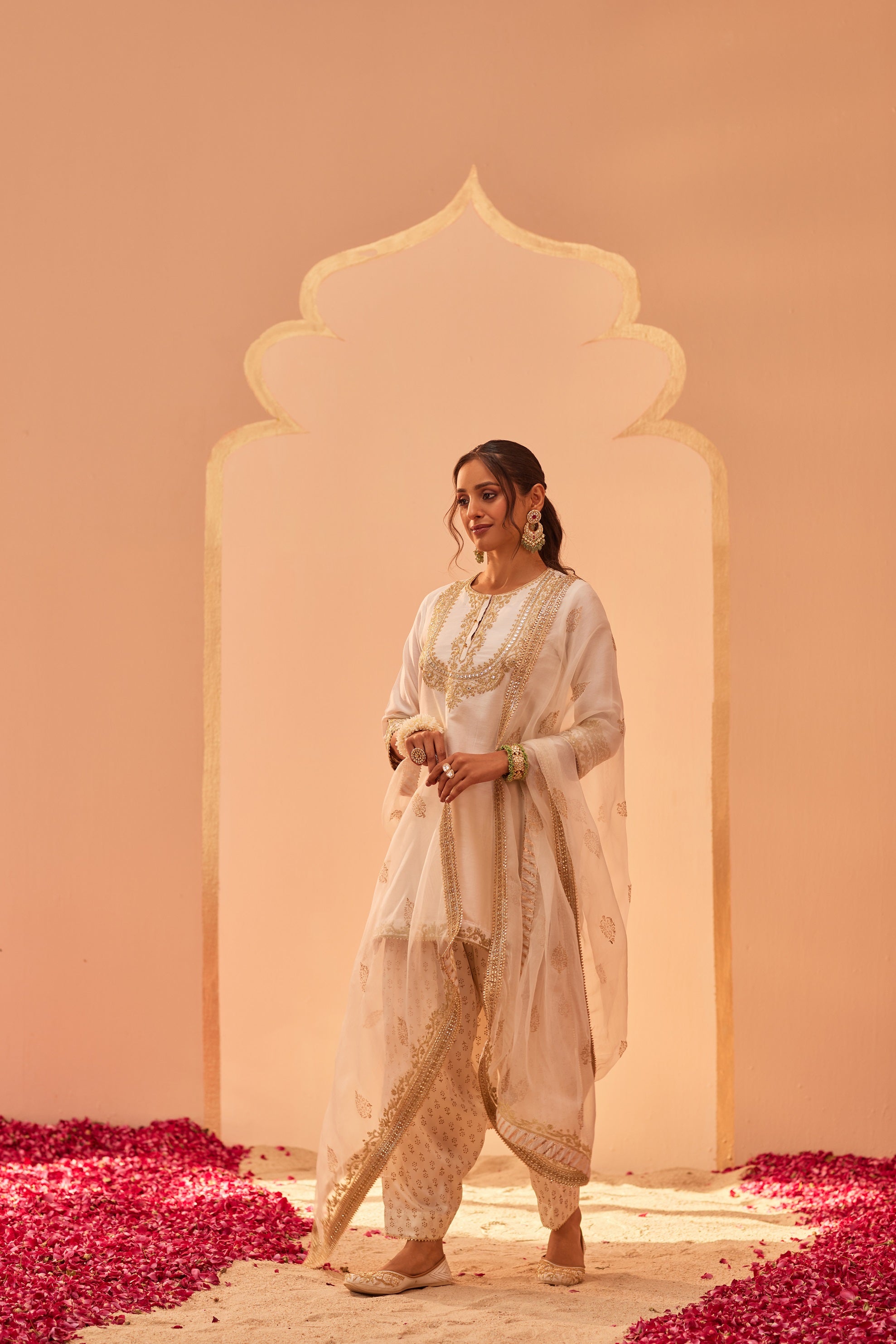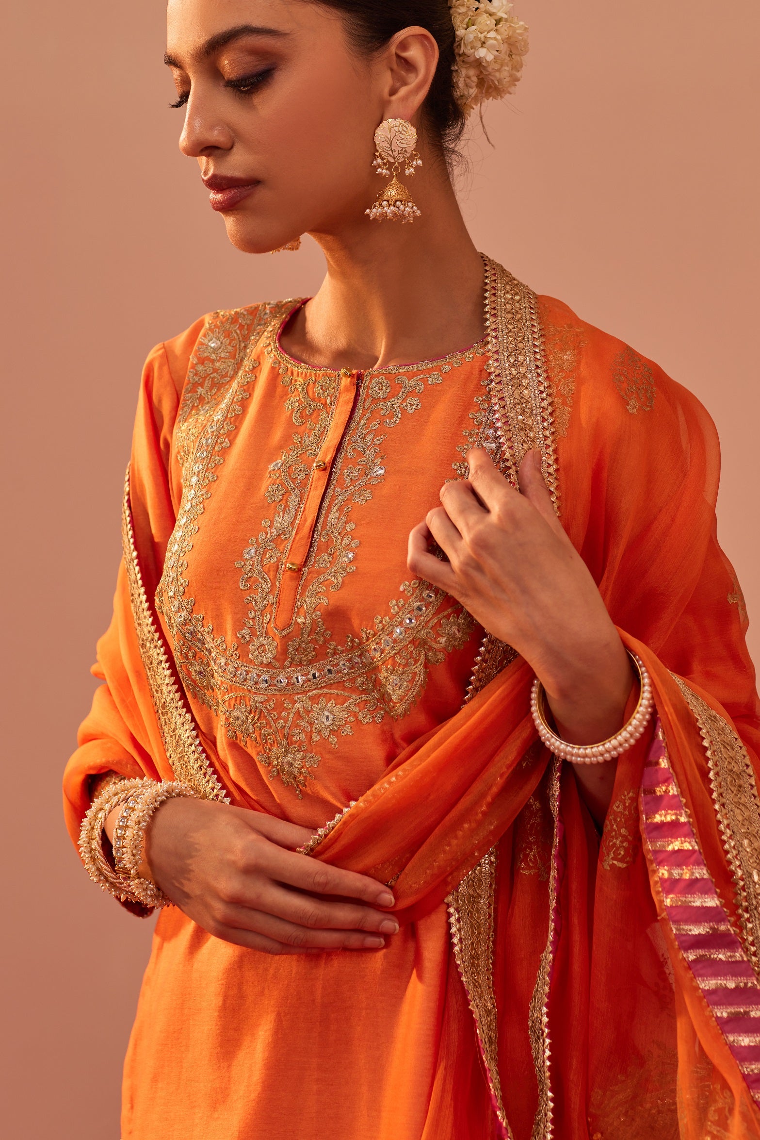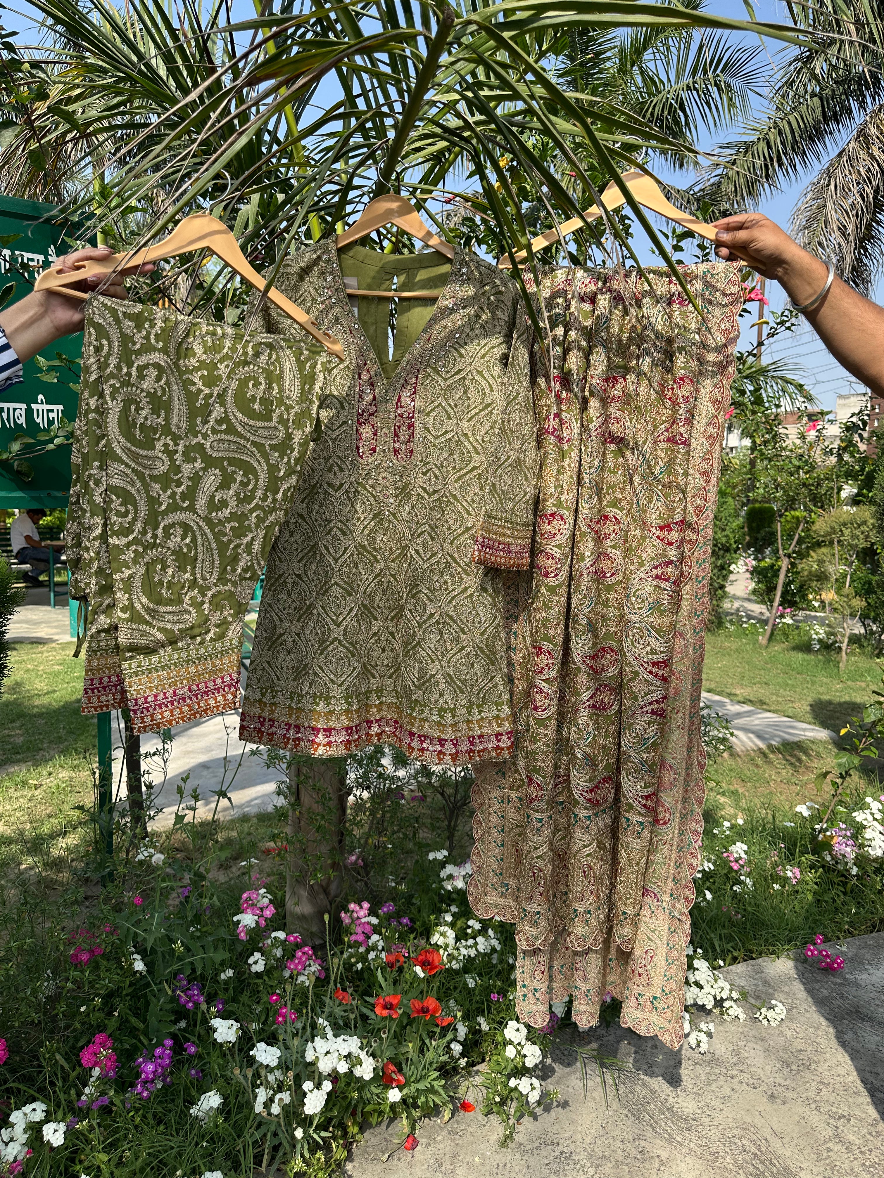 Resham-rose-pink-straight kurta with salwar and dupatta