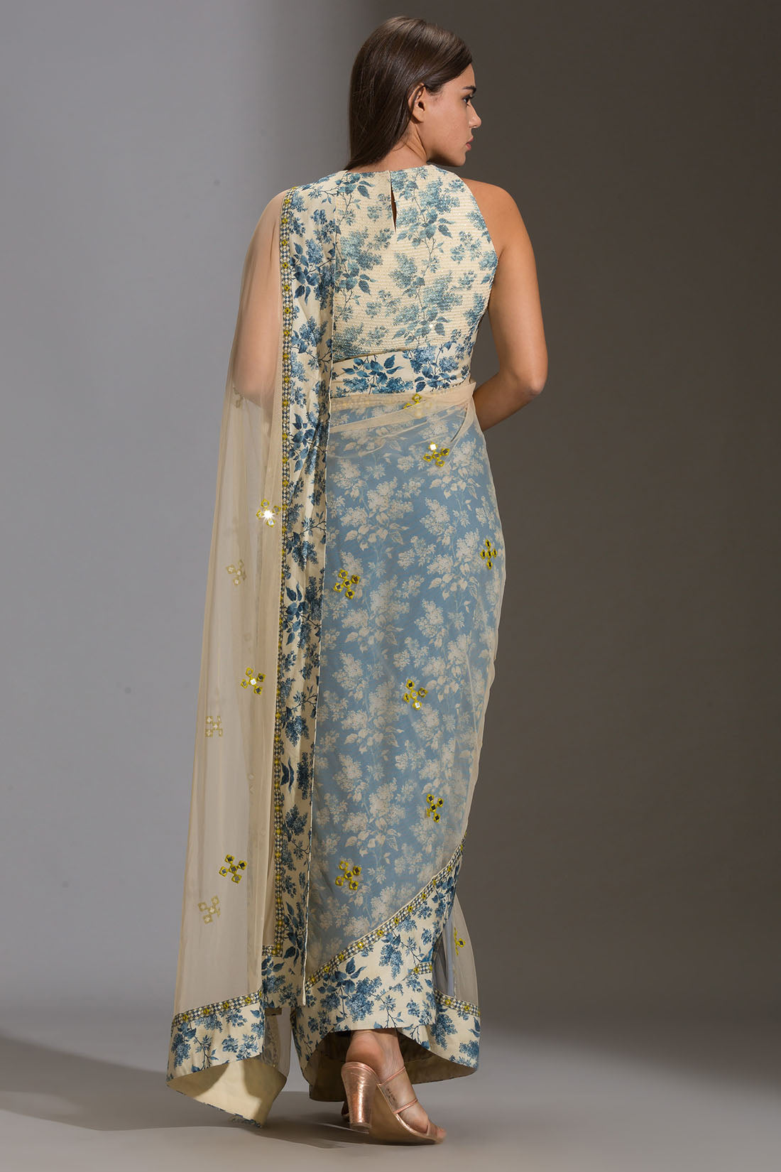 Applique floral pre-stitched saree
