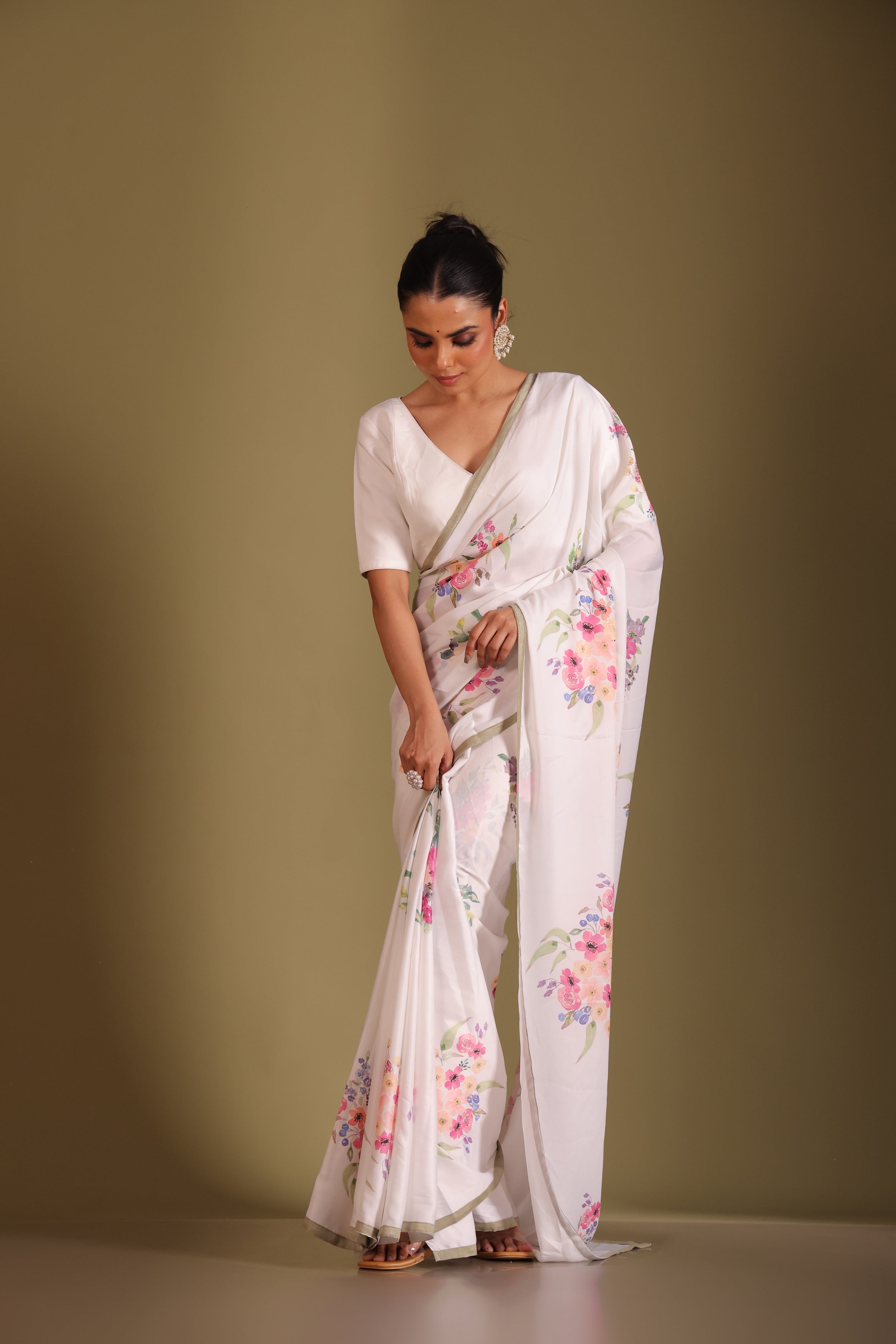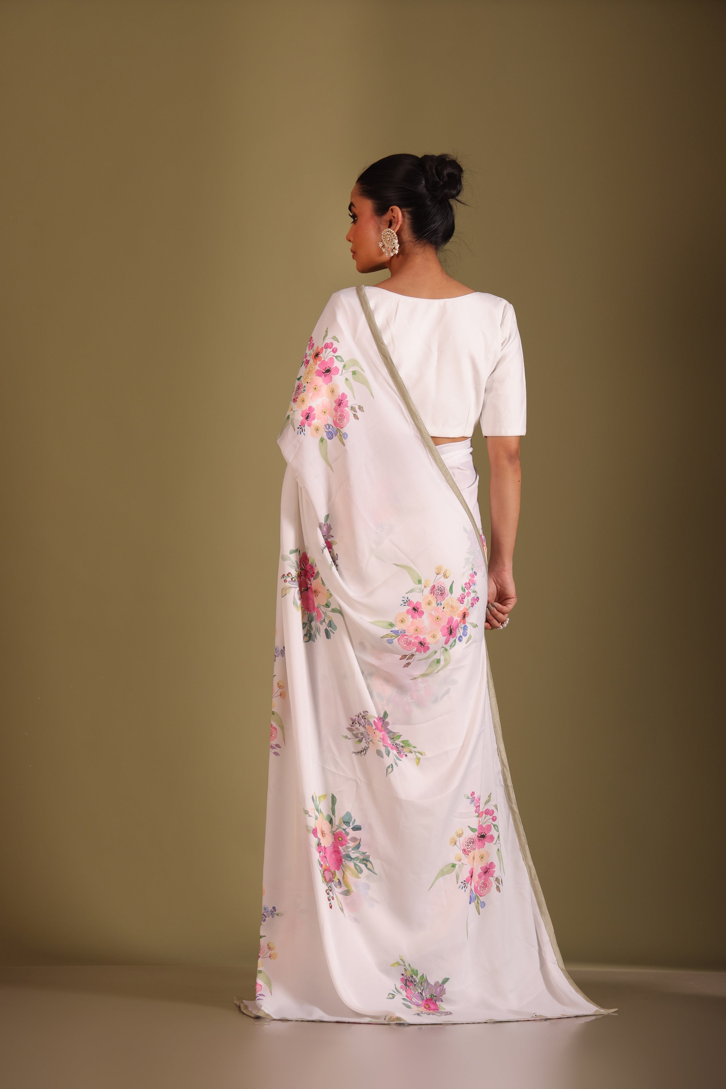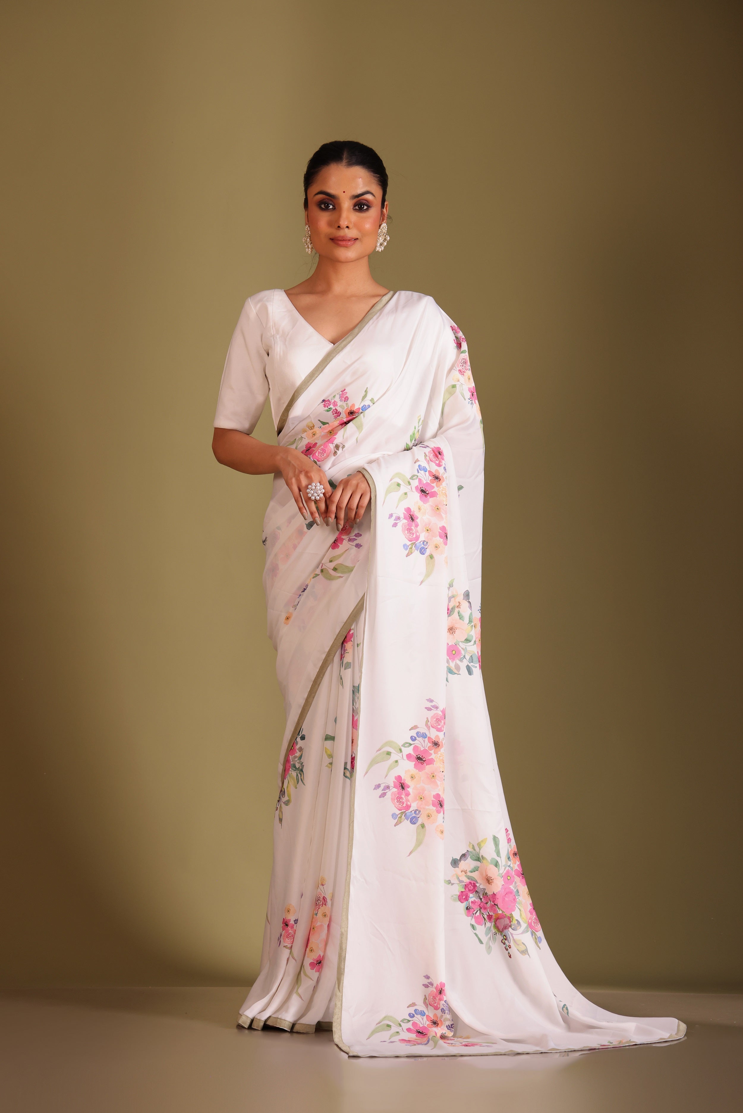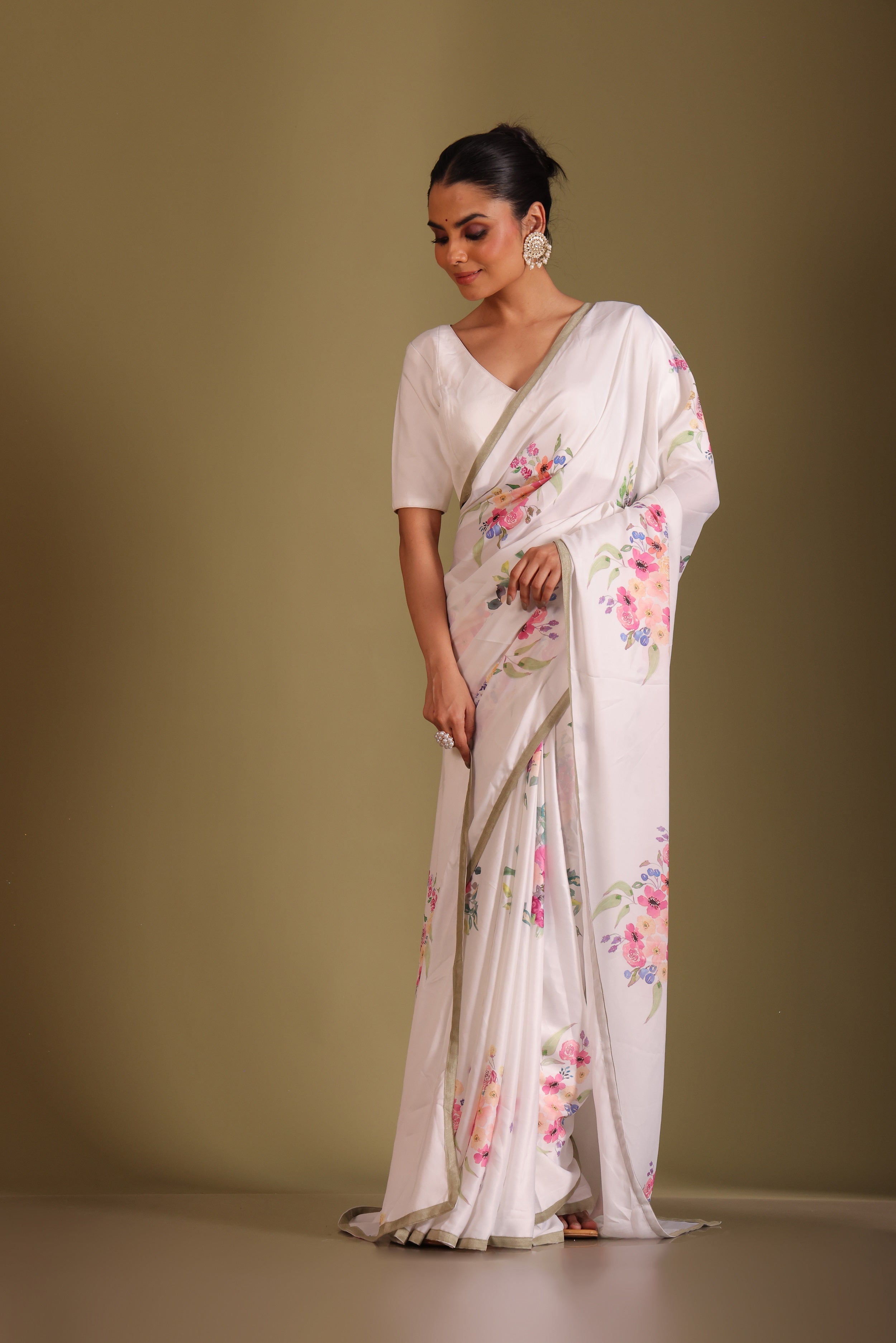 Gulzar white floral printed saree and blouse