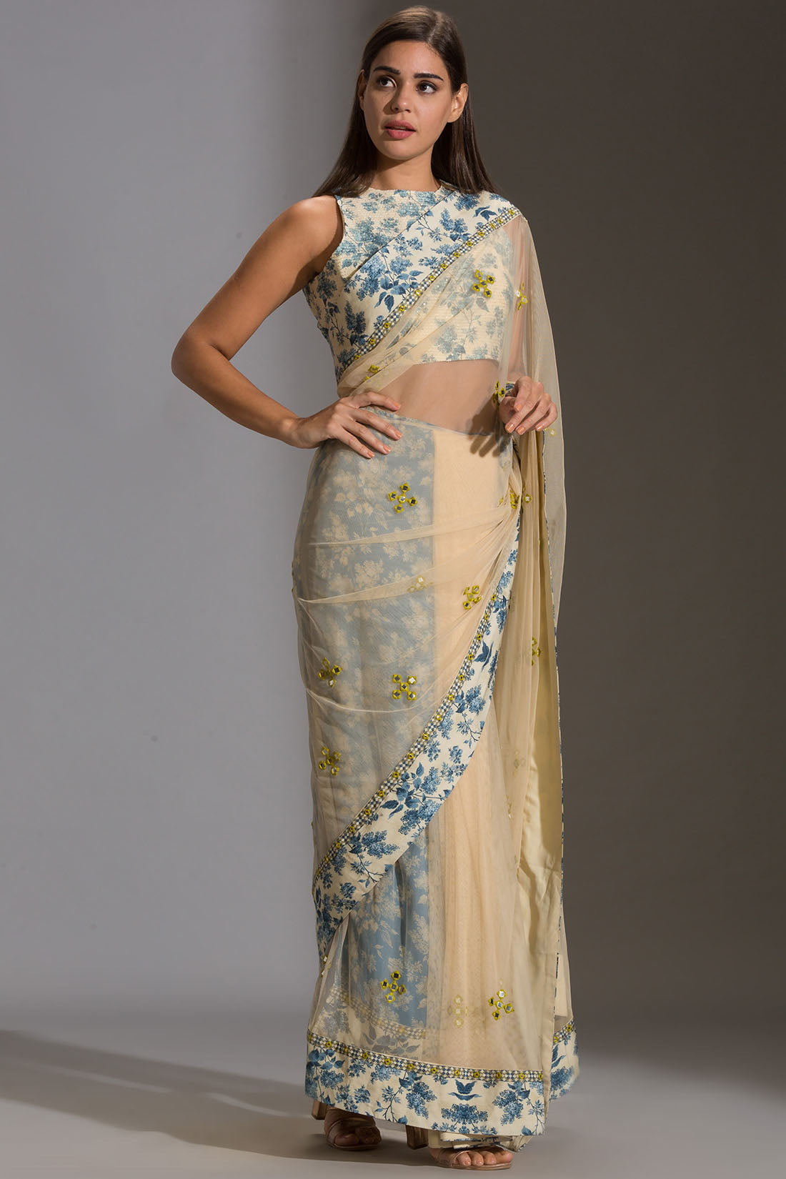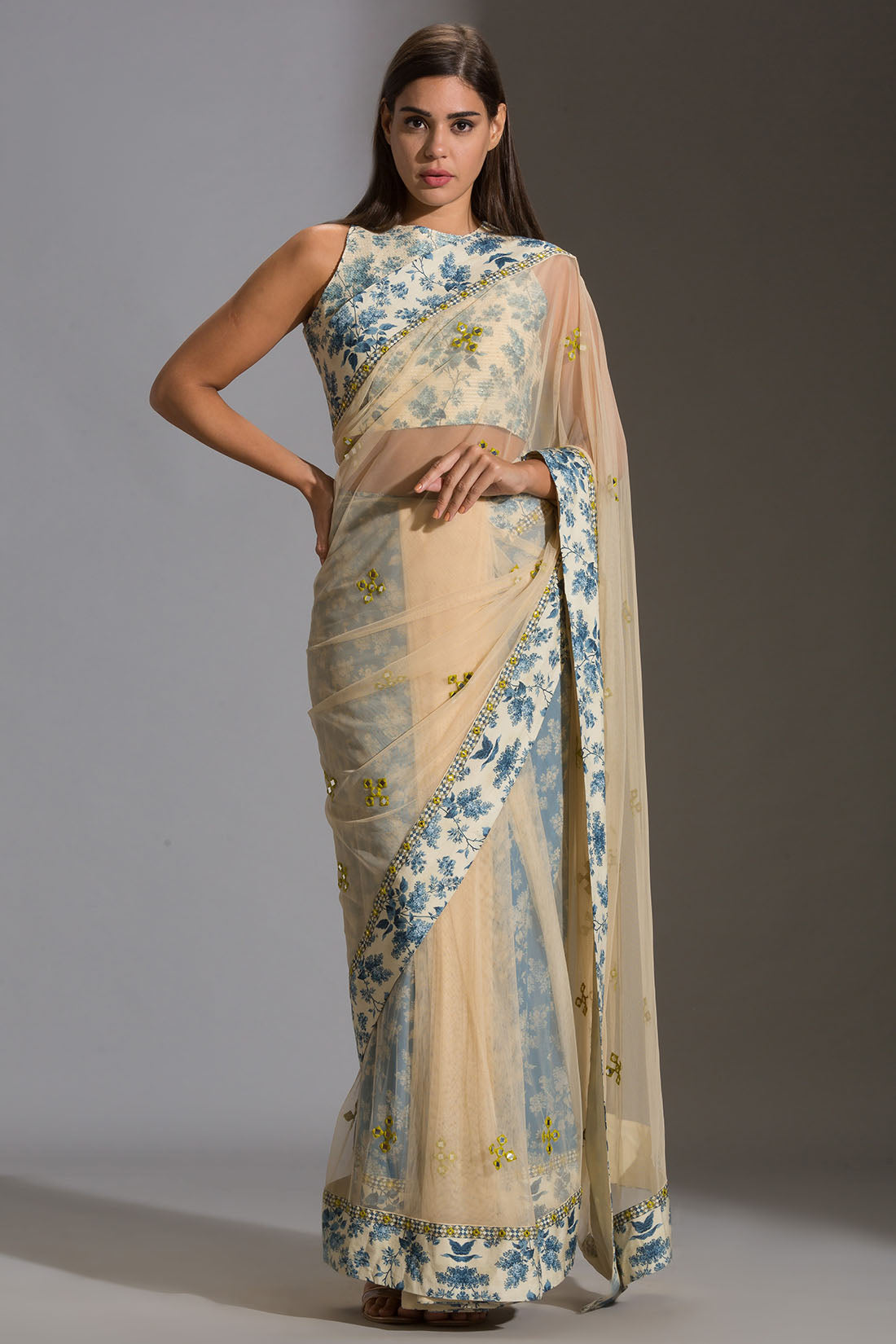Rooh ivory embroidered blouse and saree
