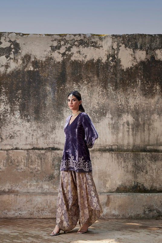 "short kalidaar in tissue with bandhani tissue dhoti "