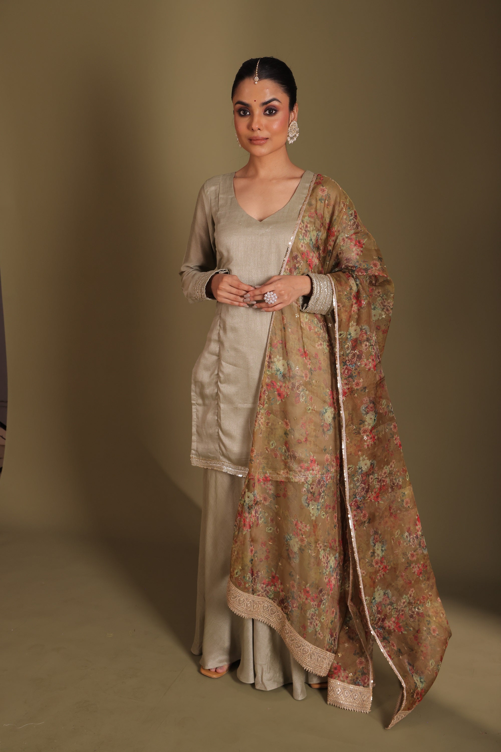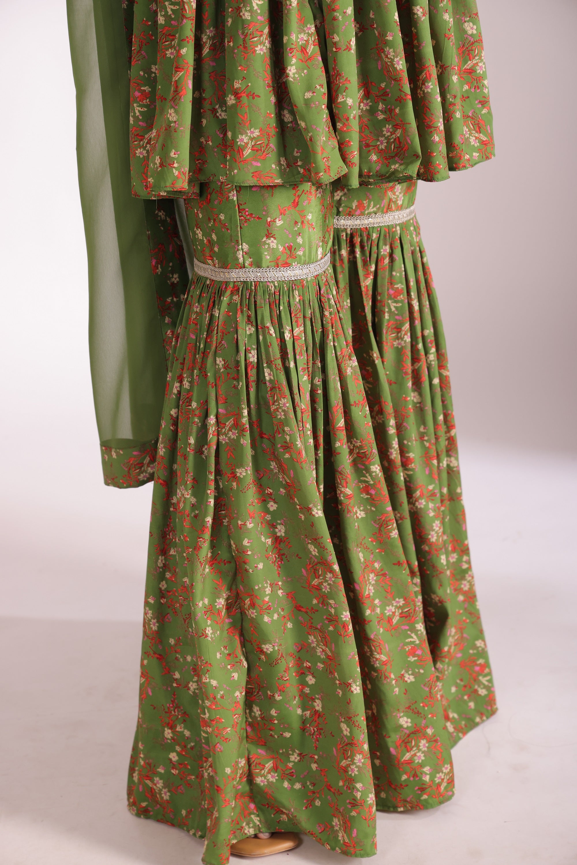Jhalak sage kurta with sharara and dupatta- set of 3