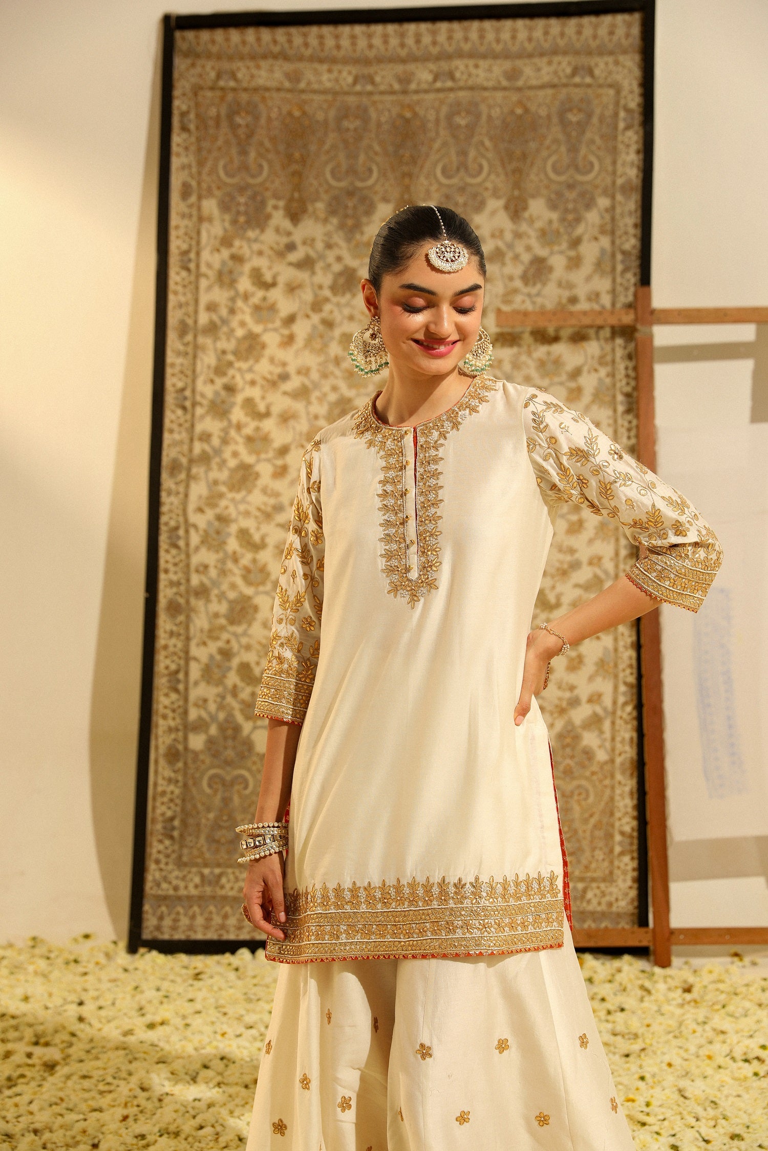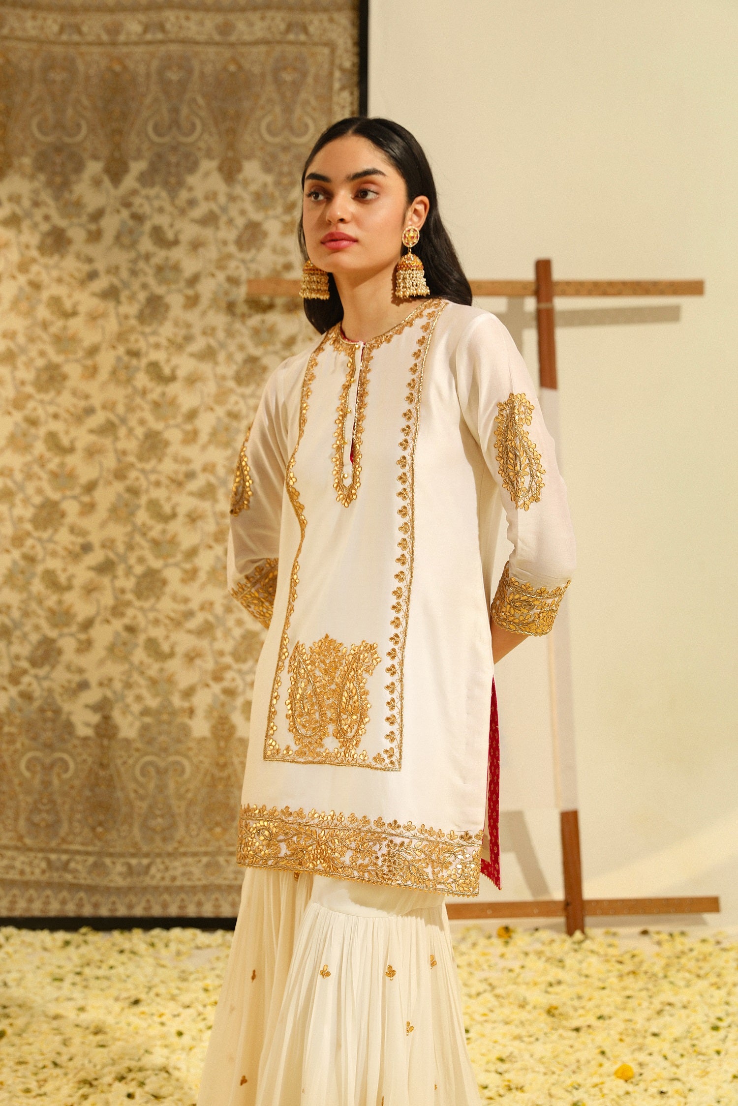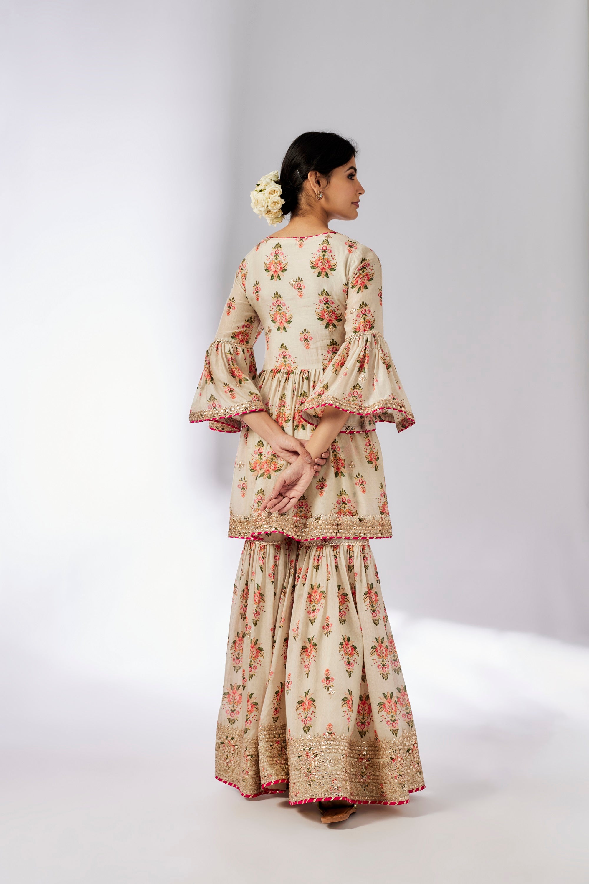 Shamshul short kurta with garara and odhni