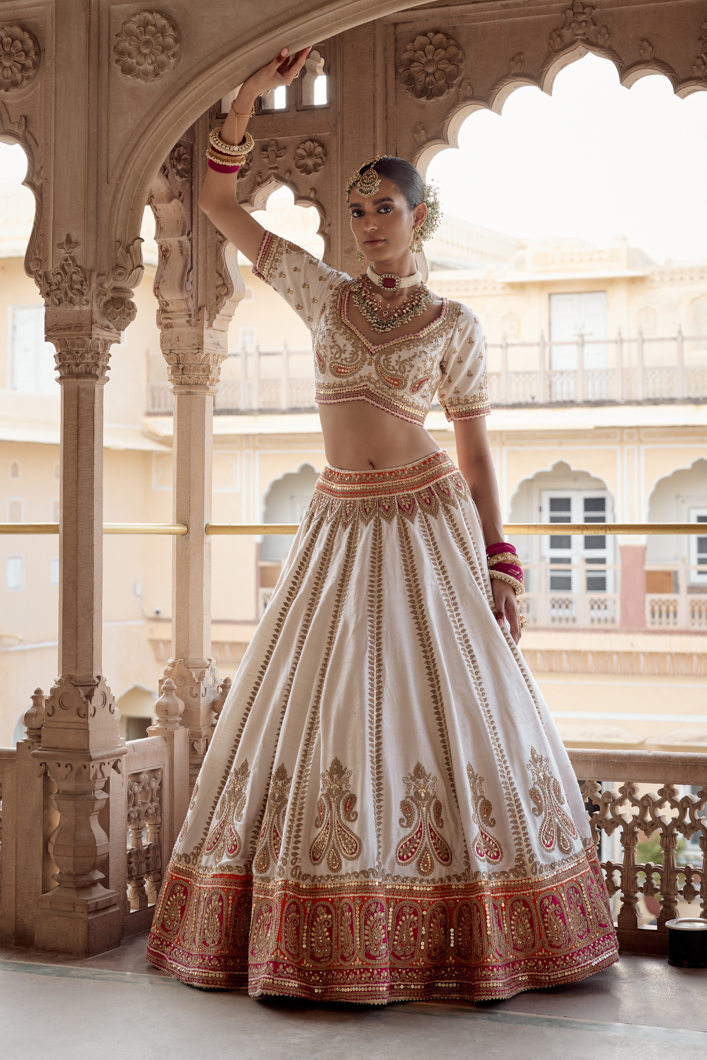 Amara - handcrafted pure silk daisy ivory lehenga set