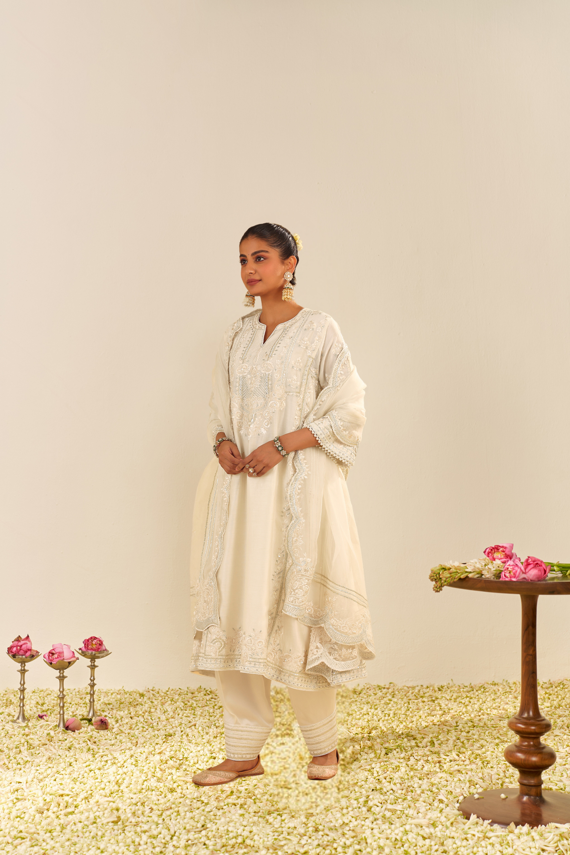 Sadirah-dasiy ivory-short kurta with salwar and dupatta