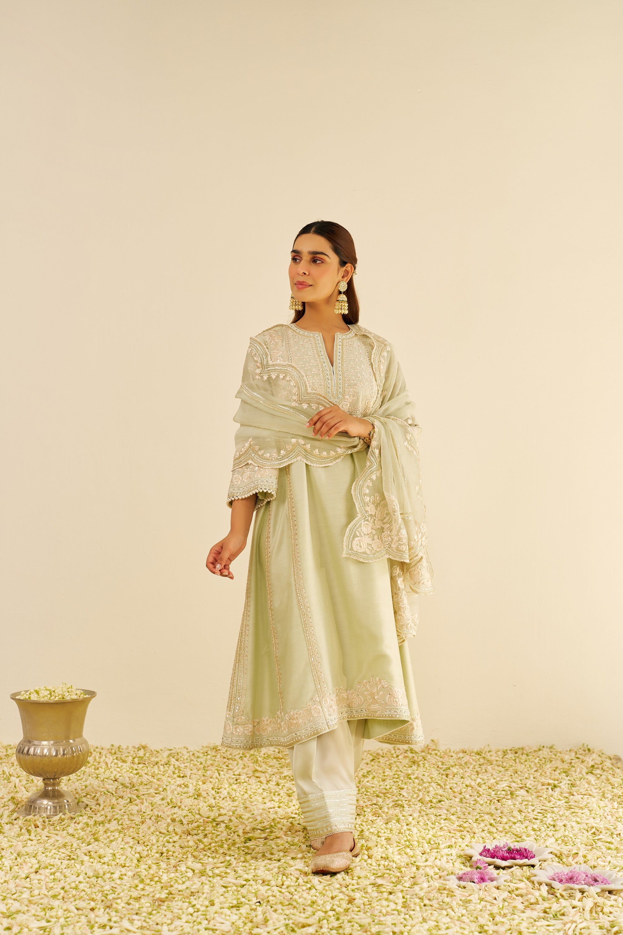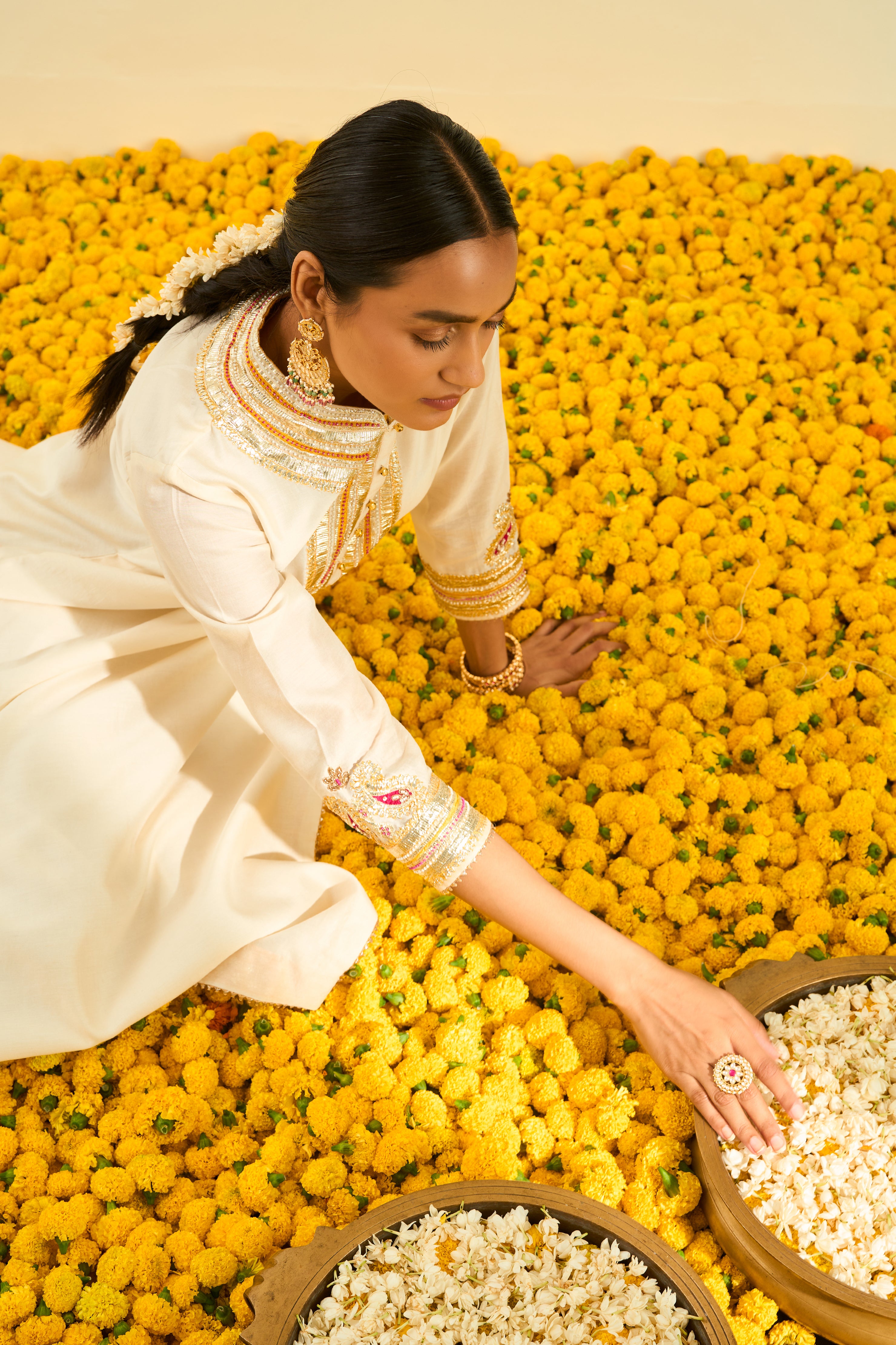 Mohsina - daisy ivory short kalidaar choga with salwar