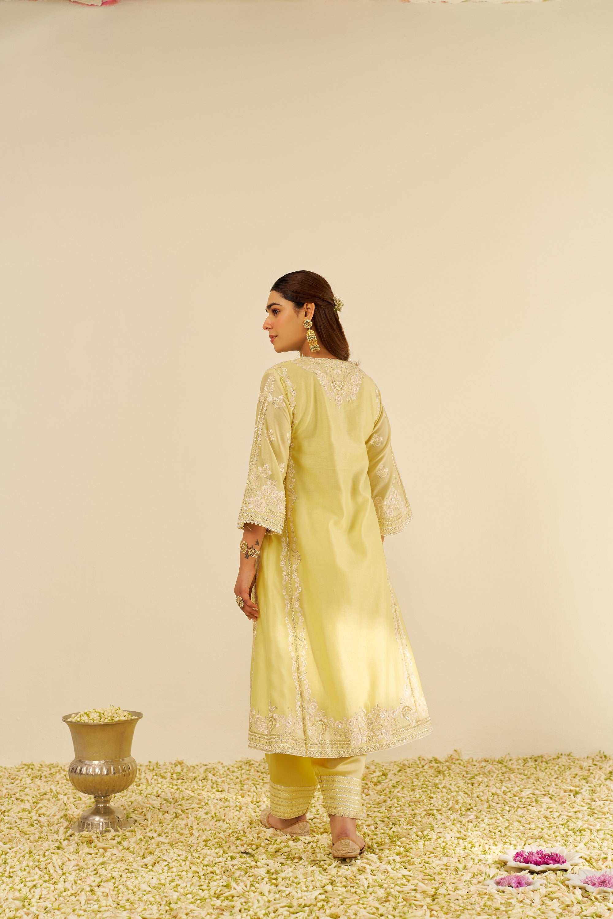 Mohsina - glaze mustard short kalidaar choga with salwar