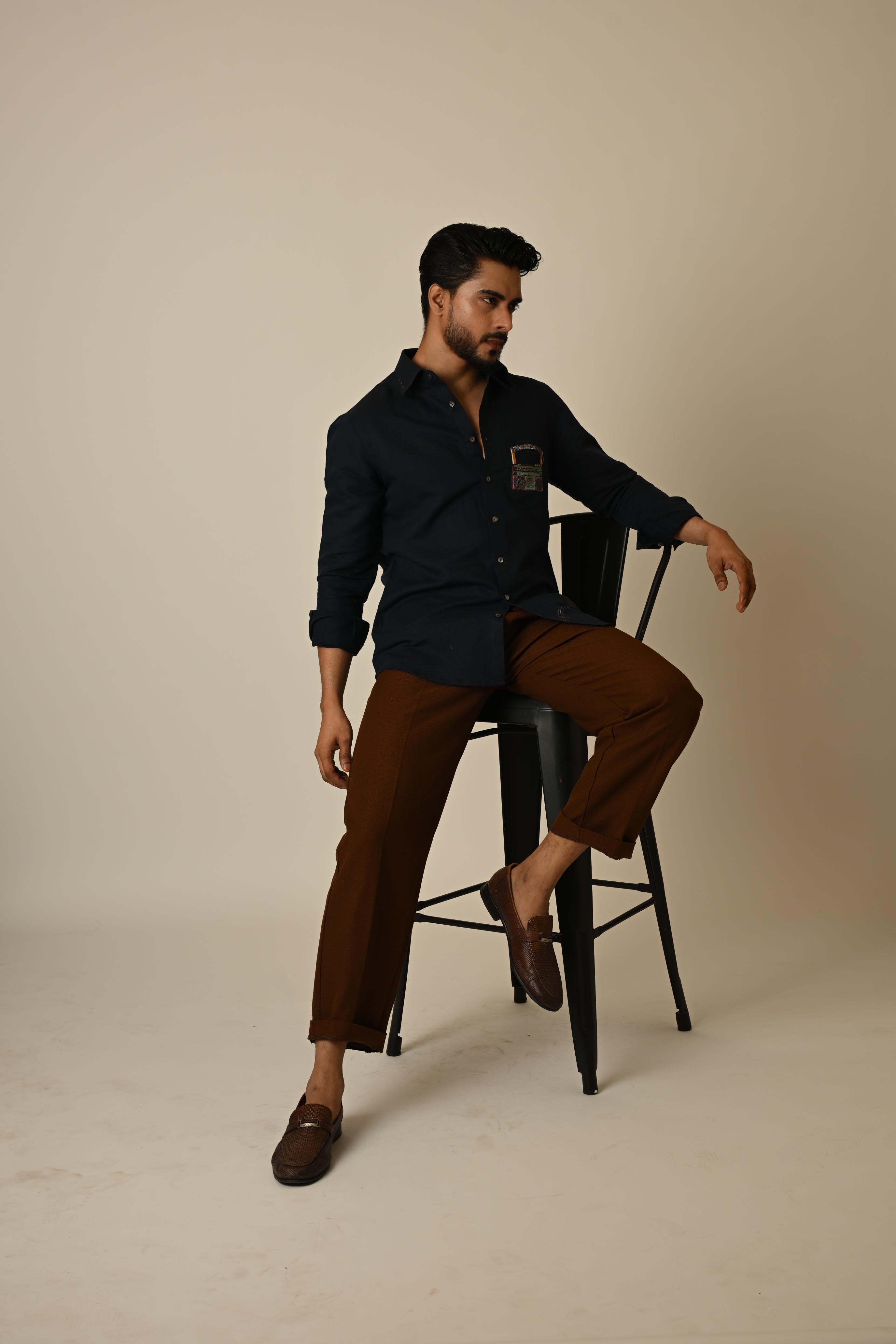 Pair with dark brown trouser to enhance the beauty of the shirt