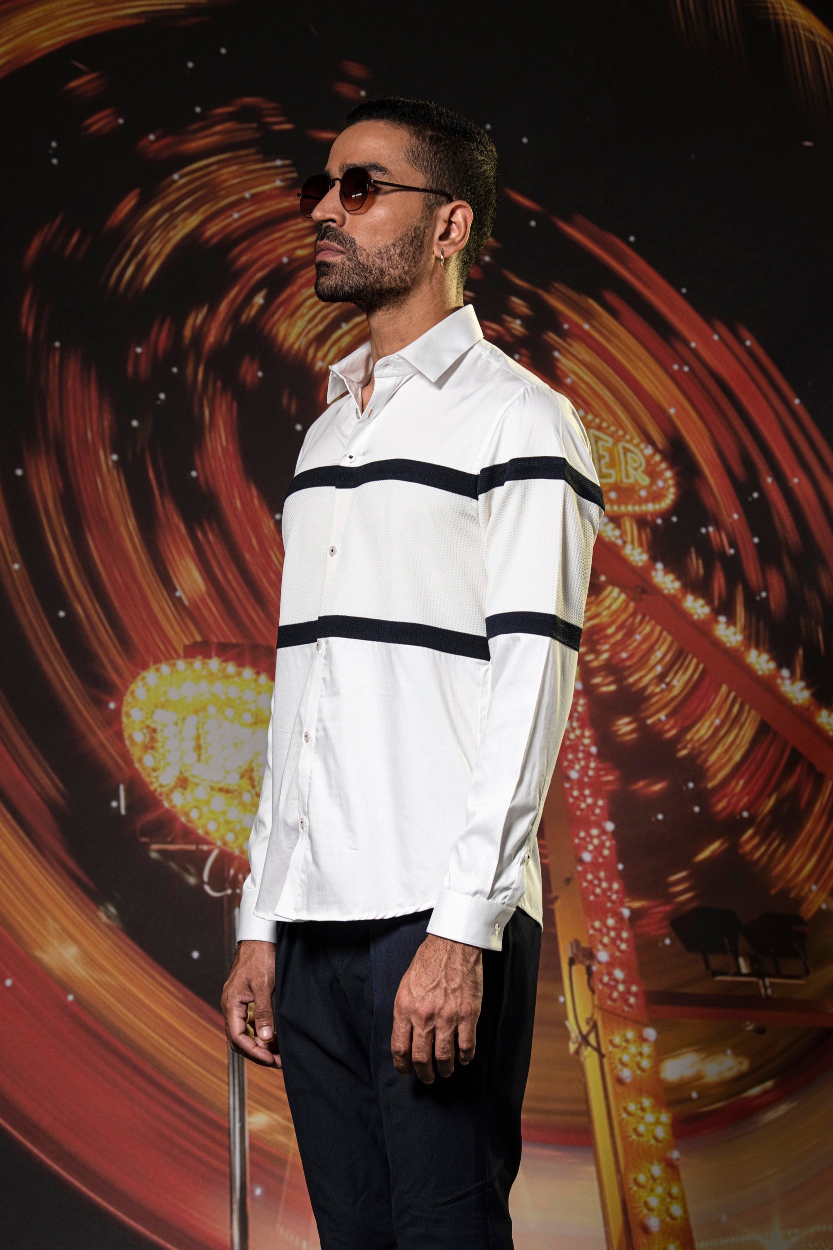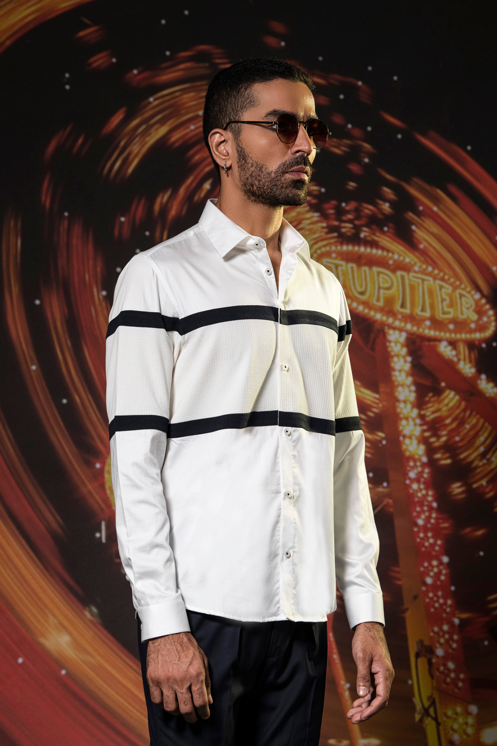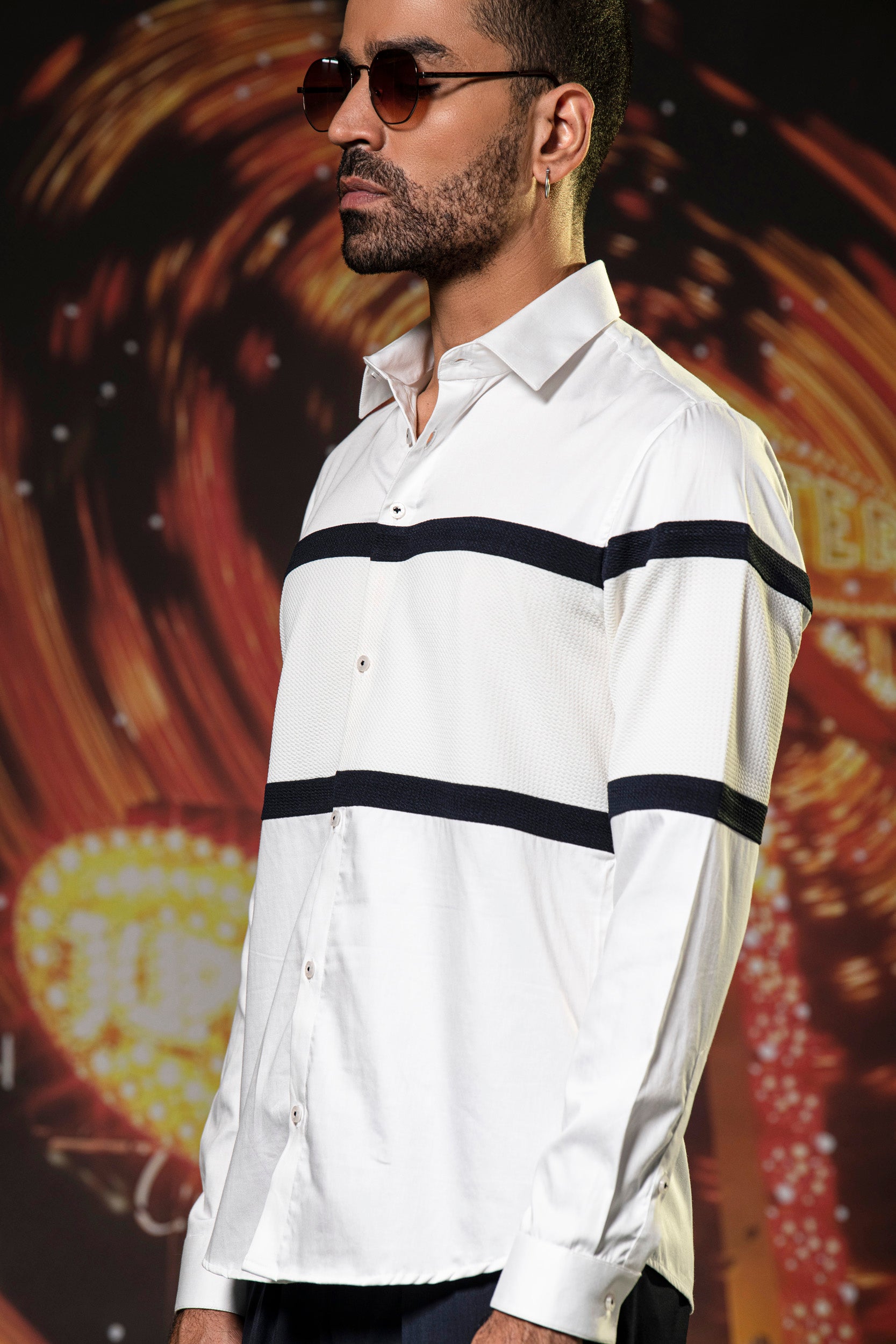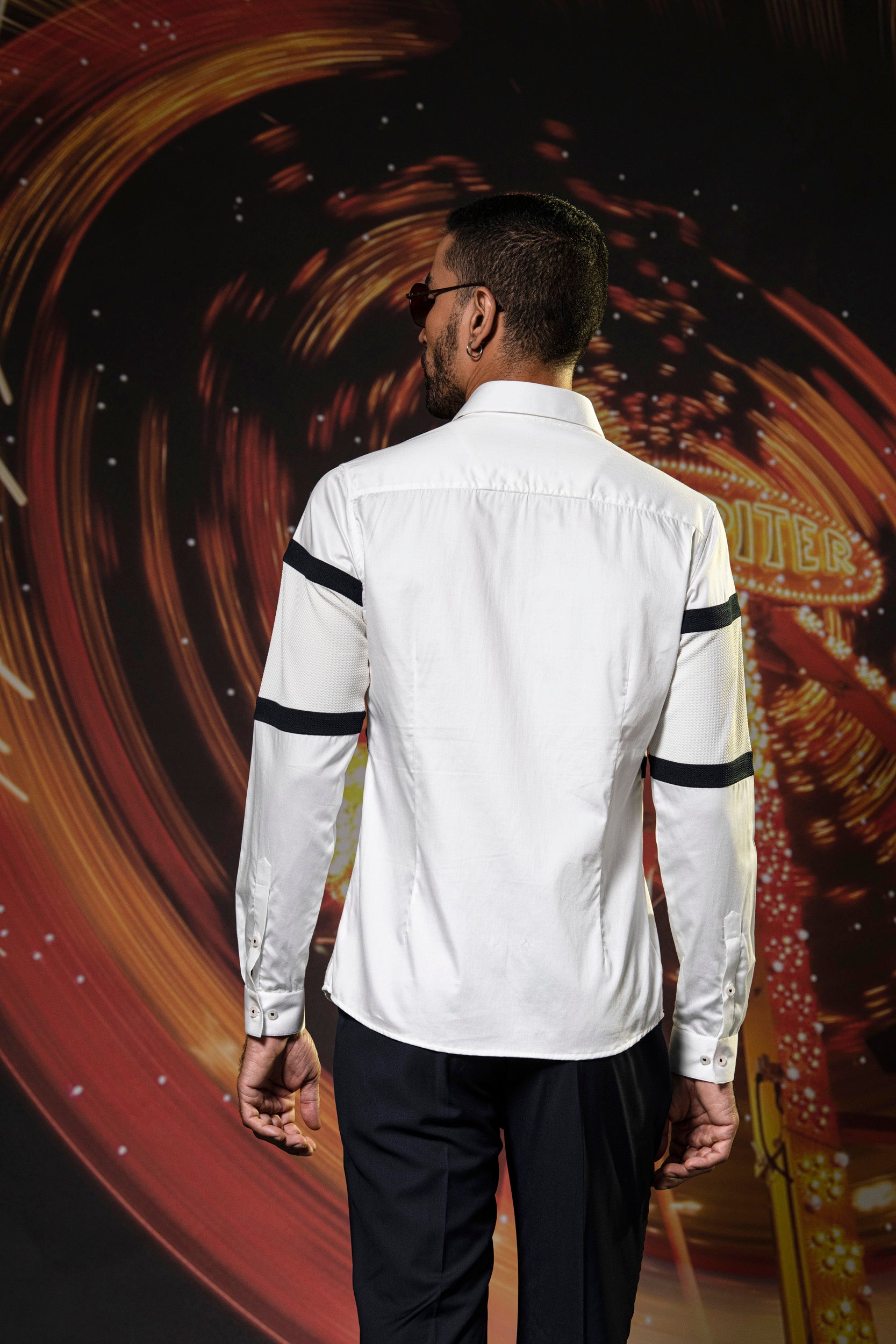 Featuring a white shirt in cotton base with a panel. Perfect wear for parties and cocktail ceremonies.