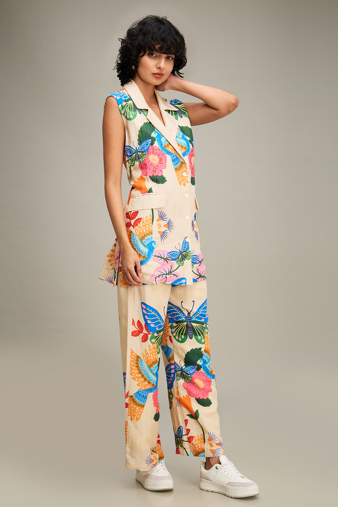 | Beige Avain Canopy Embellished Blazer Top with Straight Pants in Linen. Fit: Relaxed Wash Care: Dry Clean Only |
