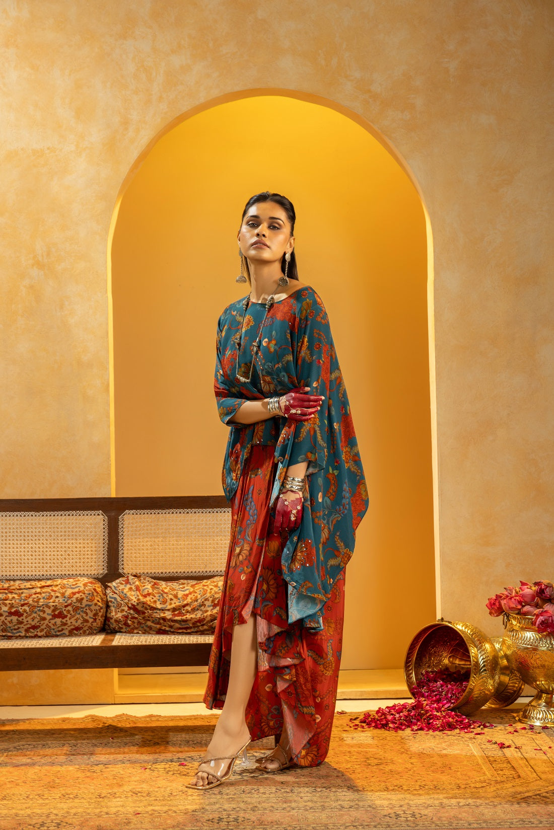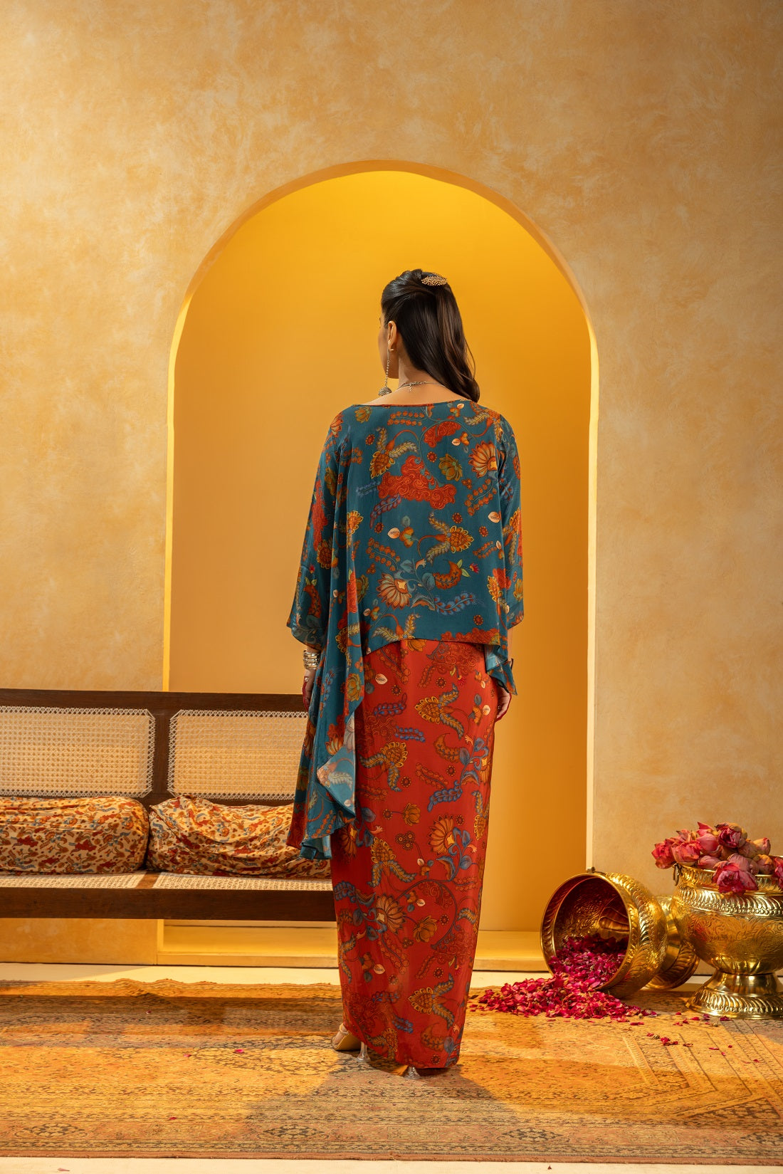Rangtara embellished drape skirt set