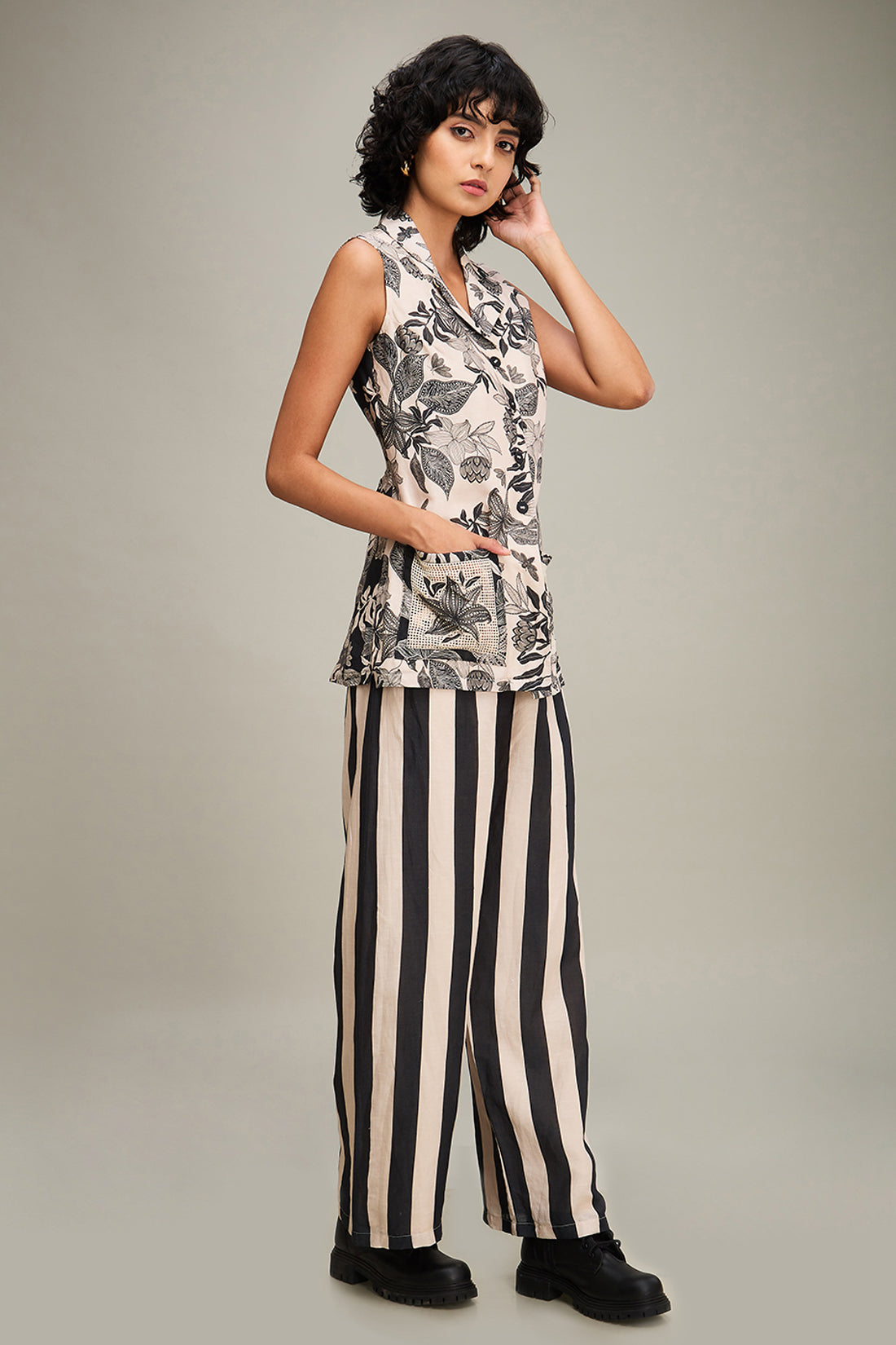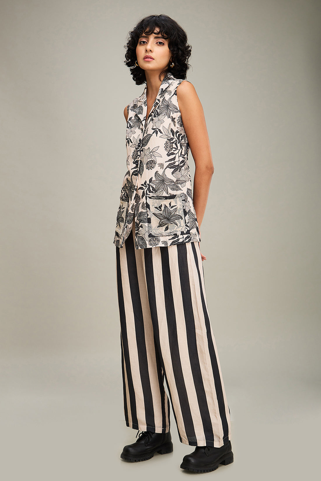 | Off-white Ahyana Printed Cuban Collar Top with Flared Pants in Linen Slub. Fit: Relaxed Wash Care: Dry Clean Only |