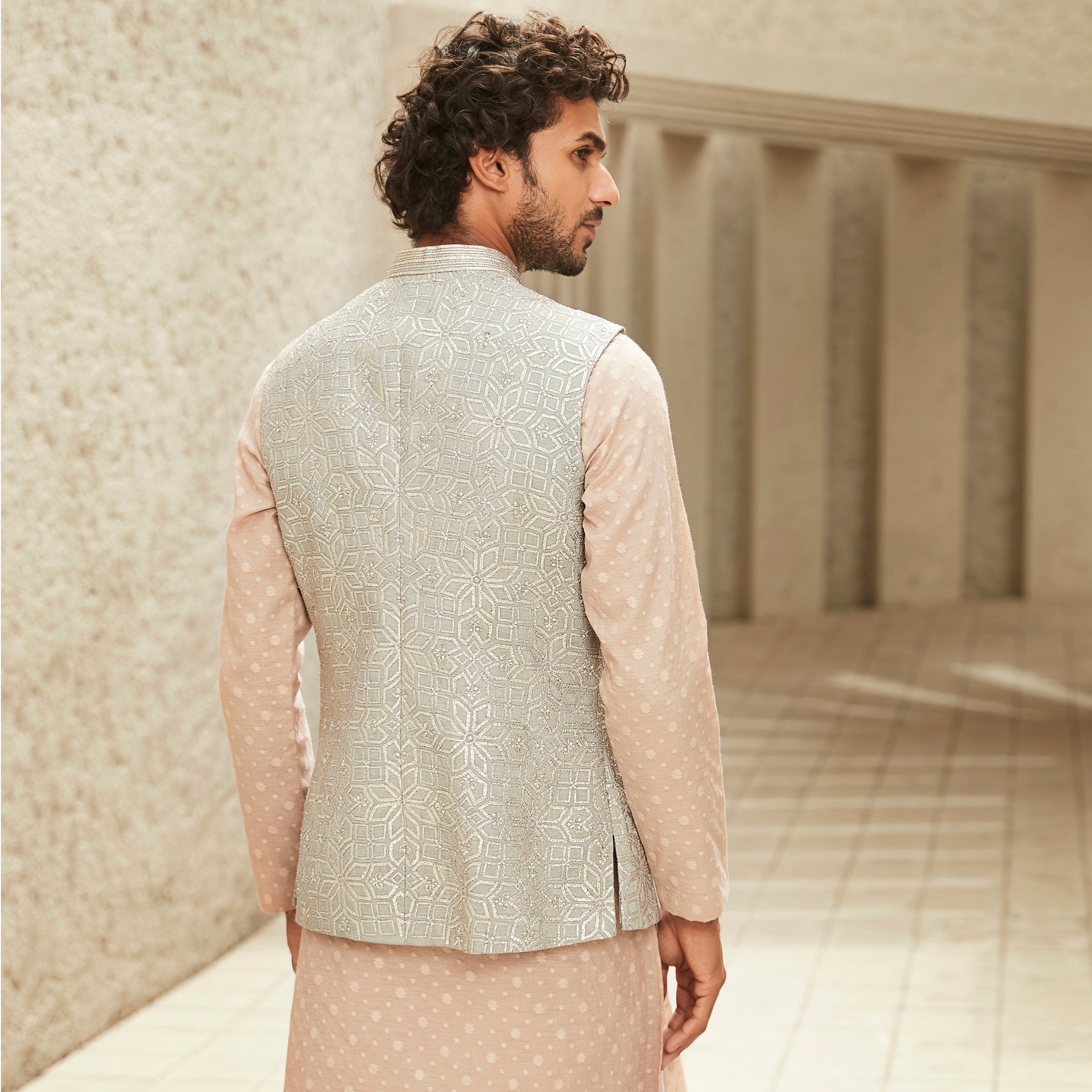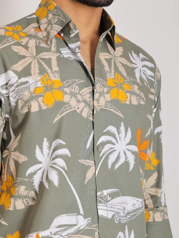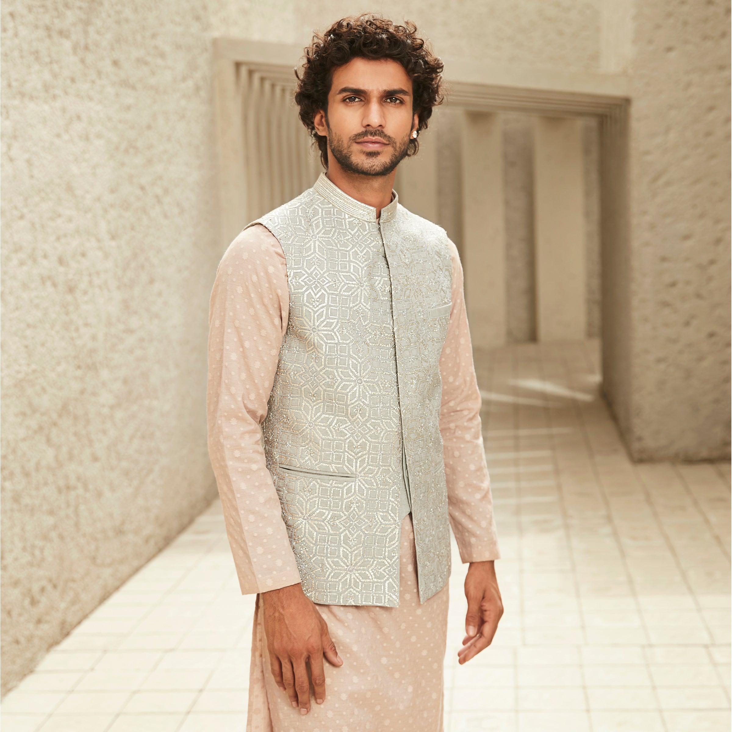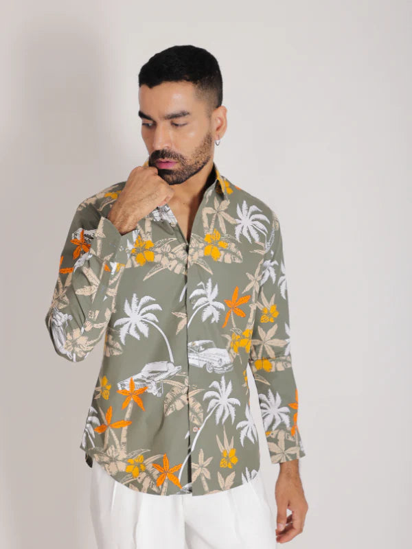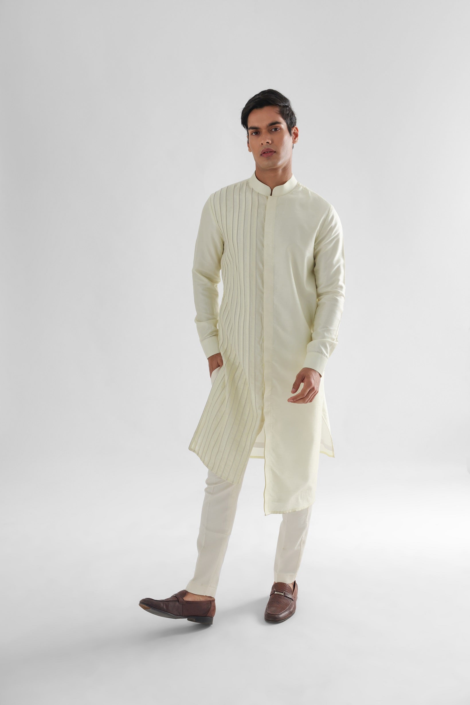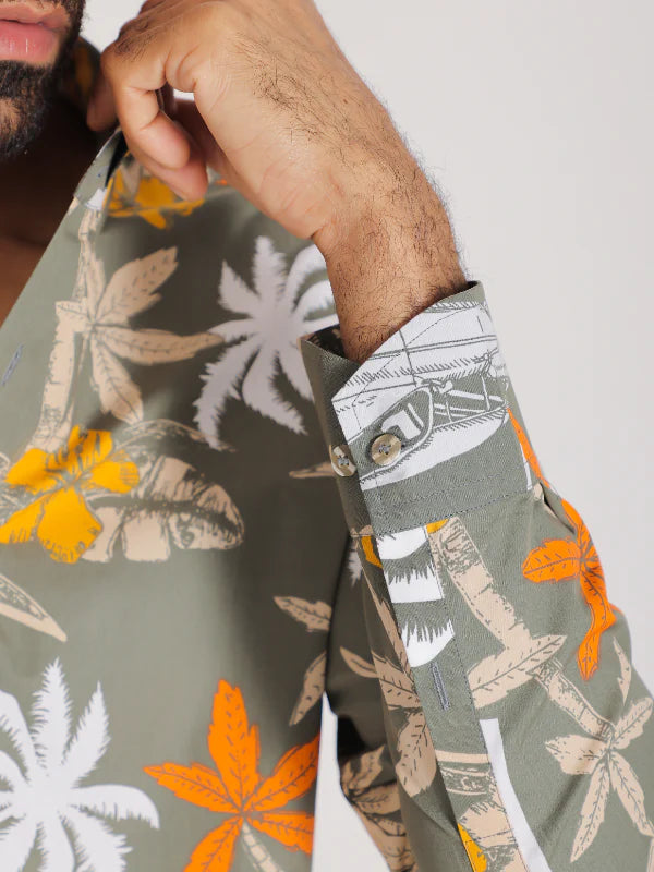 Printed chiffon asymmetrical pleated kaftan with front belt embroidery detailed
