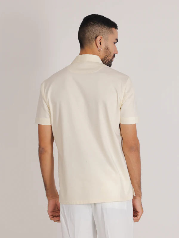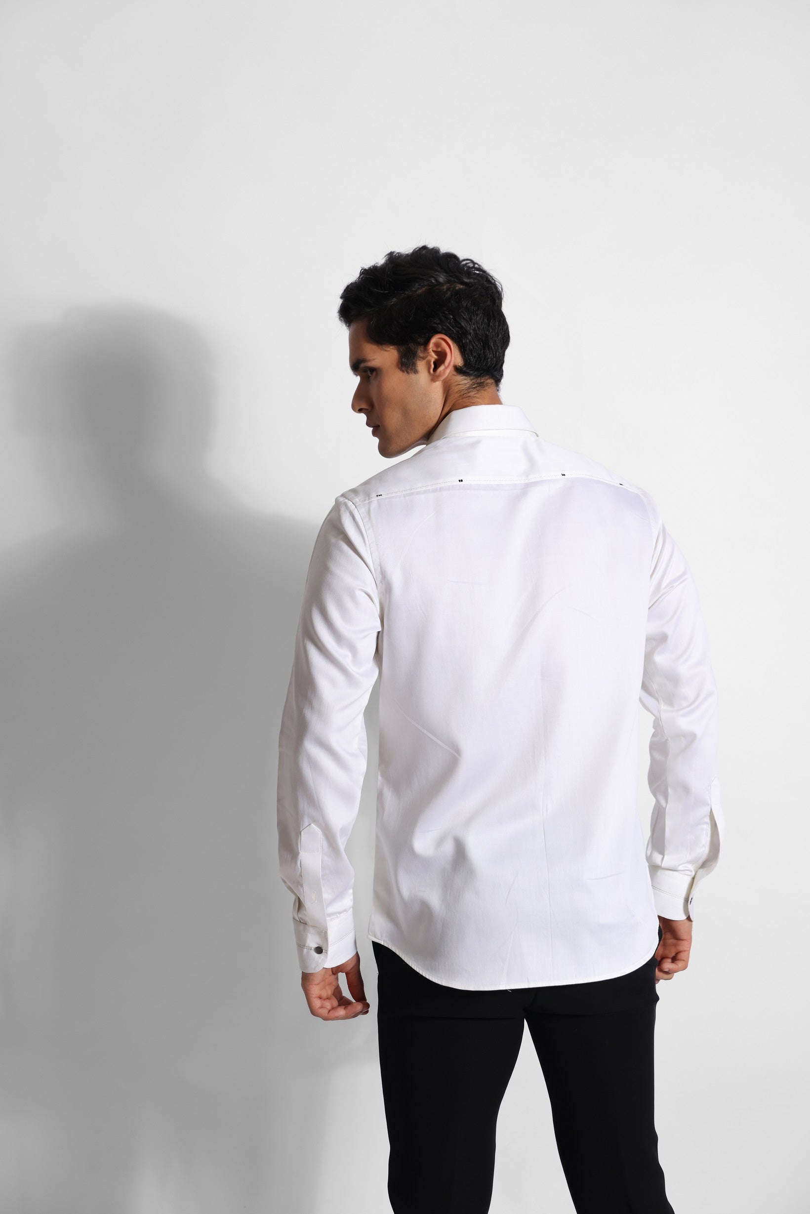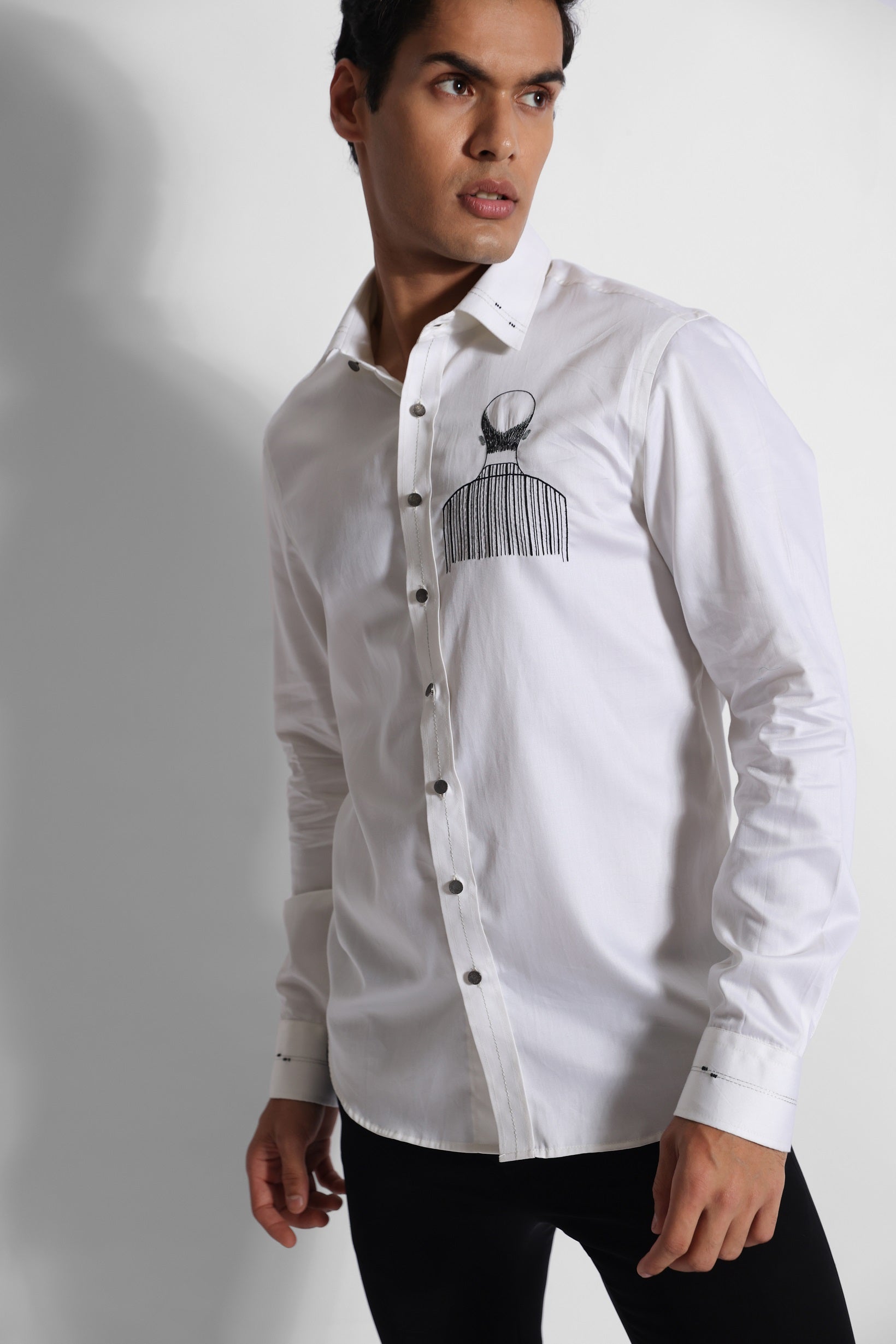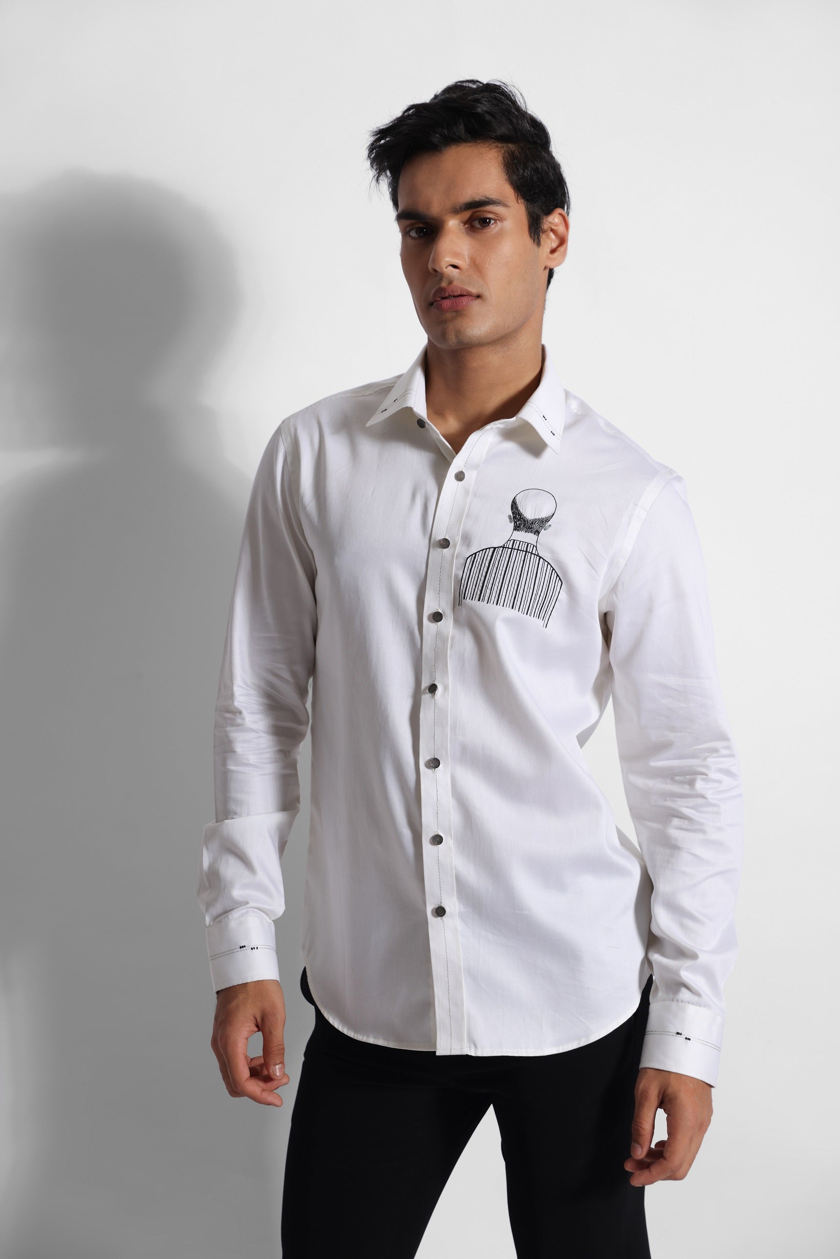 Printed chiffon high-low dress with entence hand-embroidered collar
