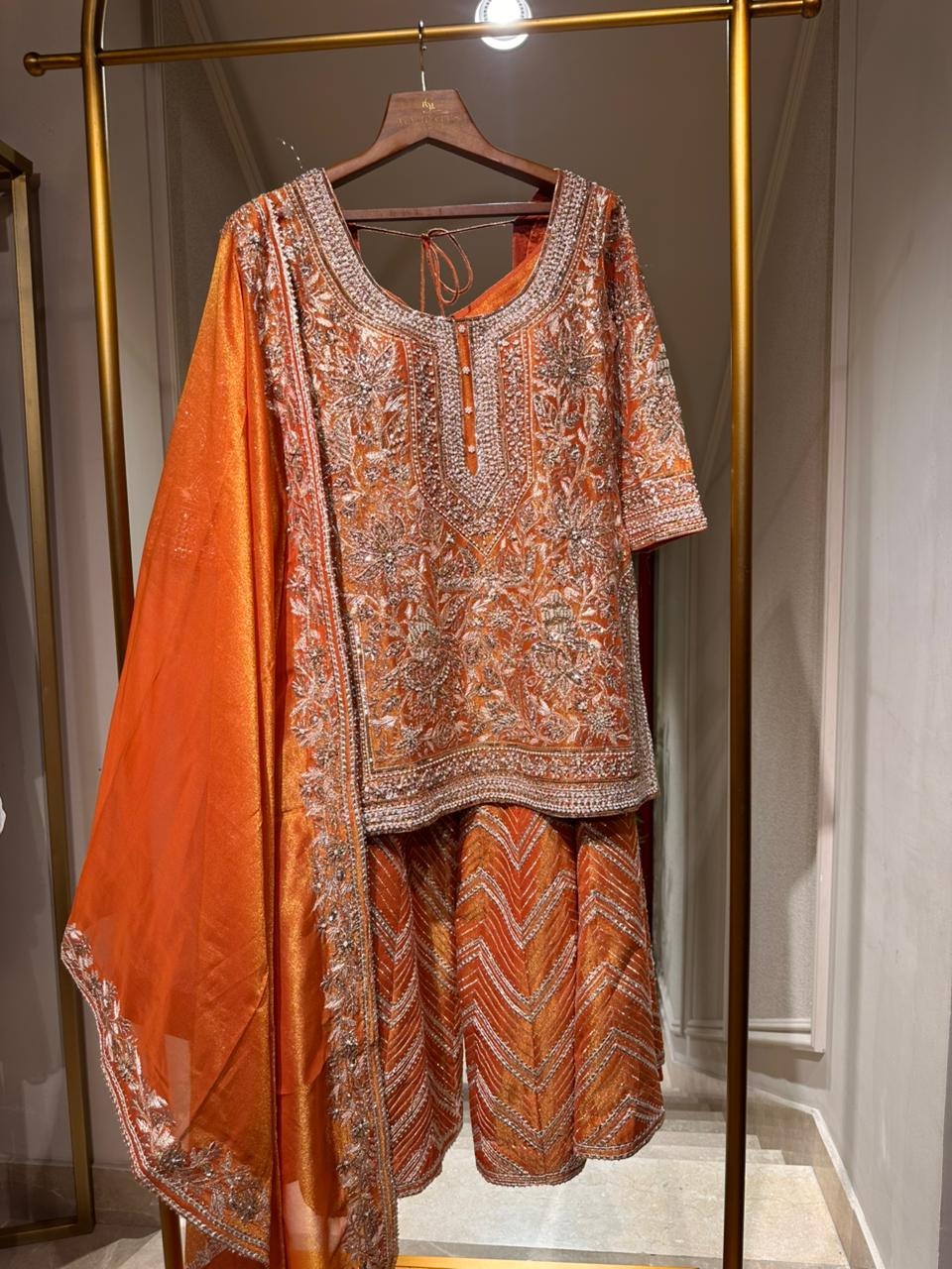 Farhana - burnt orange short kurta with salwar and dupatta