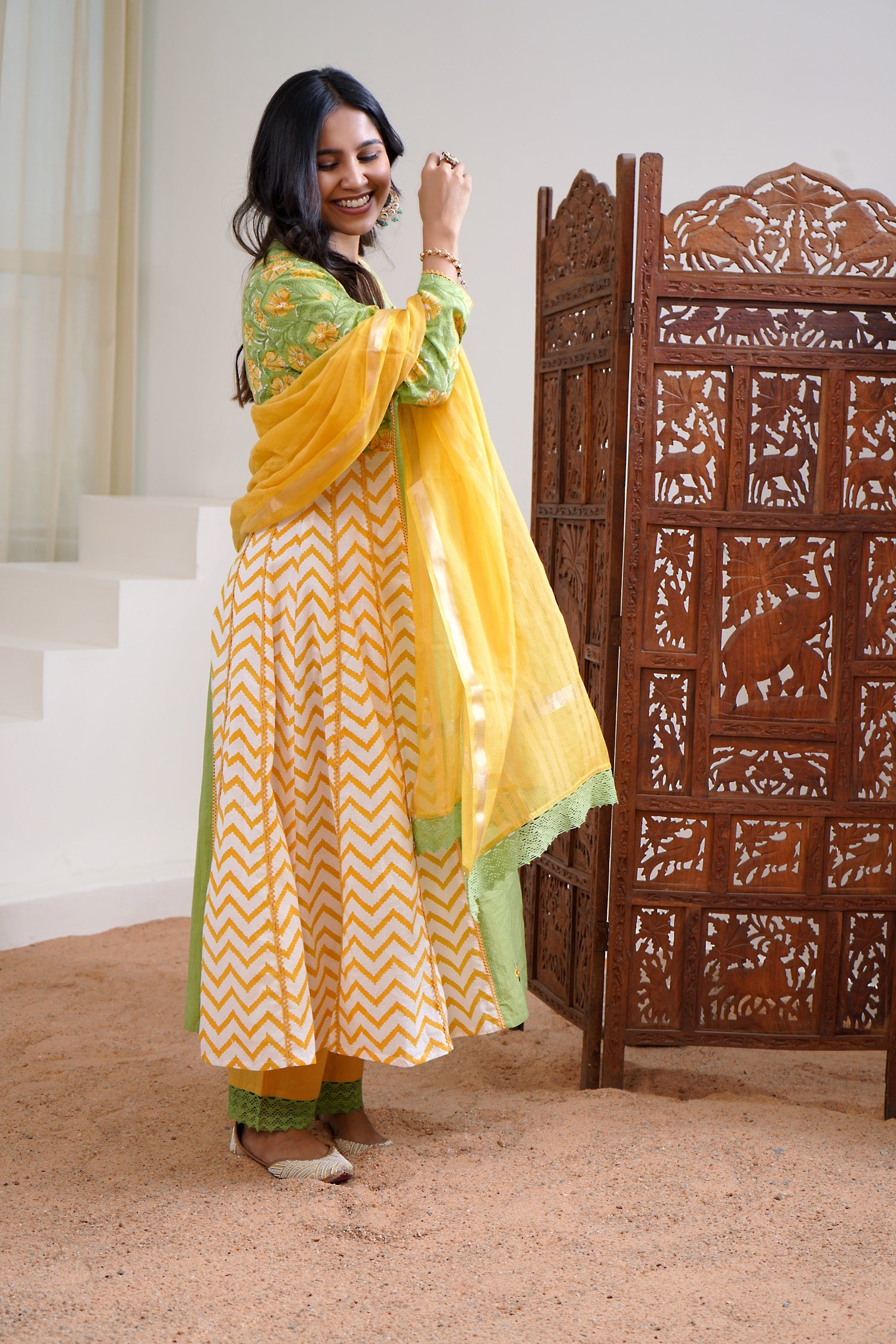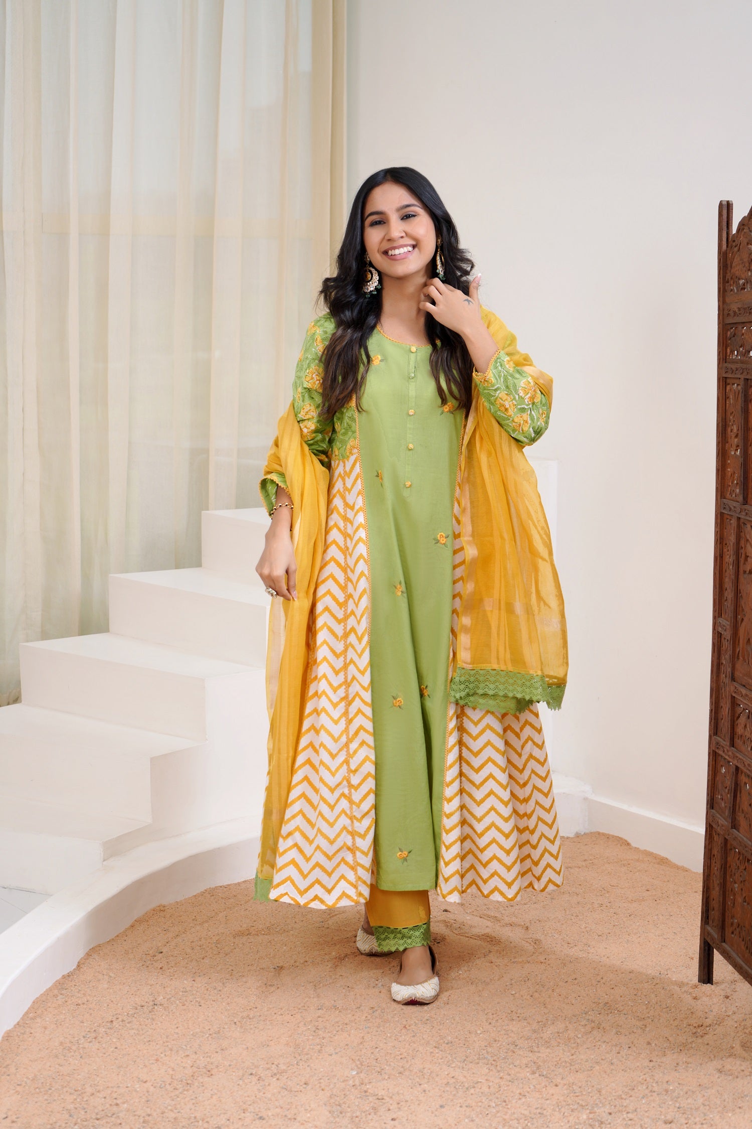 Lush green mango mustard pure cotton kurta & pant with dupatta