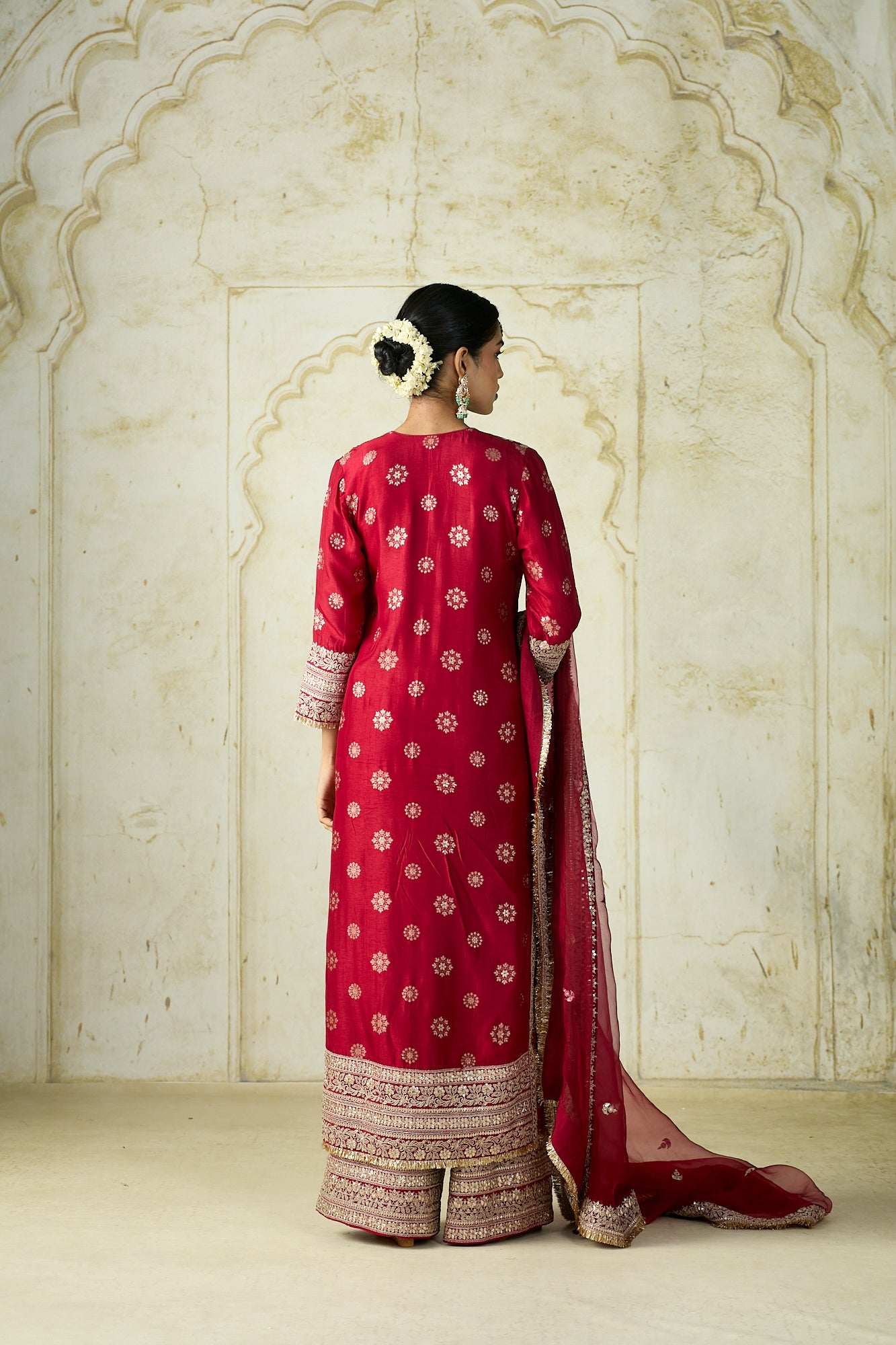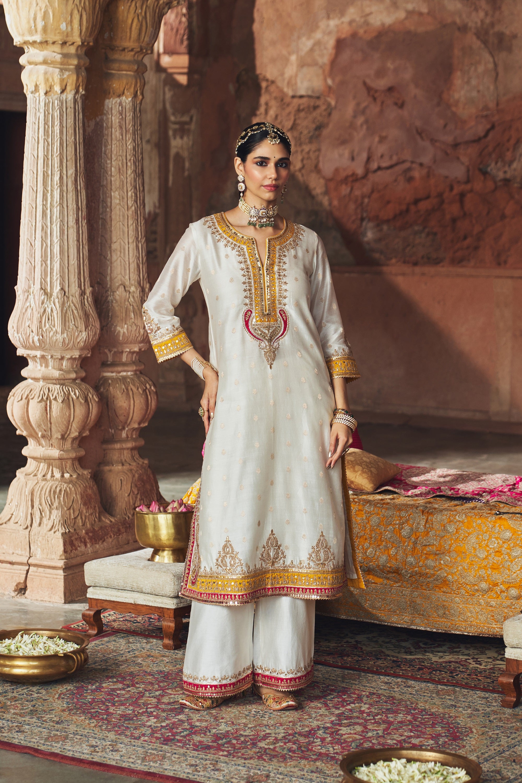 Sumaira - daisy ivory long kurta with palazzo and dupatta