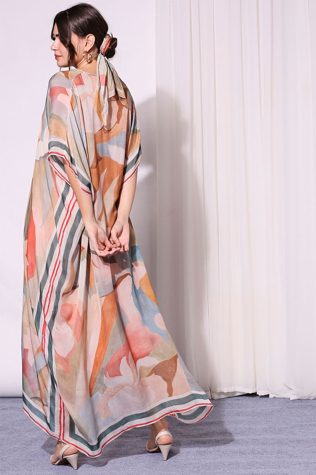The Multi-Color Conversational Printed Kaftan Is A Vibrant And Eye-Catching Piece That Effortlessly Blends Bold Hues And Playful Patterns. Designed With A Relaxed, Flowy Silhouette, This Kaftan Features A Lively, Conversational Print That Tells A Story Through Its Colorful Motifs. The Intricate Designs, Often Featuring Abstract Shapes, Whimsical Figures, Or Cultural Symbols, Add A Touch Of Artistic Flair To The Garment. Perfect For A Laid-Back Day At The Beach Or A Casual Get-Together, Its Lightweight, Breathable Fabric Ensures Comfort Without Compromising On Style. The Multi-Color Palette Makes It A Versatile Addition To Any Wardrobe, Easily Pairing With Both Neutral And Bold Accessories For A Statement Look.