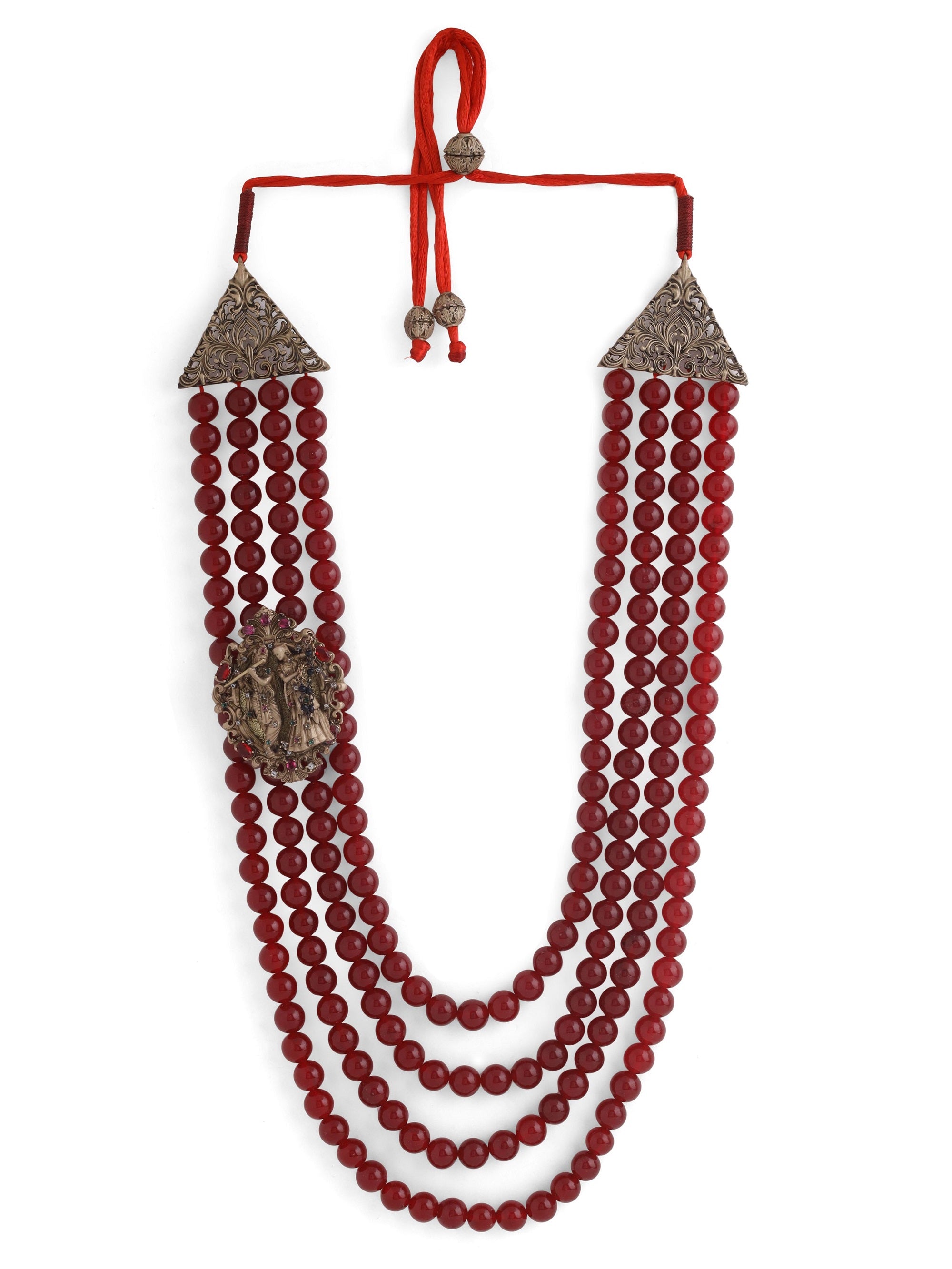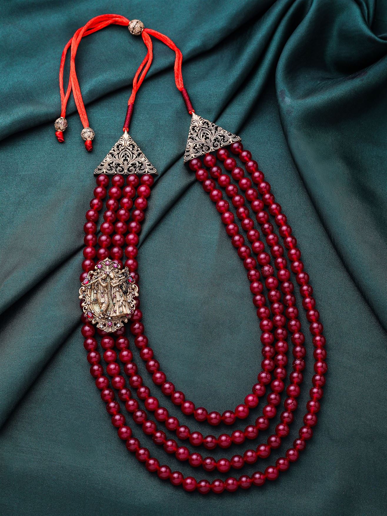 The Radha Krishna Gitz Mala is a beautifully crafted mala. The centerpiece of the design is a stunning Radha Krishna pendant in antique gold finish, symbolizing the divine love between Radha and Krishna. The mala is finished with a handmade tassel that complements the design.