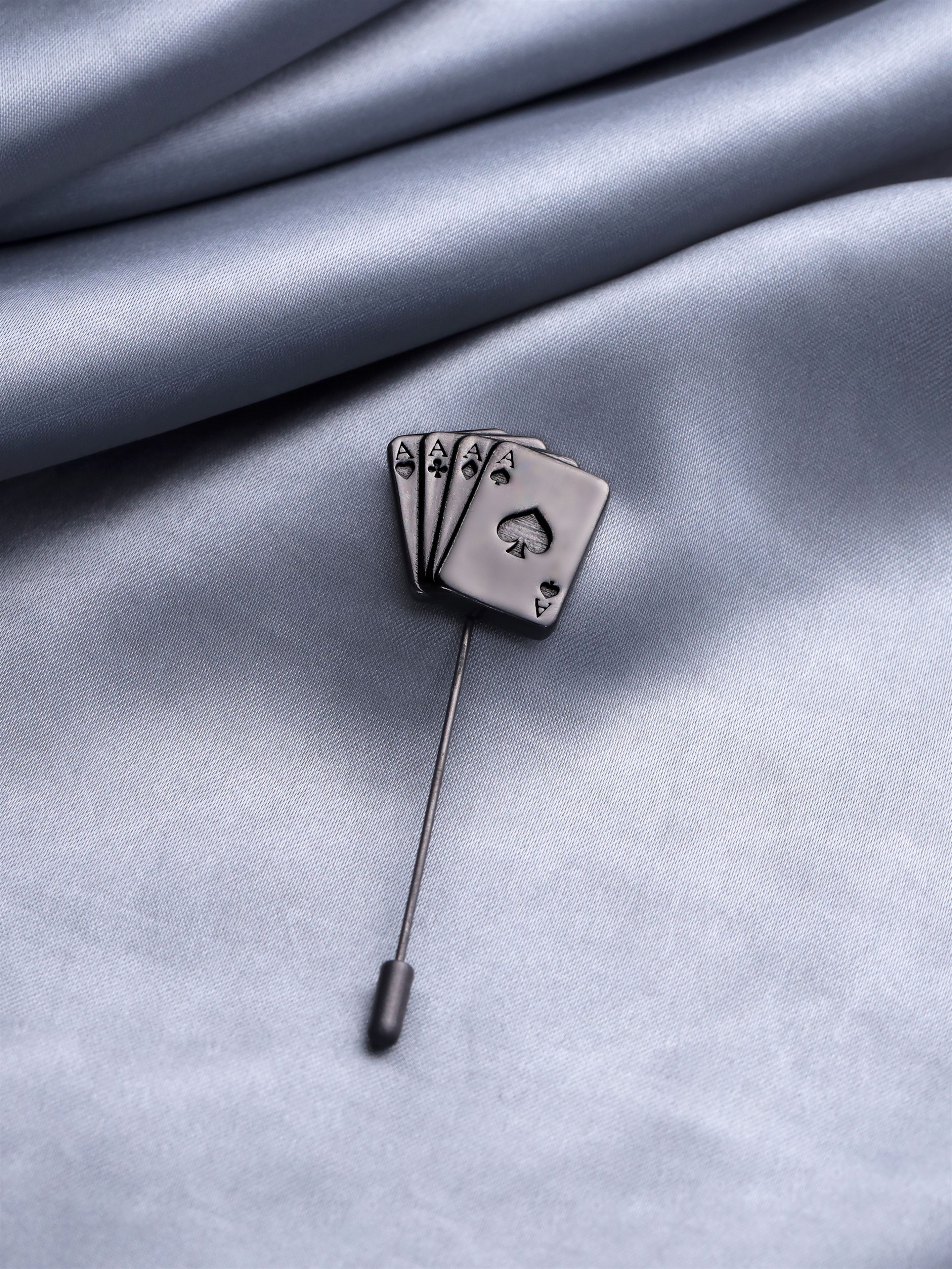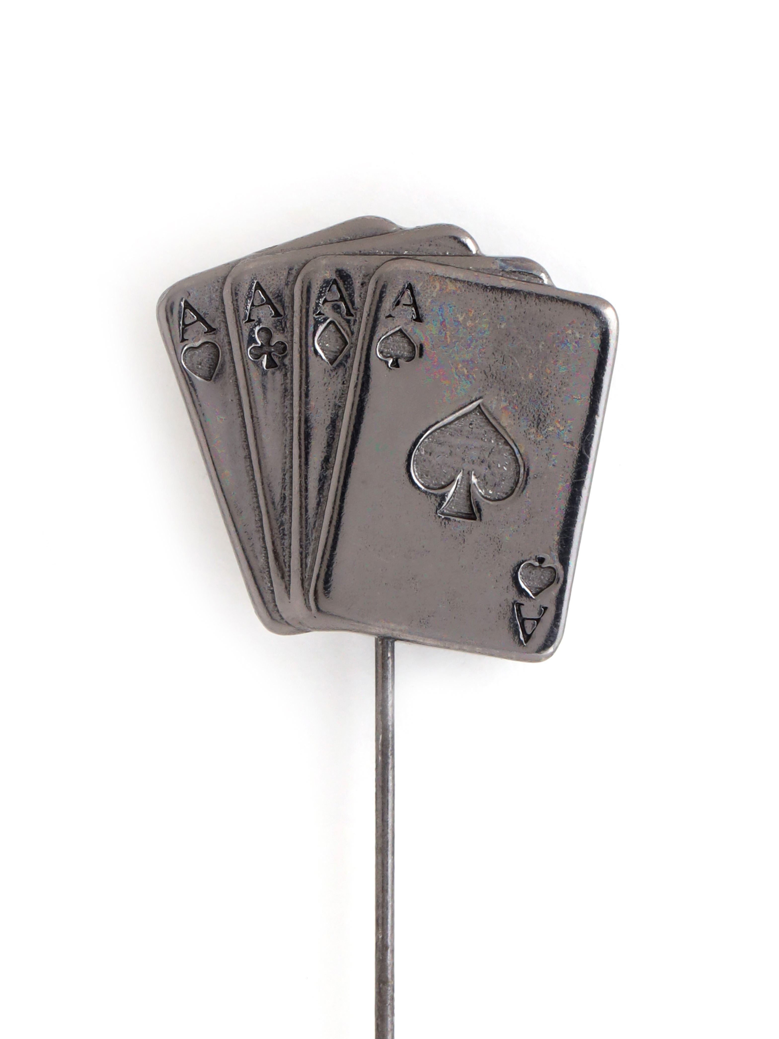 | The Aces Rule Lapel Pin is a replication of the 4 ace cards and is beautifully depicted. An ace is a playing card with the highest value in a deck. There are four aces in a full deck of cards, each with a single heart, spade, diamond, or club pictured on it. |