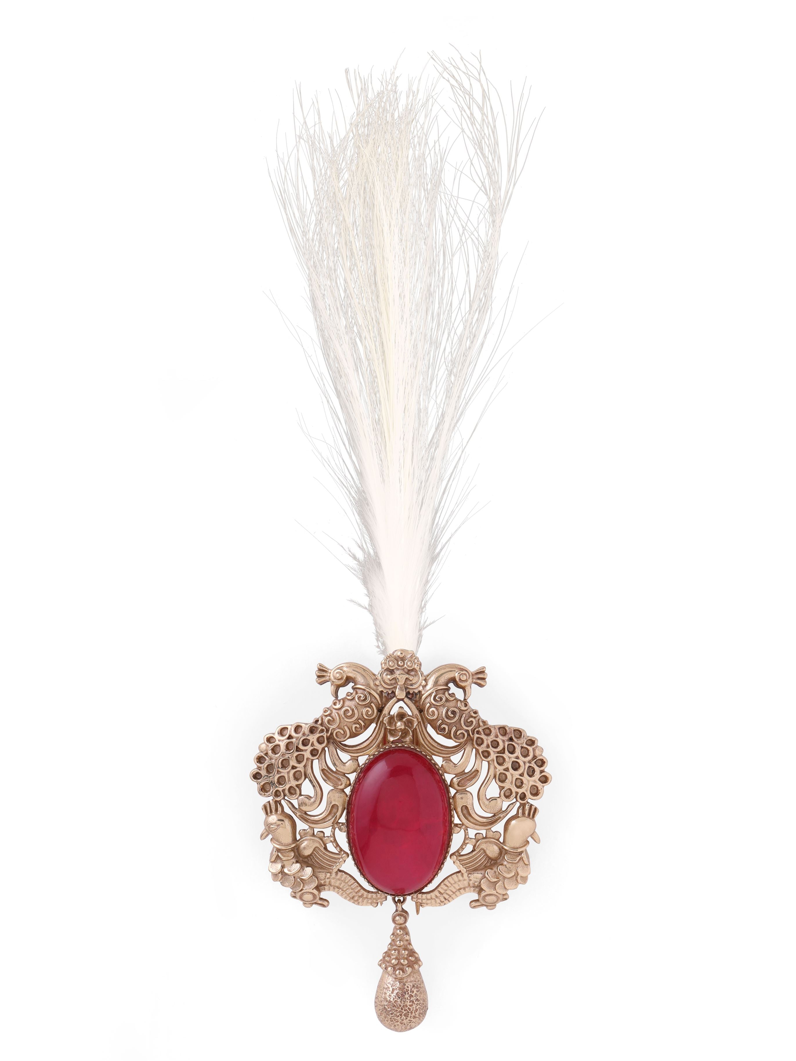 This kalangi features two peacocks and a striking green gemstone. Its design highlights fine detailing, offering a versatile accent that effortlessly complements your attire.Adorn this with a stunning attire to exude awe and wonder as this accessory transcends mere adornment. It's a work of art, a testament to the fusion of classic craftsmanship and contemporary aesthetics.