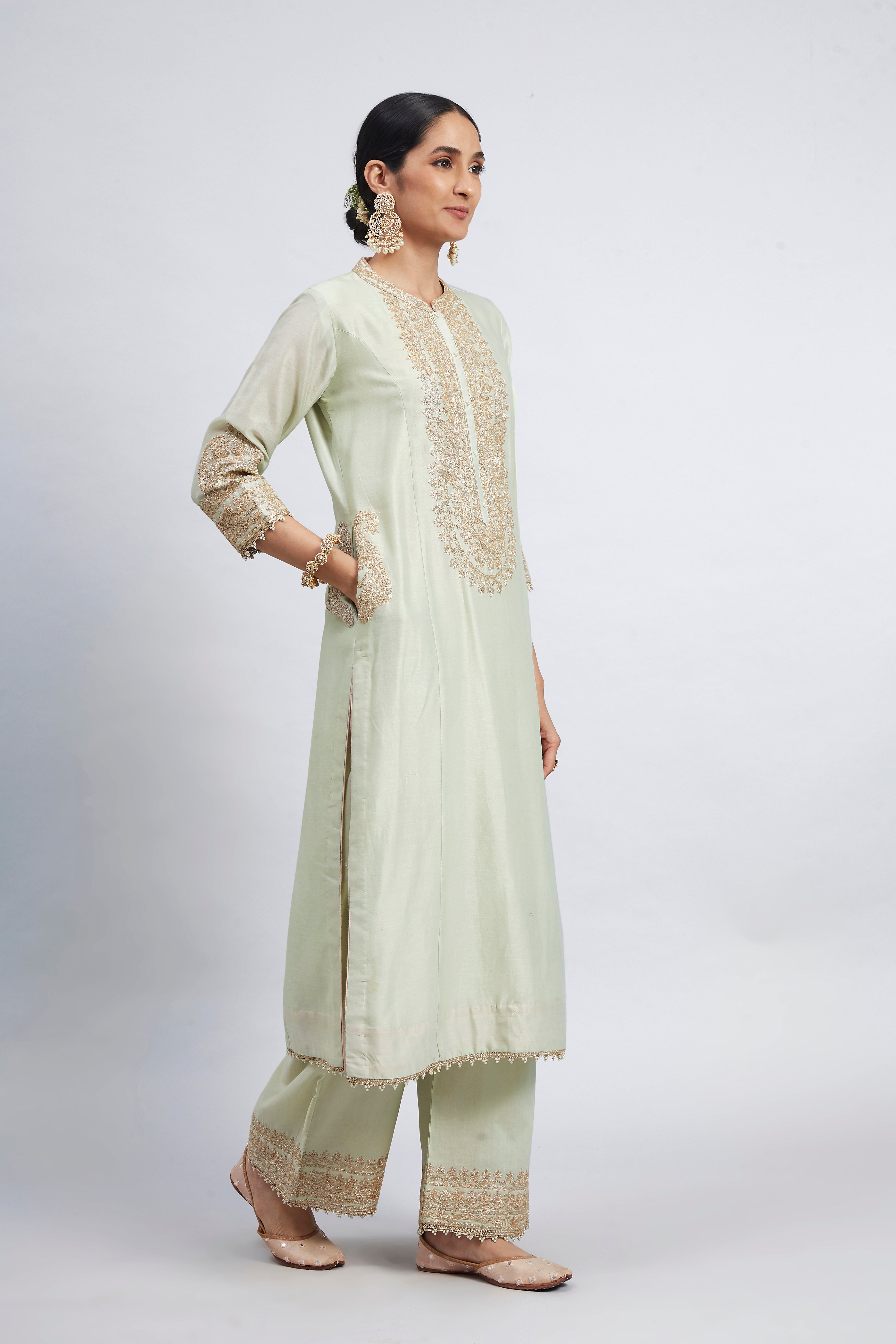 Aadirah-mint green-long kurta with palazzo