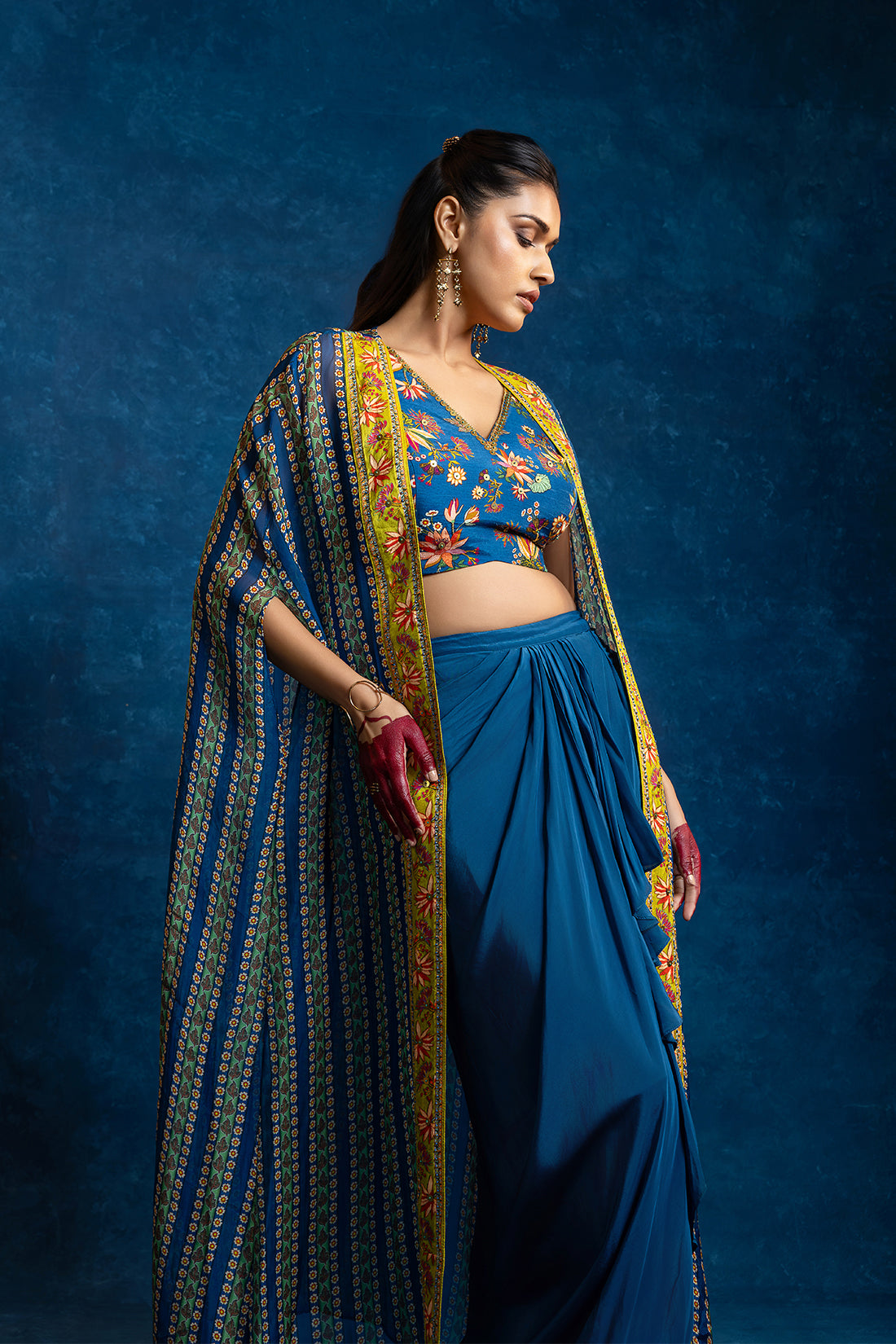 Aarani embellished drape skirt set with long cape