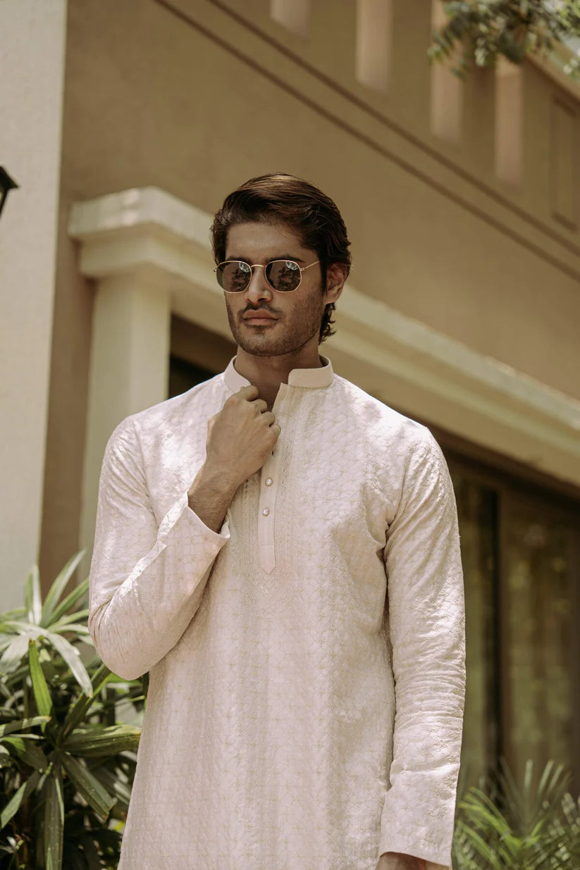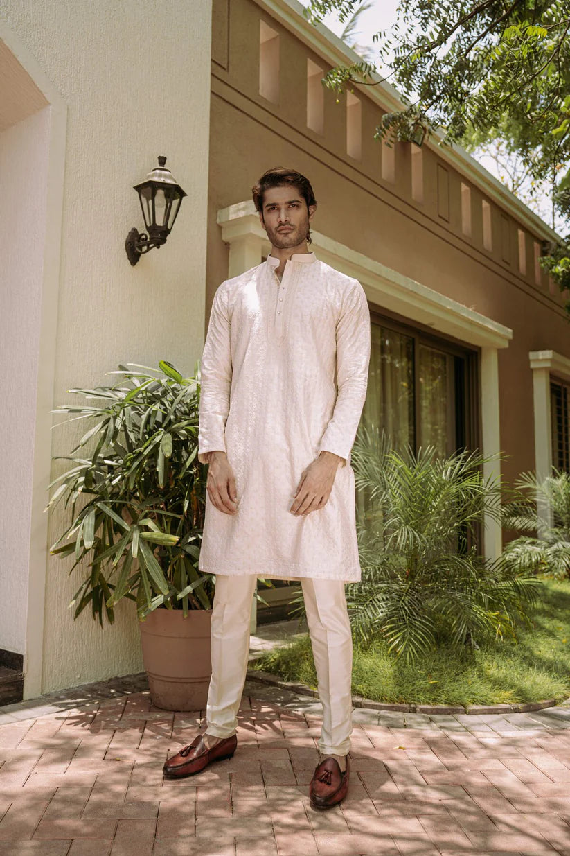 Embrace the timeless beauty of this kurta set and let it enhance your personal style. With its delicate hand embroidery and understated charm, it is sure to make a lasting impression while keeping your look effortlessly sophisticated.