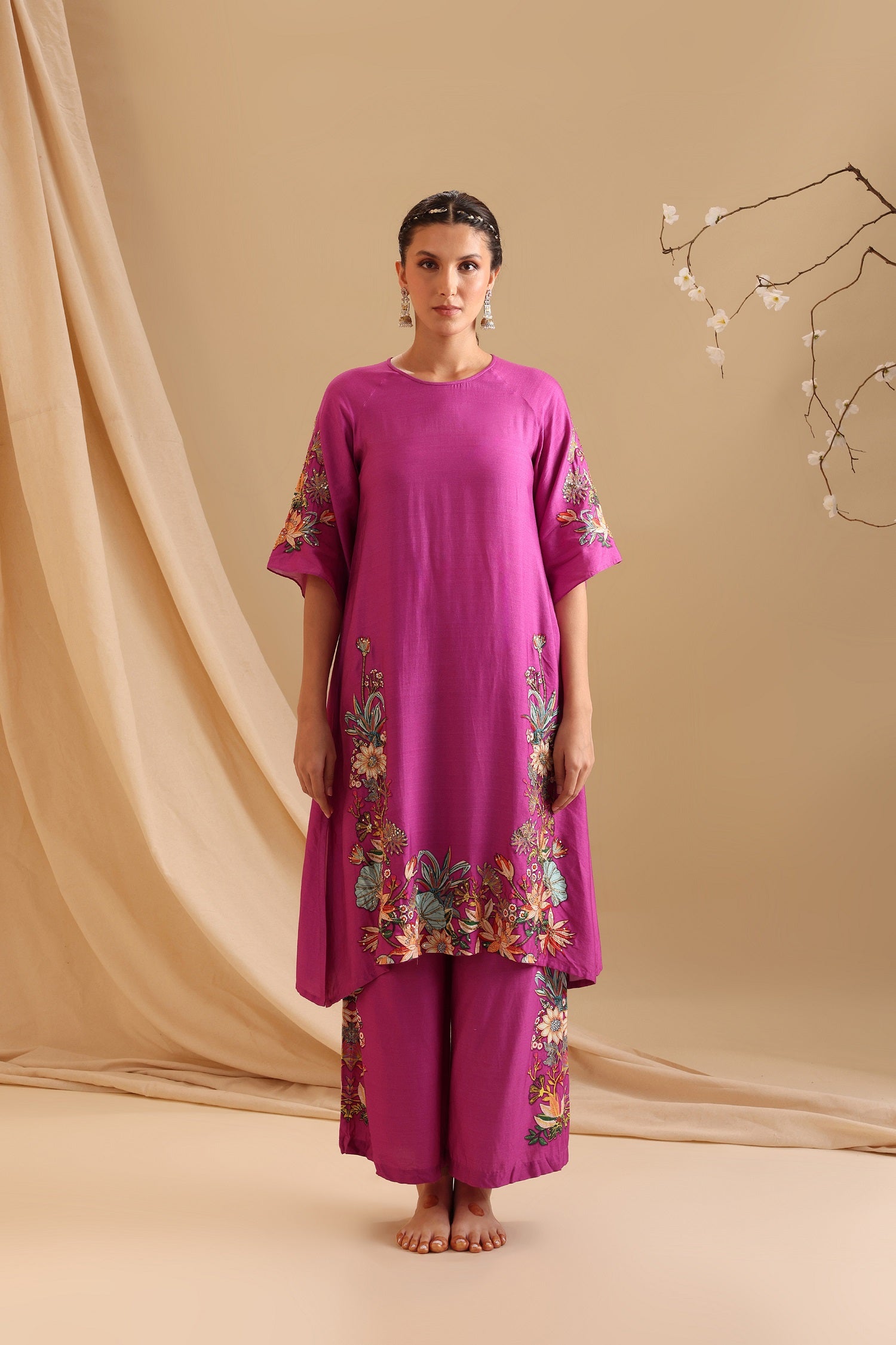 Pink aarani embroidered kurta set