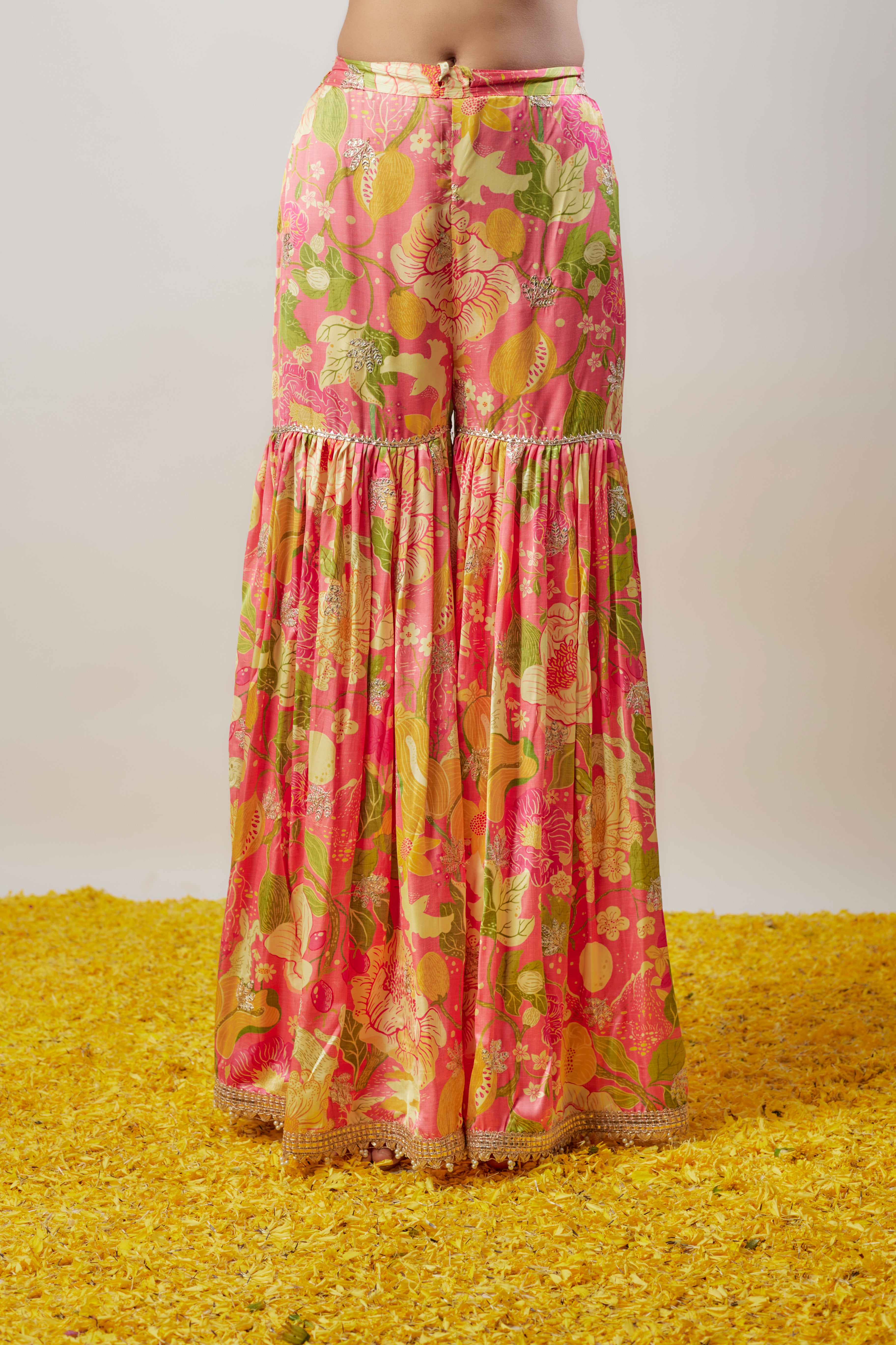 Step into style with our vibrant printed sharara set, featuring a chic peplum top that flatters every silhouette. Complete with a flowing dupatta, this ensemble effortlessly combines comfort and elegance, making it perfect for festive occasions or casual outings. Embrace a playful yet sophisticated look with this stunning outfit!