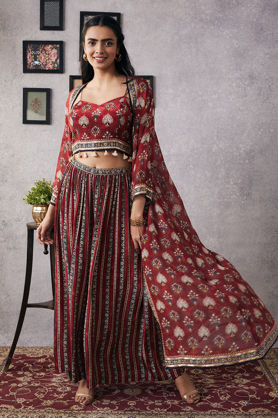 Bold, Elegant, And Effortlessly Refined — The Sarouk Embroidered Co-Ord Set In Striking Red Is Designed To Make A Statement. Crafted From A Flowy Blend Of Chiffon And Crepe, This Three-Piece Ensemble Features Delicate Embroidery That Adds An Artisanal Touch To The Modern Silhouette. The Co-Ord Set Includes A Flattering Top And Pants, Layered With A Lightweight Embroidered Jacket That Adds Dimension And Grace. Perfect For Festive Occasions, Evening Soirées, Or Contemporary Celebrations, It Blends Comfort With Couture-Inspired Detailing.