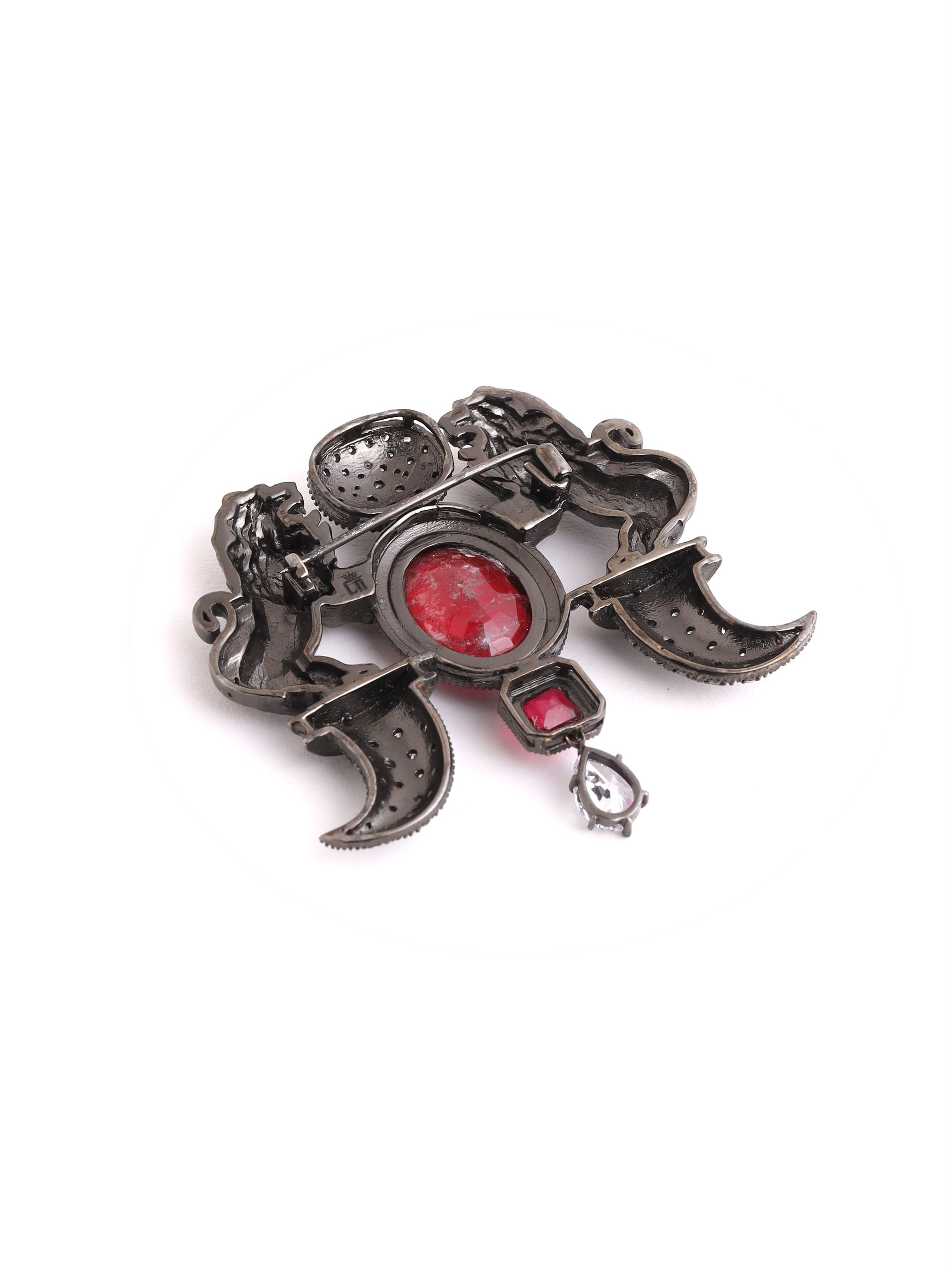 "Unleash your inner strength with the ""Shehenshah-e-Jungle Brooch,"" a captivating emblem of courage and ferocity. This striking accessory features two intricately designed lions, poised in a powerful stance. At its heart lies a commanding circle gemstone, symbolizing their regal prowess. Beneath, a small green square gemstone reflects their untamed spirit. Crafted with artistry, the brooch captures the essence of lions' commanding presence. Wear this Brooch with pride, embodying the fearless spirit of these majestic creatures and embracing the daring energy they exude.