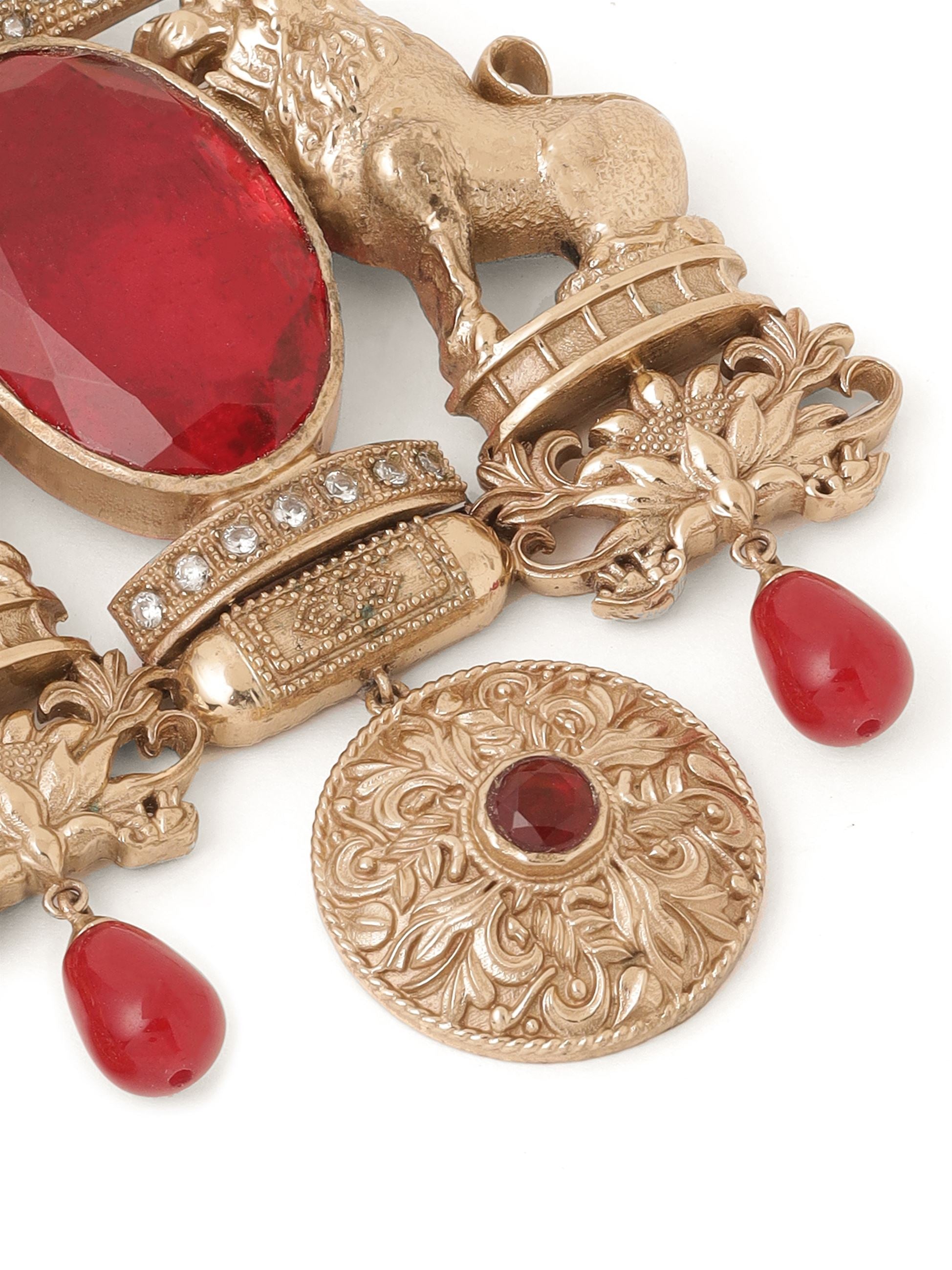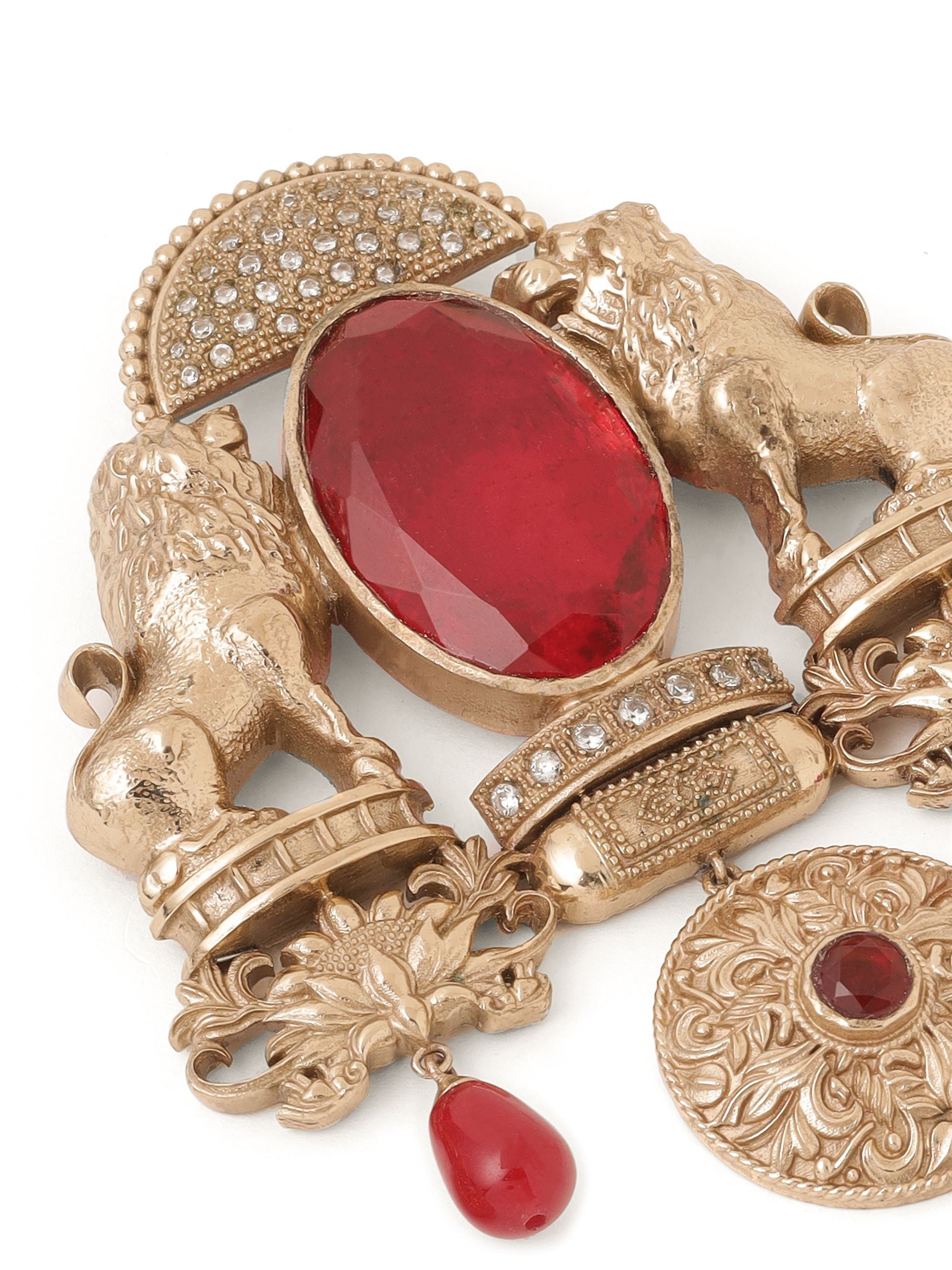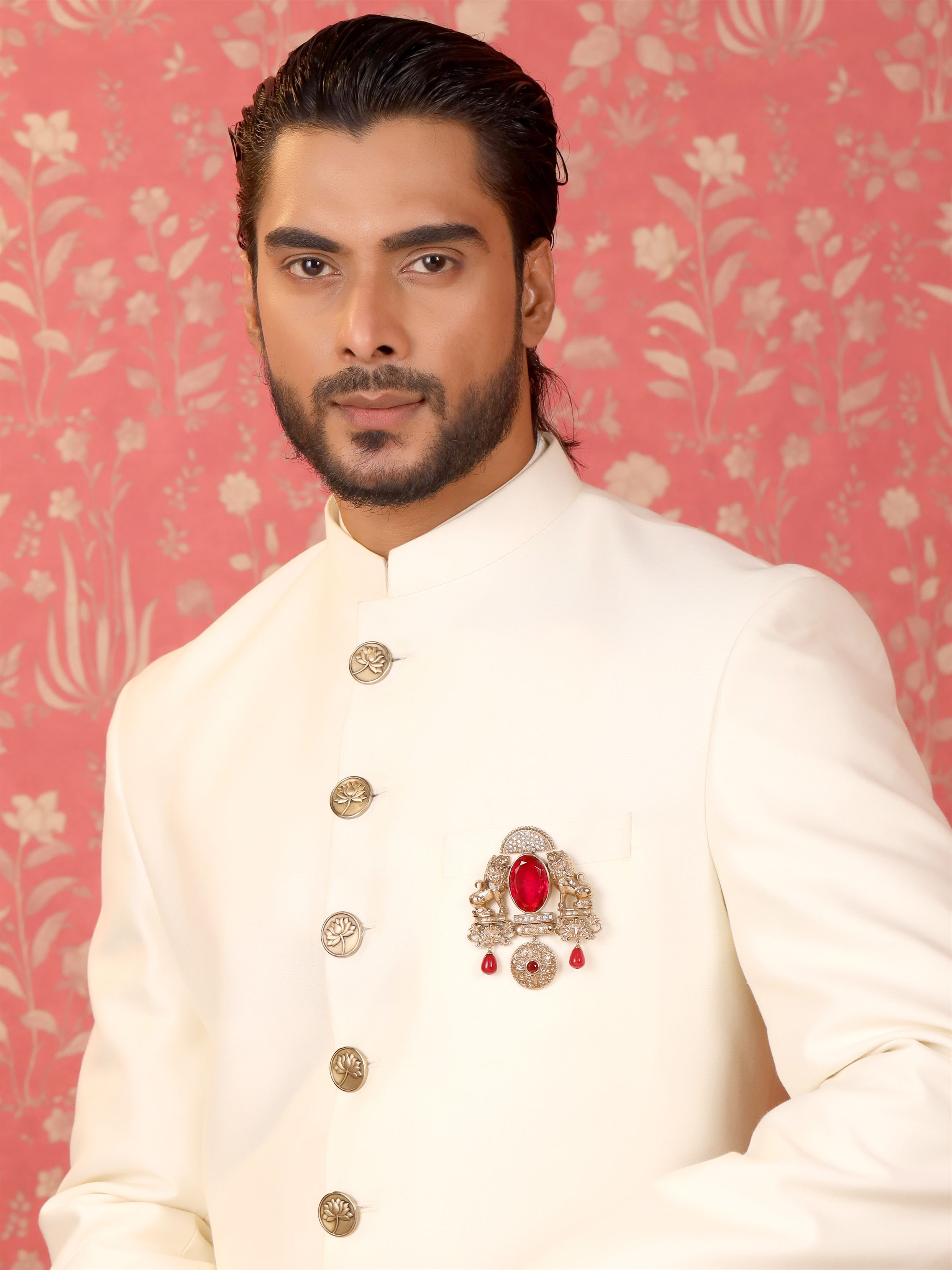Unleash your inner strength and embody the regal spirit with the "Sher-e-Khaas Brooch" This captivating accessory showcases a meticulously crafted lion design, exuding power and majesty. Adorned with gleaming gemstones that mirror the lion's fiery gaze, the brooch stands as a symbol of courage and leadership. With unparalleled artistry, it captures the essence of the lion's legacy, inspiring every modern man to fearlessly conquer life's challenges and leave a lasting impression like a king.