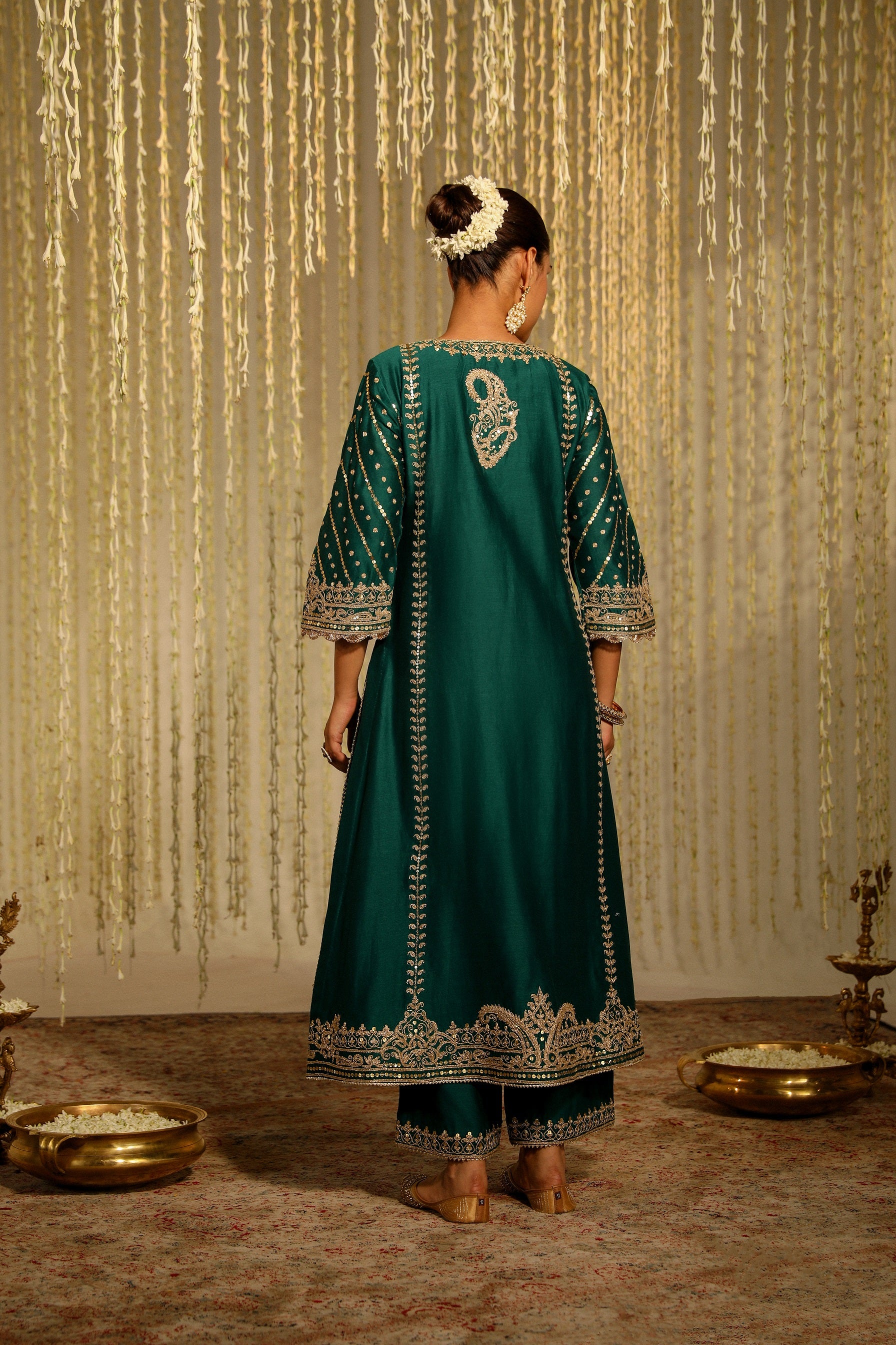 Ryhana frosty green a-line short kurta with salwar and dupatta