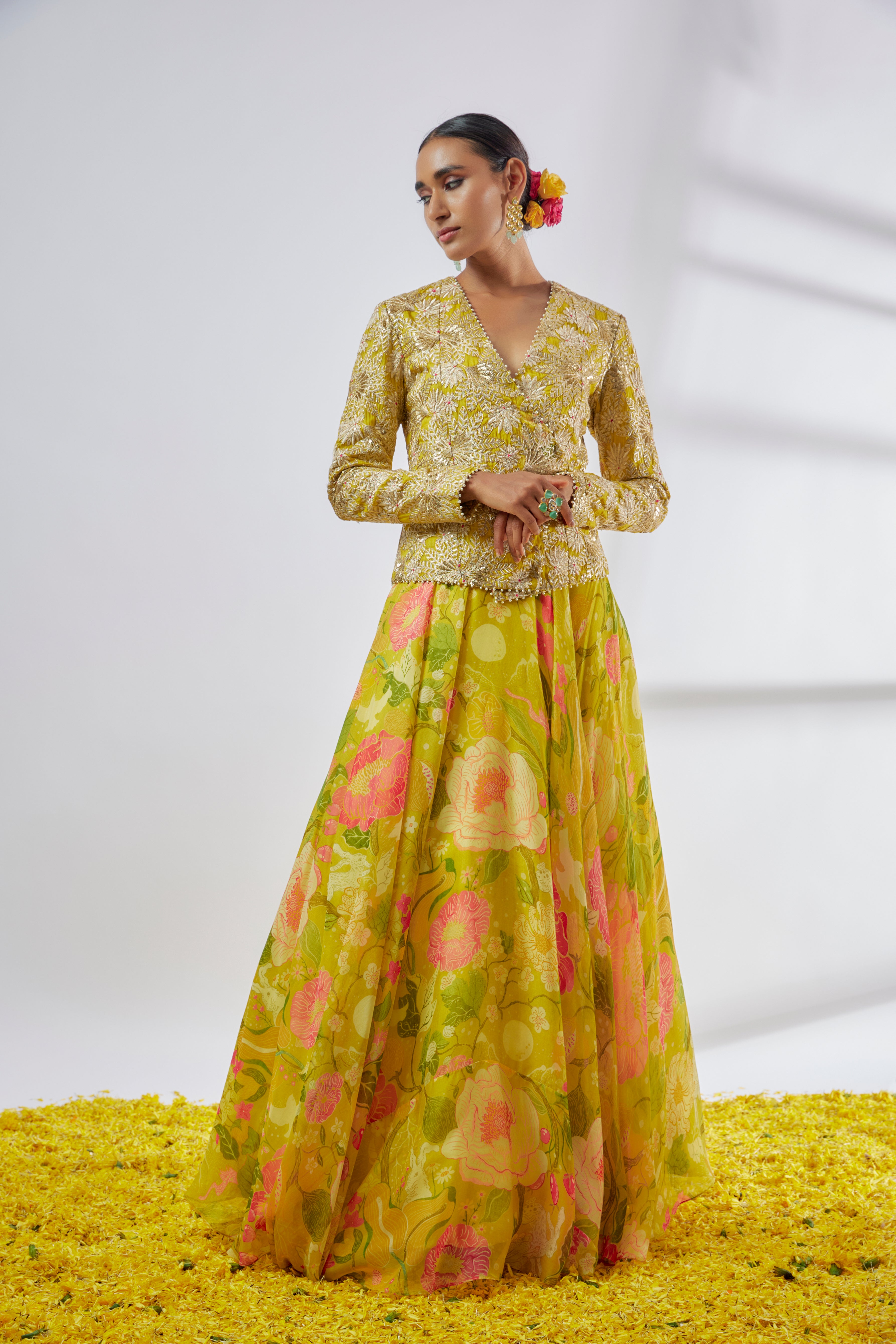 Laiba - mustard a-line kurta with dhoti and dupatta