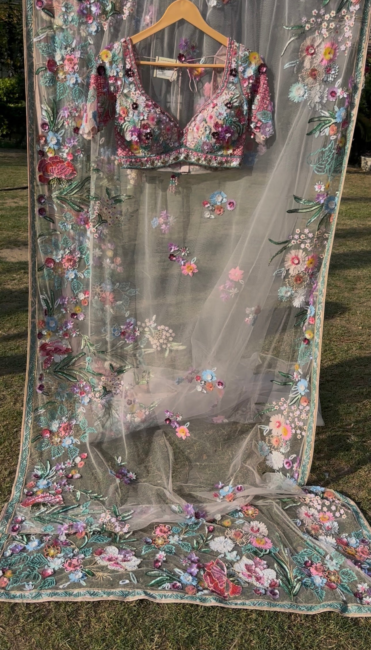 Pure raw silk ivory embroidered kurta palazzo set with dupatta