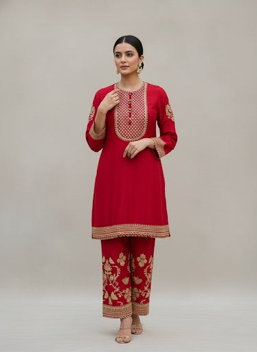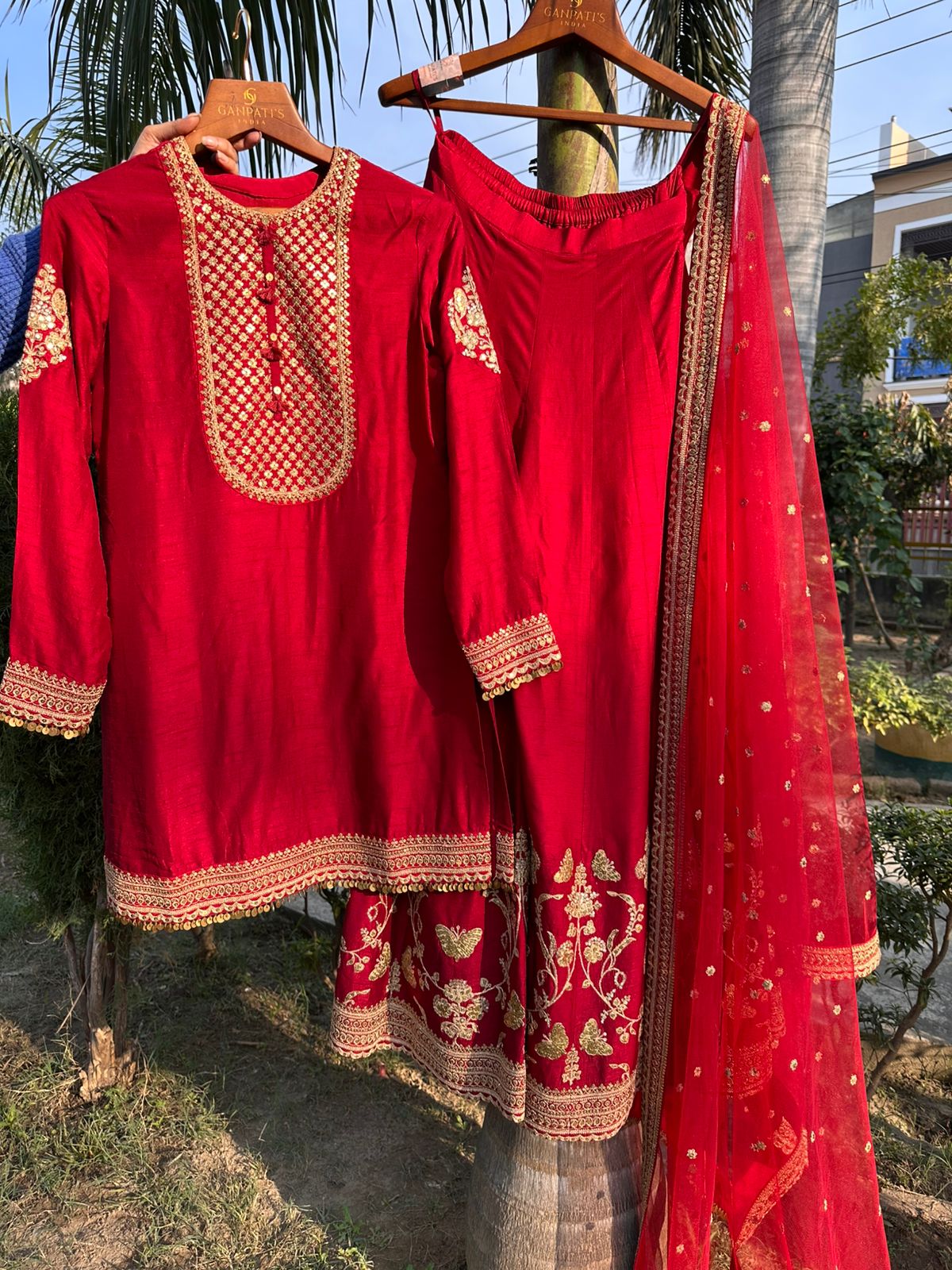 Amal - hotpink a-line kurta with dhoti with dupatta
