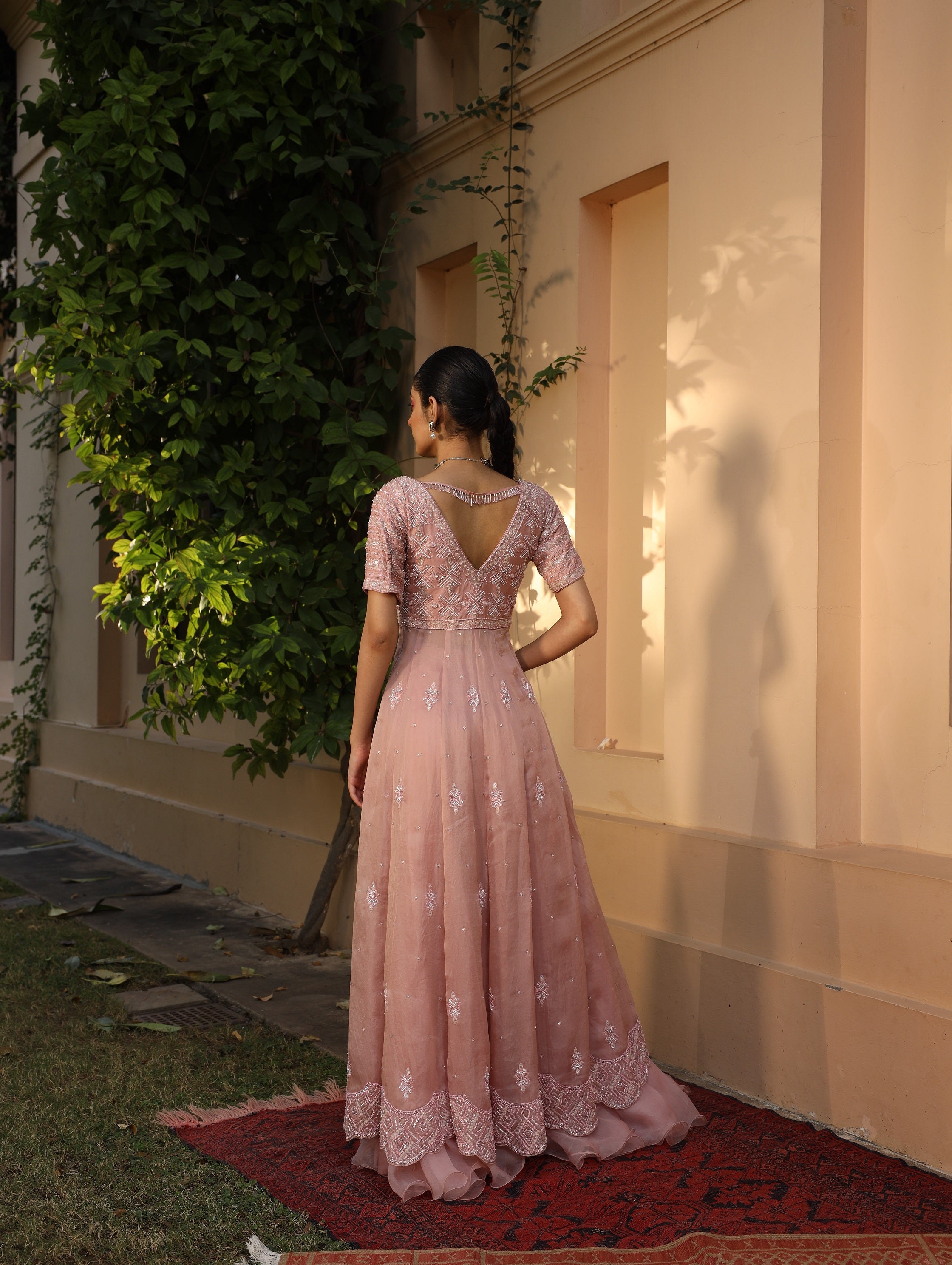 | Our front open anarkali have embroiderd yoke and thick scalloped boarder.Anarkali is paired with orgaza skirt and dupatta. |