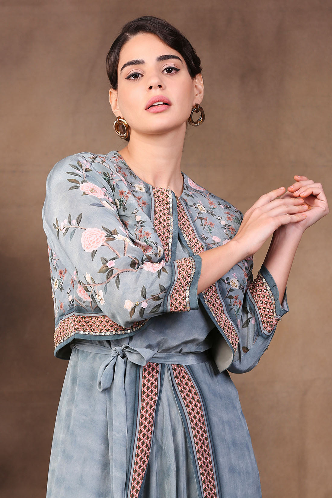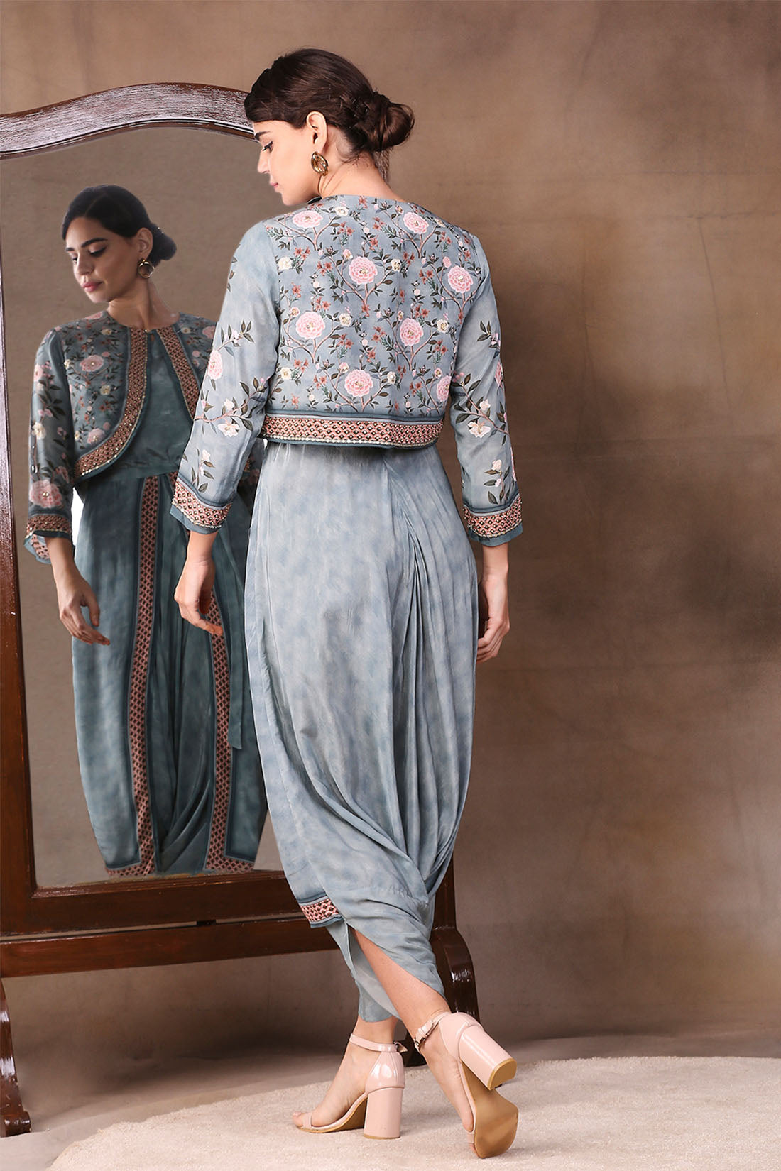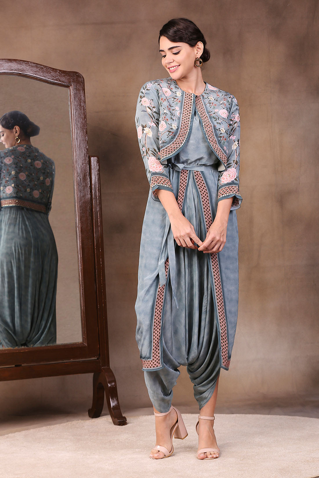 Green vintage trails printed dhoti style jumpsuit with jacket