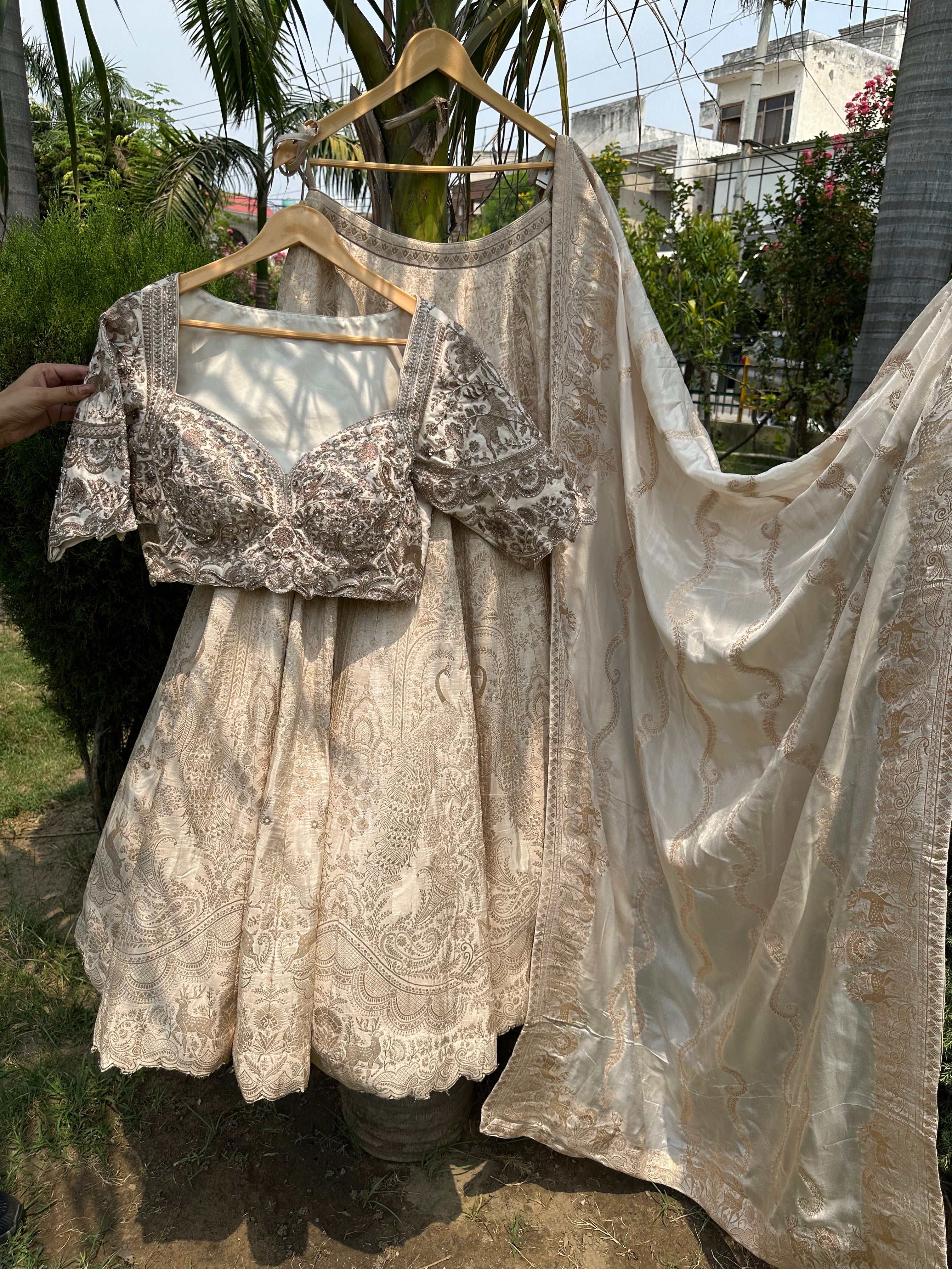 Ivory lehenga choli paired with a matching dupatta.
