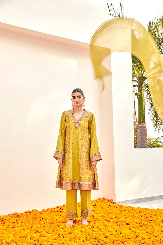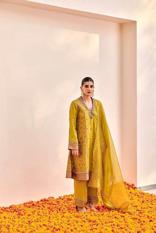 Featuring with lime green short anarkali set it is combination with palazzo, dupatta and short Anarkali.