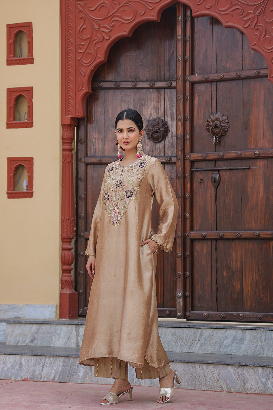 Cheent embroidered long yoke style