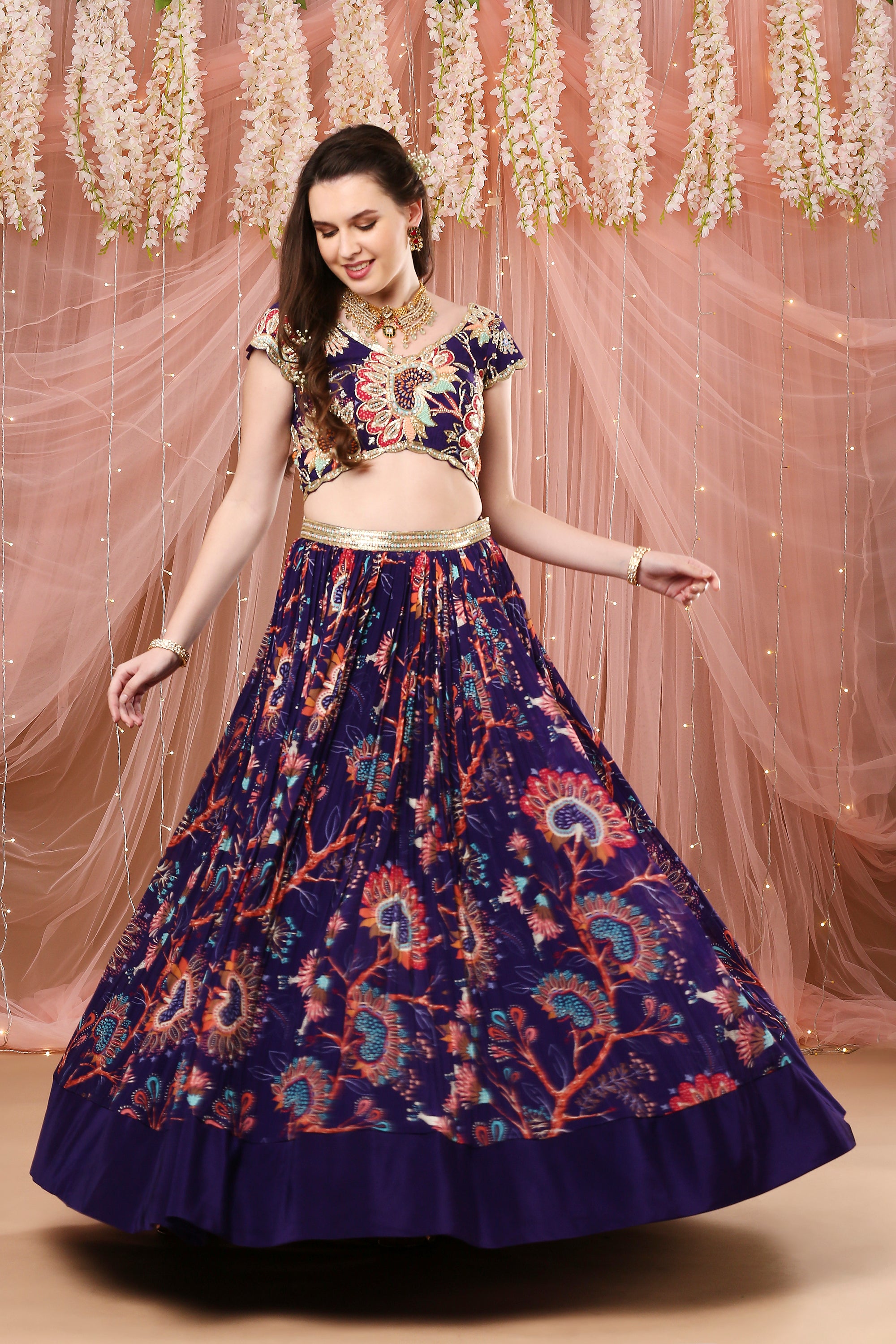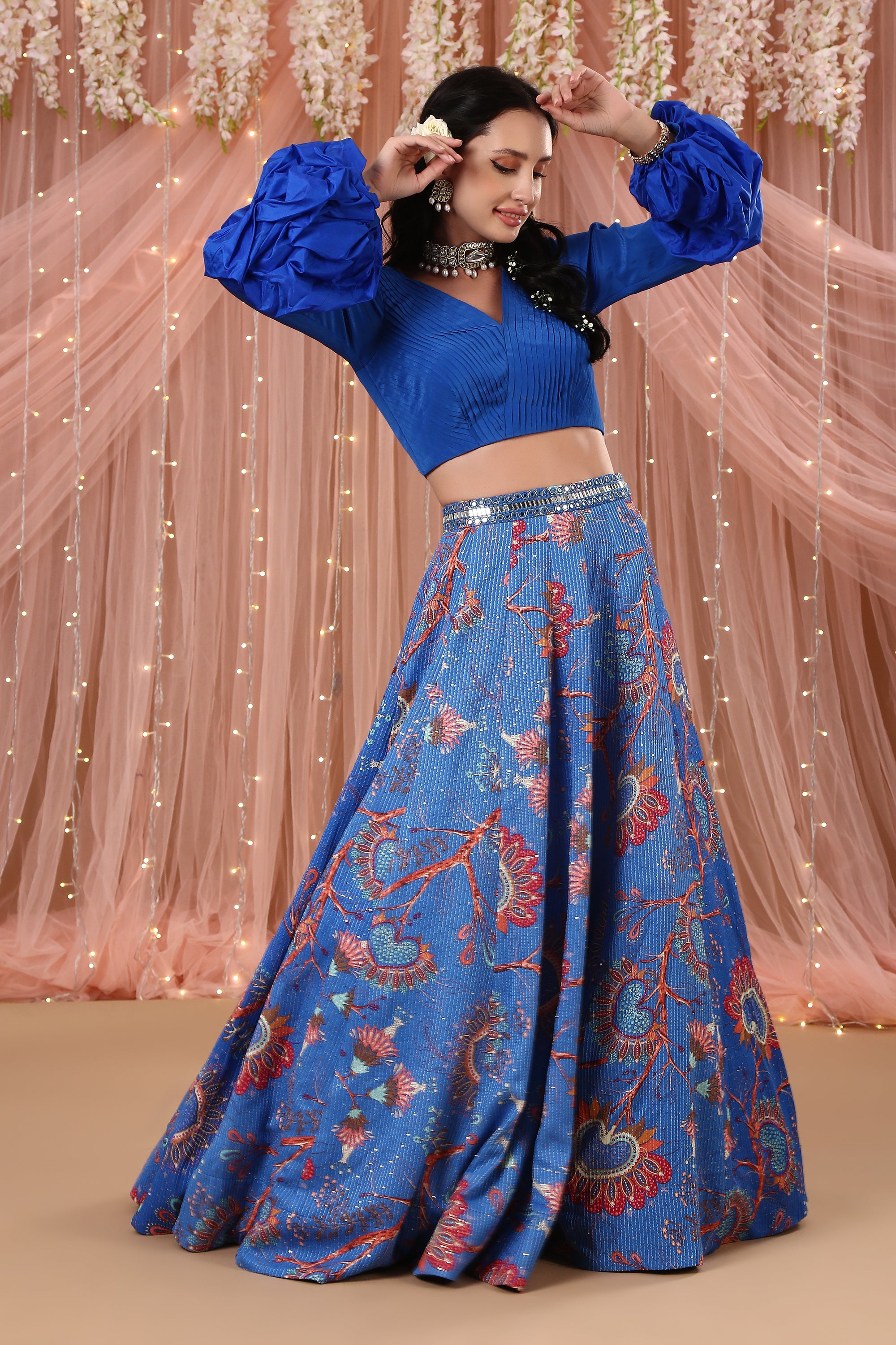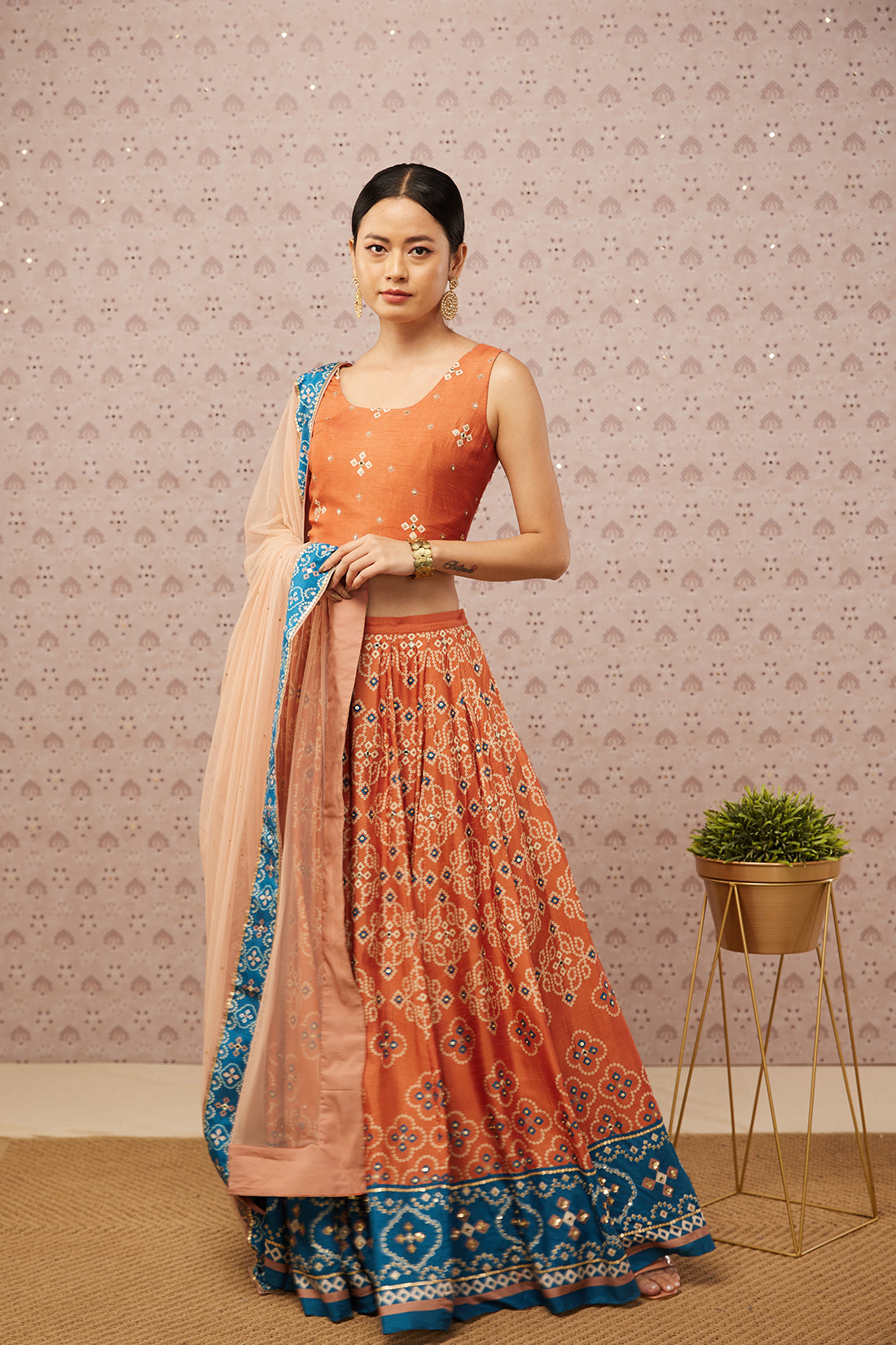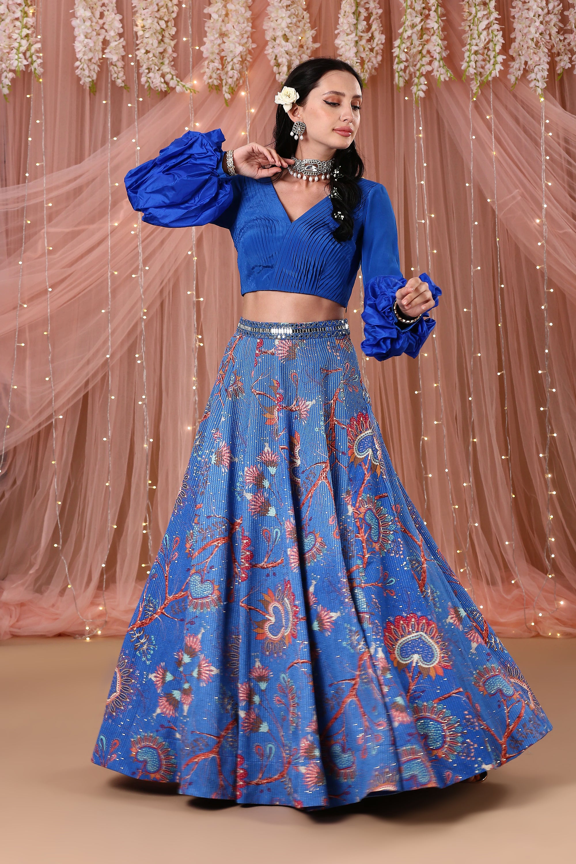 Satin georgette ombre lehenga in sequin and pearl detail.
