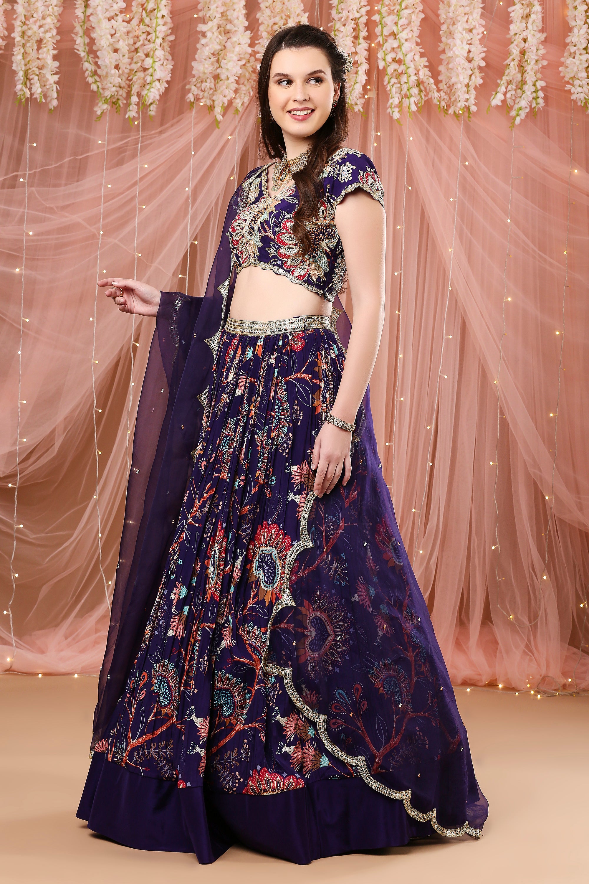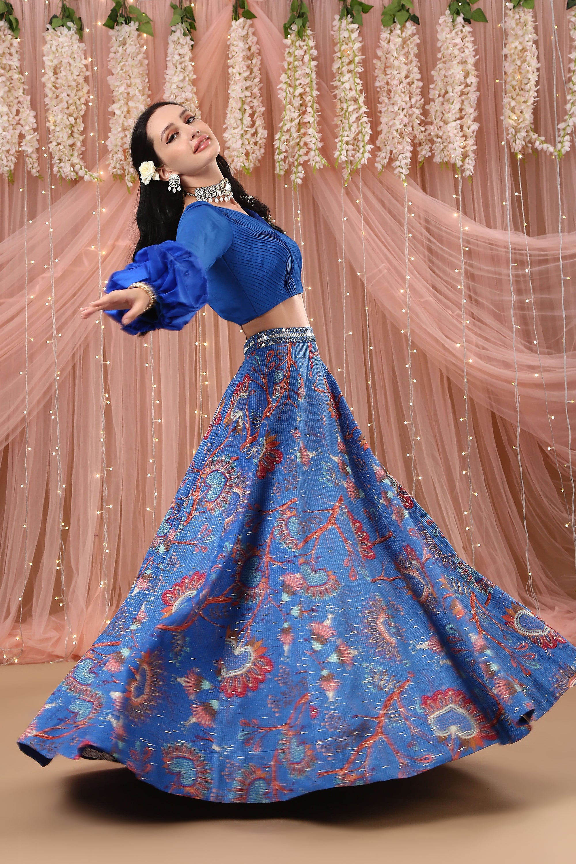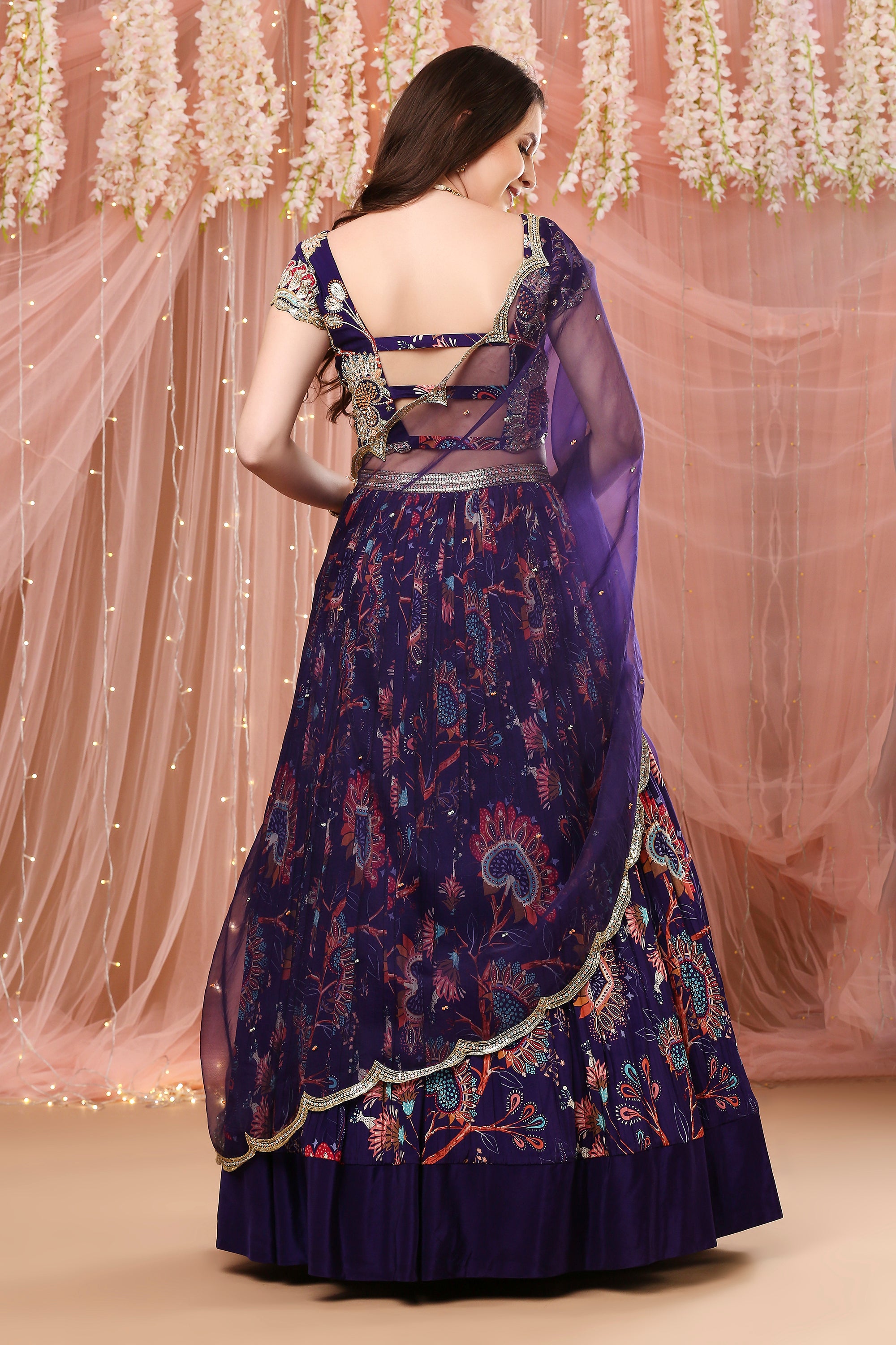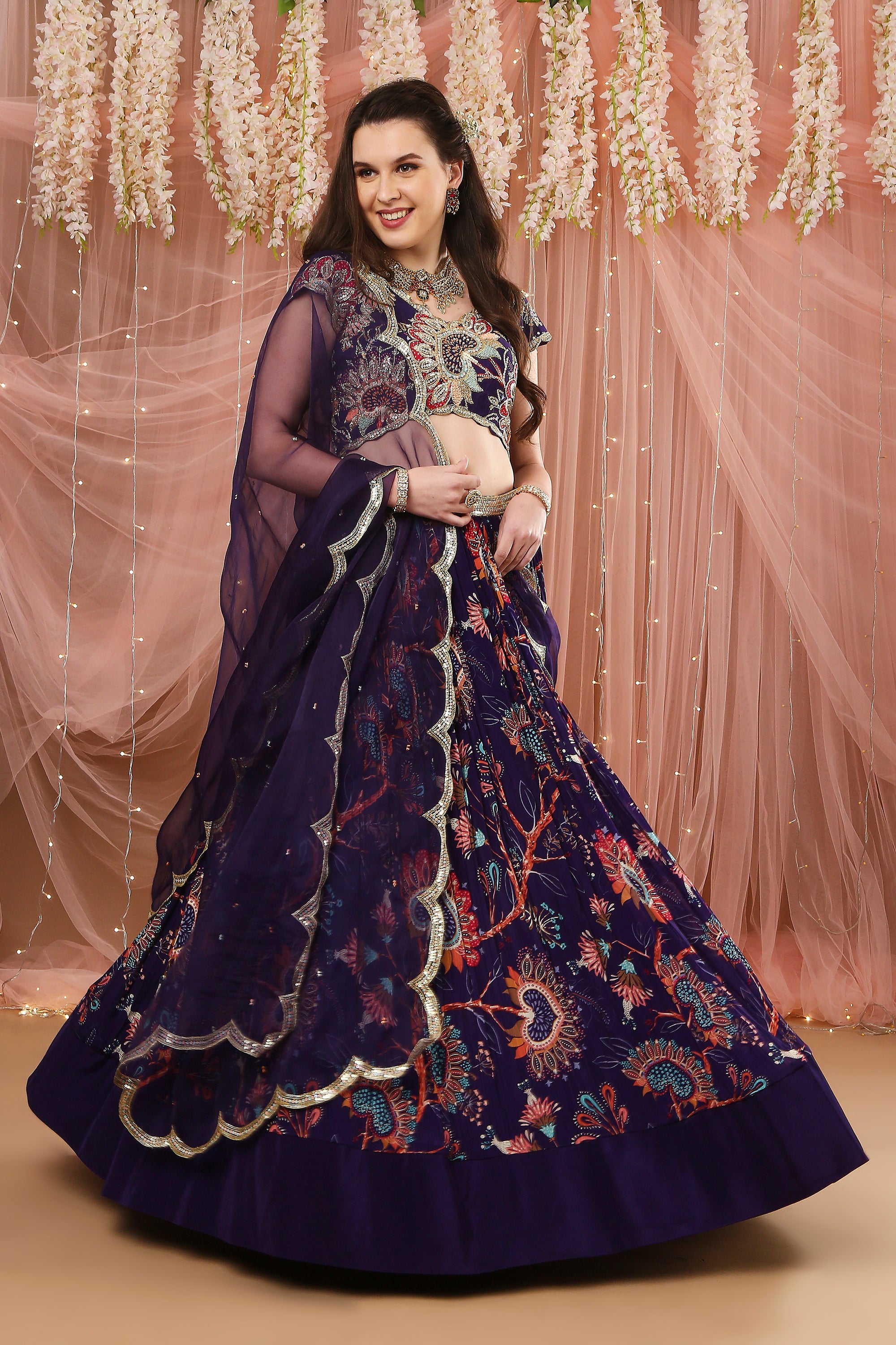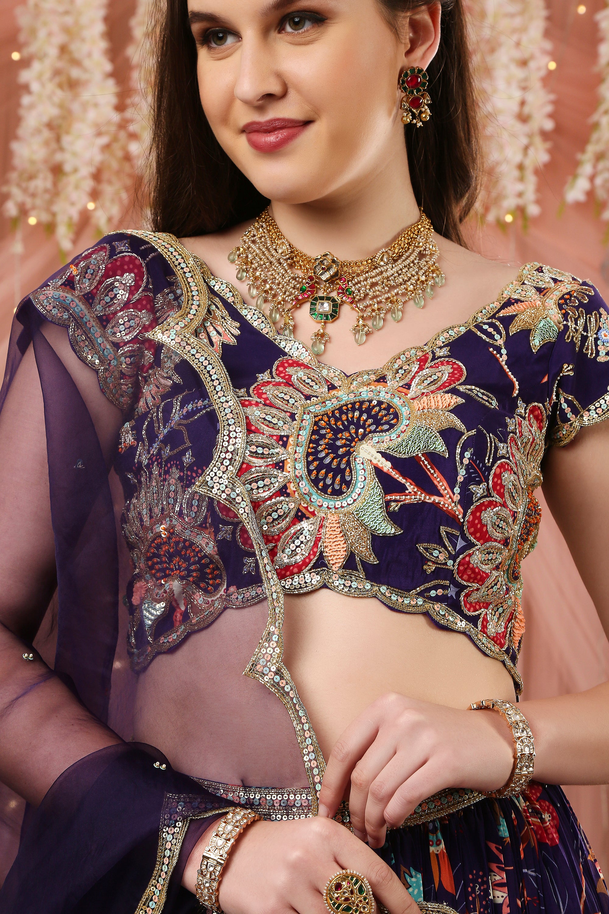 Satin georgette ombre lehenga in sequin and pearl detail.