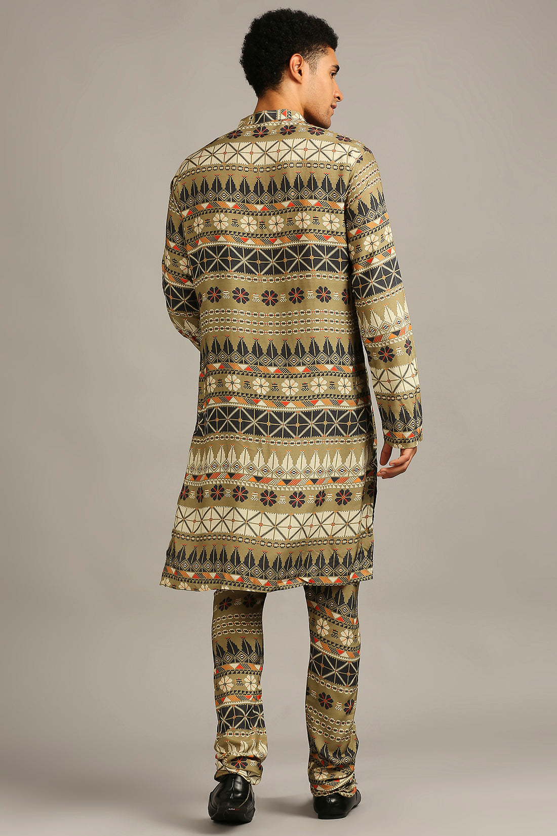 Step into timeless elegance with this Tiraz Printed Kurta Set, where traditional craftsmanship meets contemporary style. Drawing inspiration from the ancient art of Tiraz—ornamental textiles historically adorned with intricate patterns and regal motifs—this kurta set captures the essence of royal heritage with a modern twist.