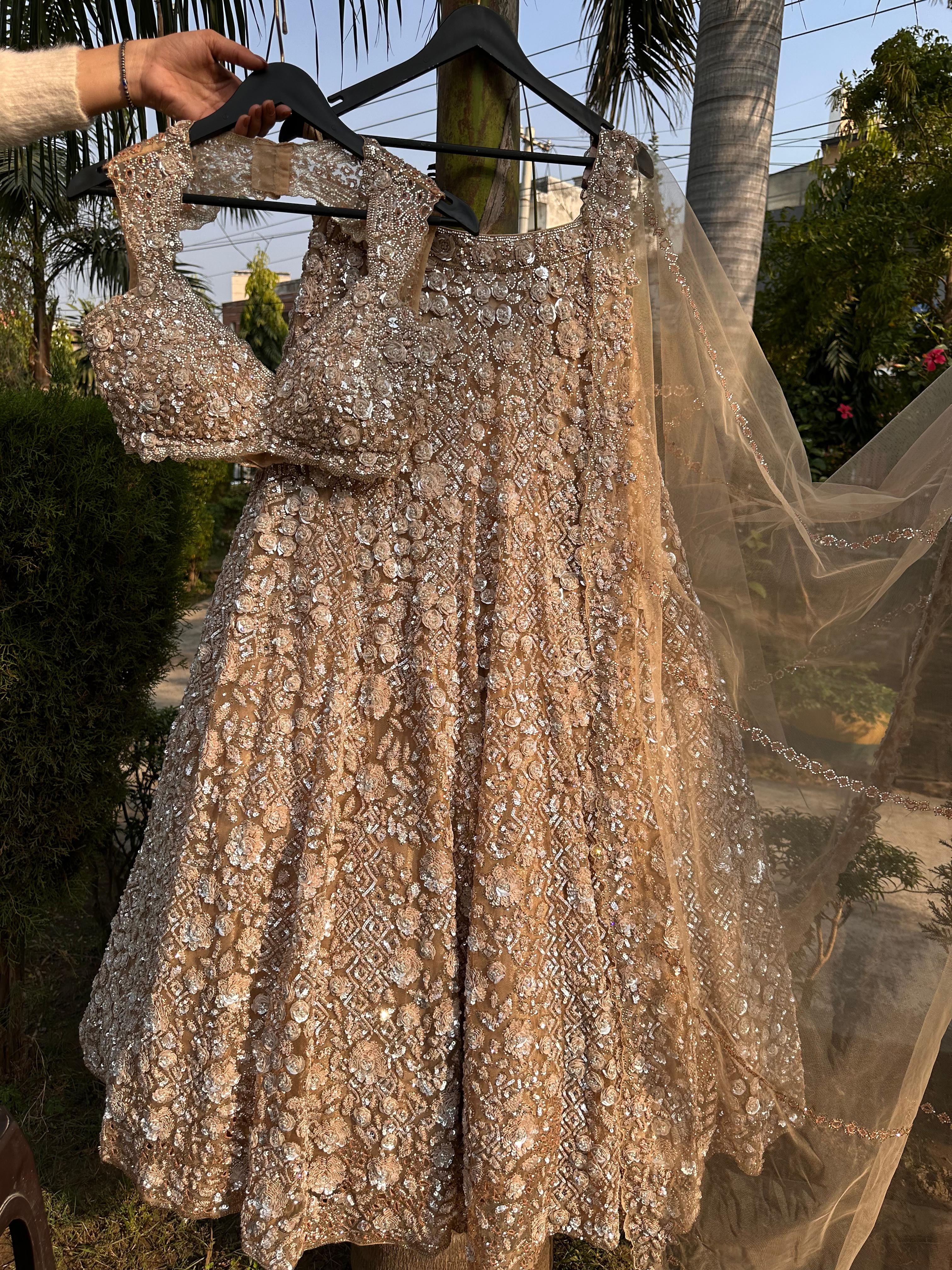 Luxury champagne-old lehenga set.