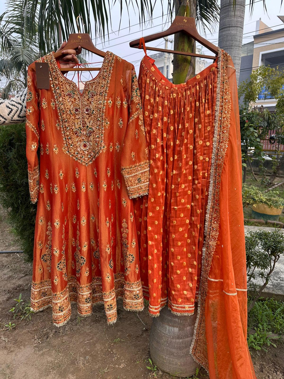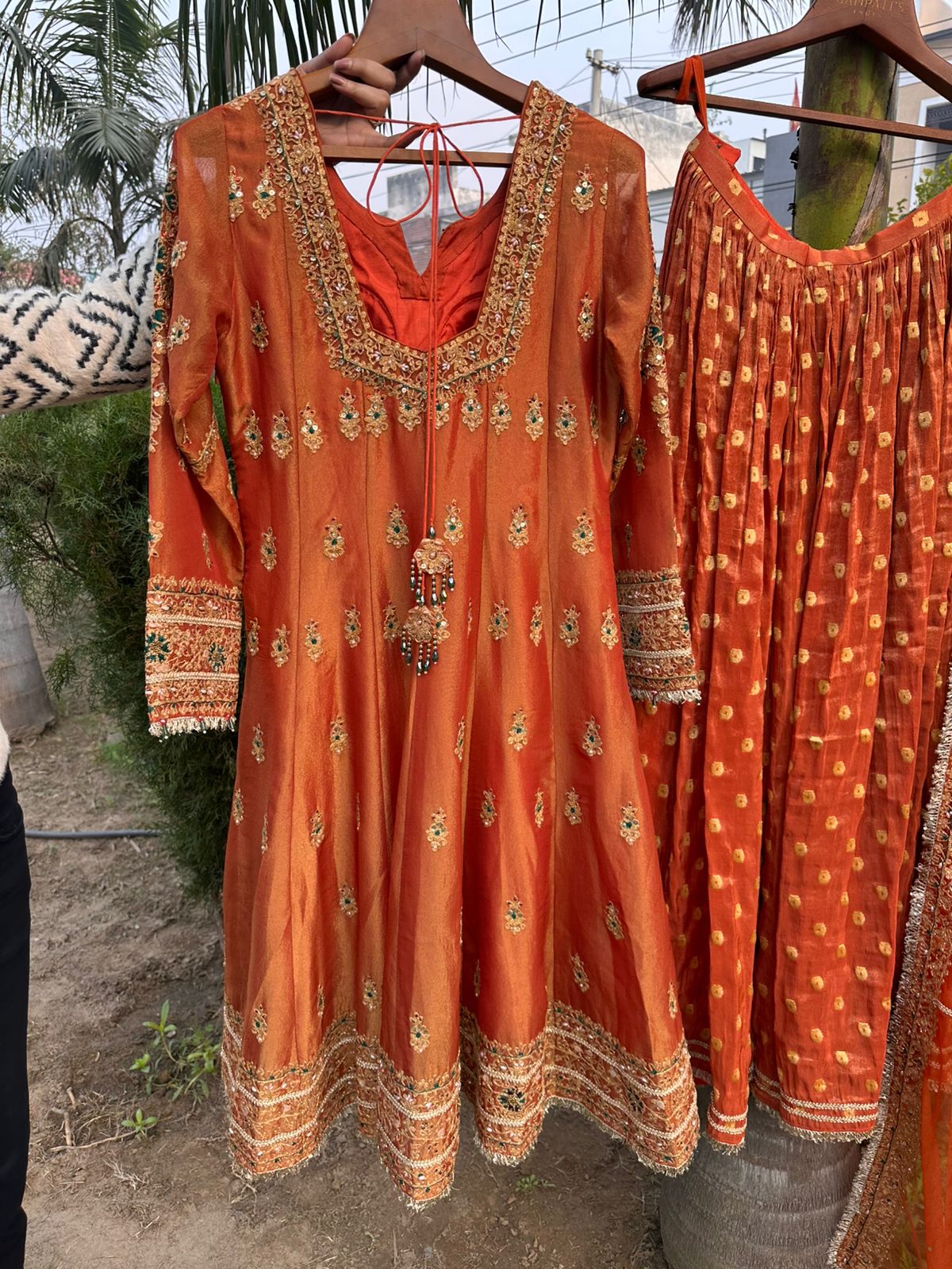 Luxury orange shimmer festive suit